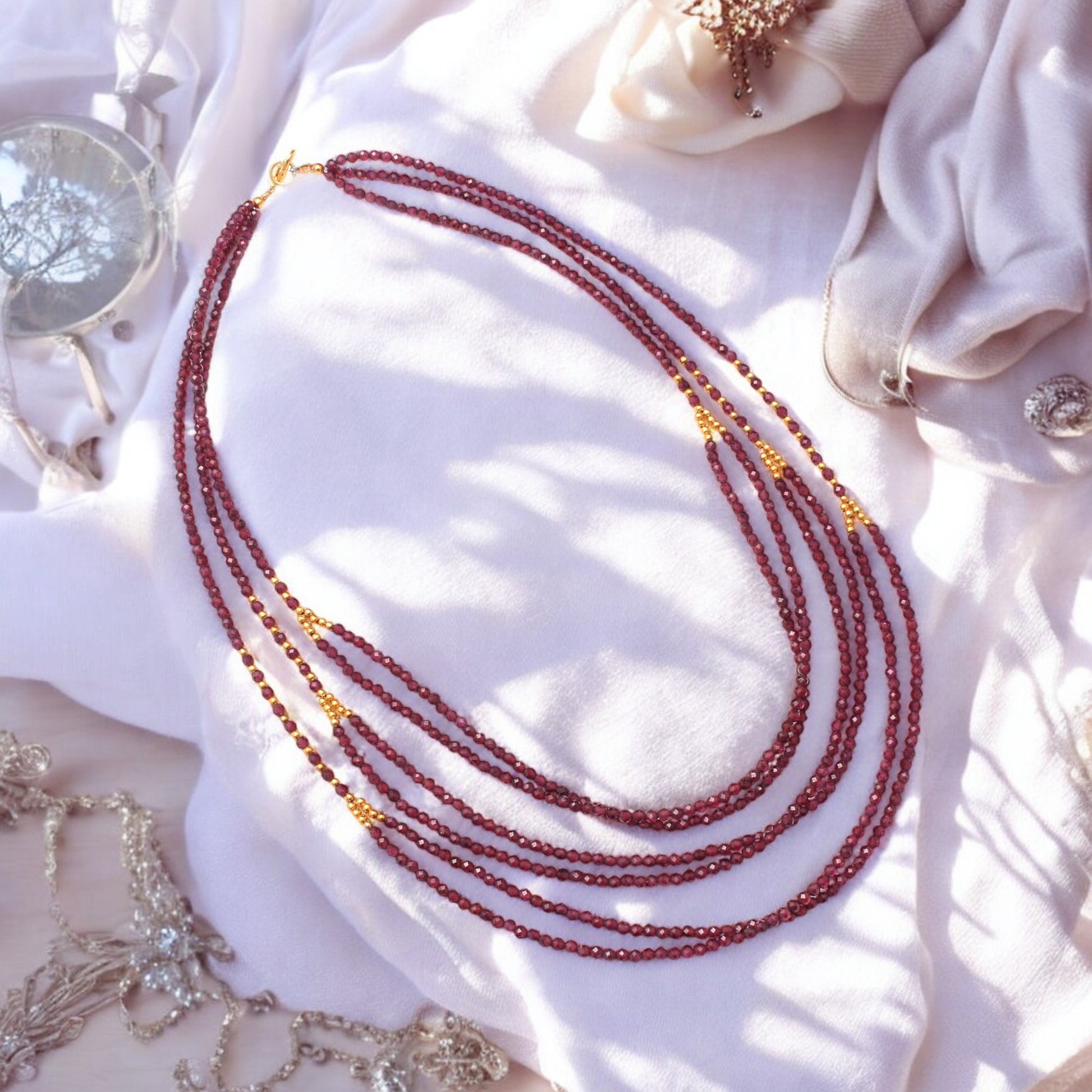 Luxurious Multi-Layer Natural Garnet Beaded Necklace – Elegance in Every Strand
