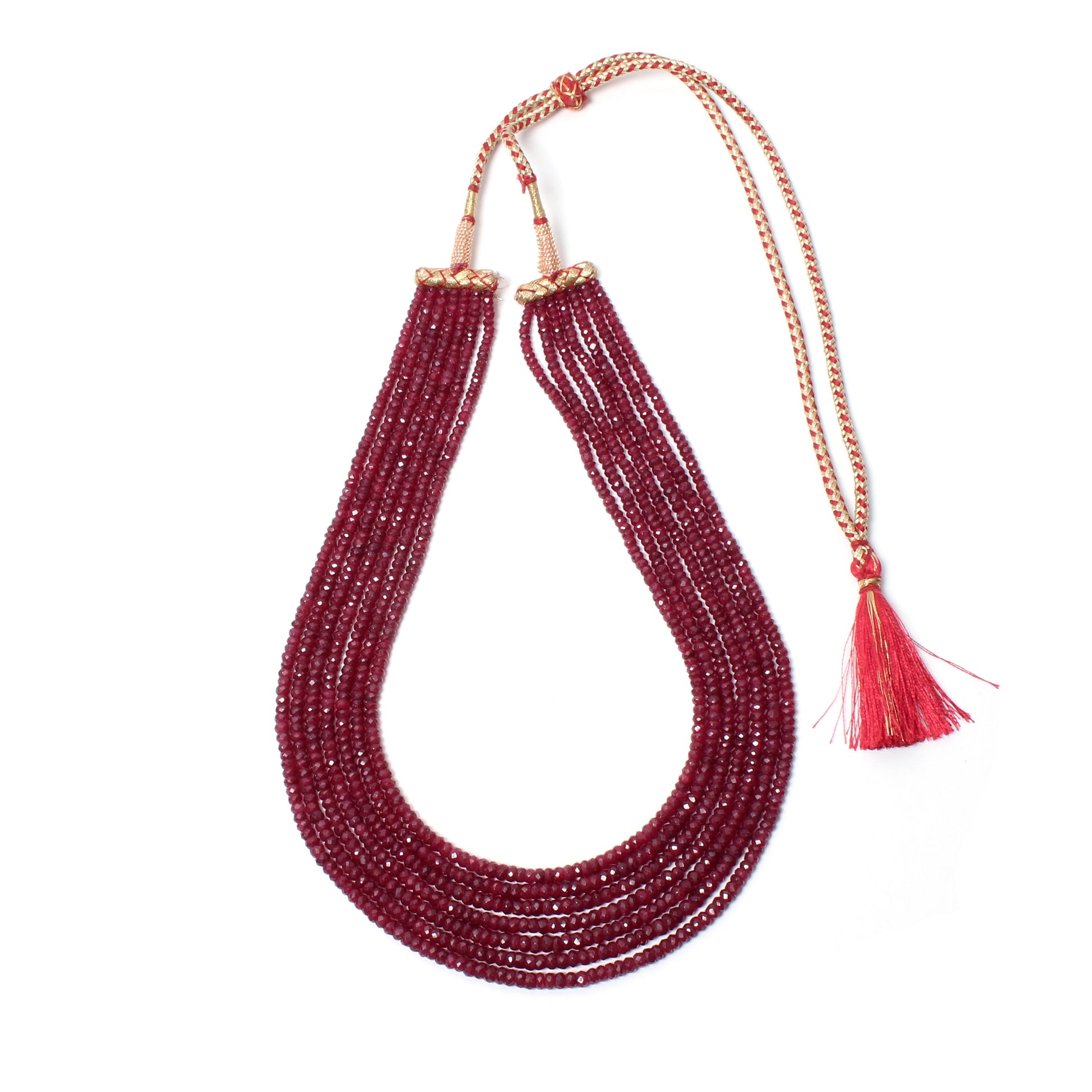 ITEM : Featuring 7-Layer Ruby Sarafa Necklace, Handcrafted with 4-5mm Faceted Ruby Beads.