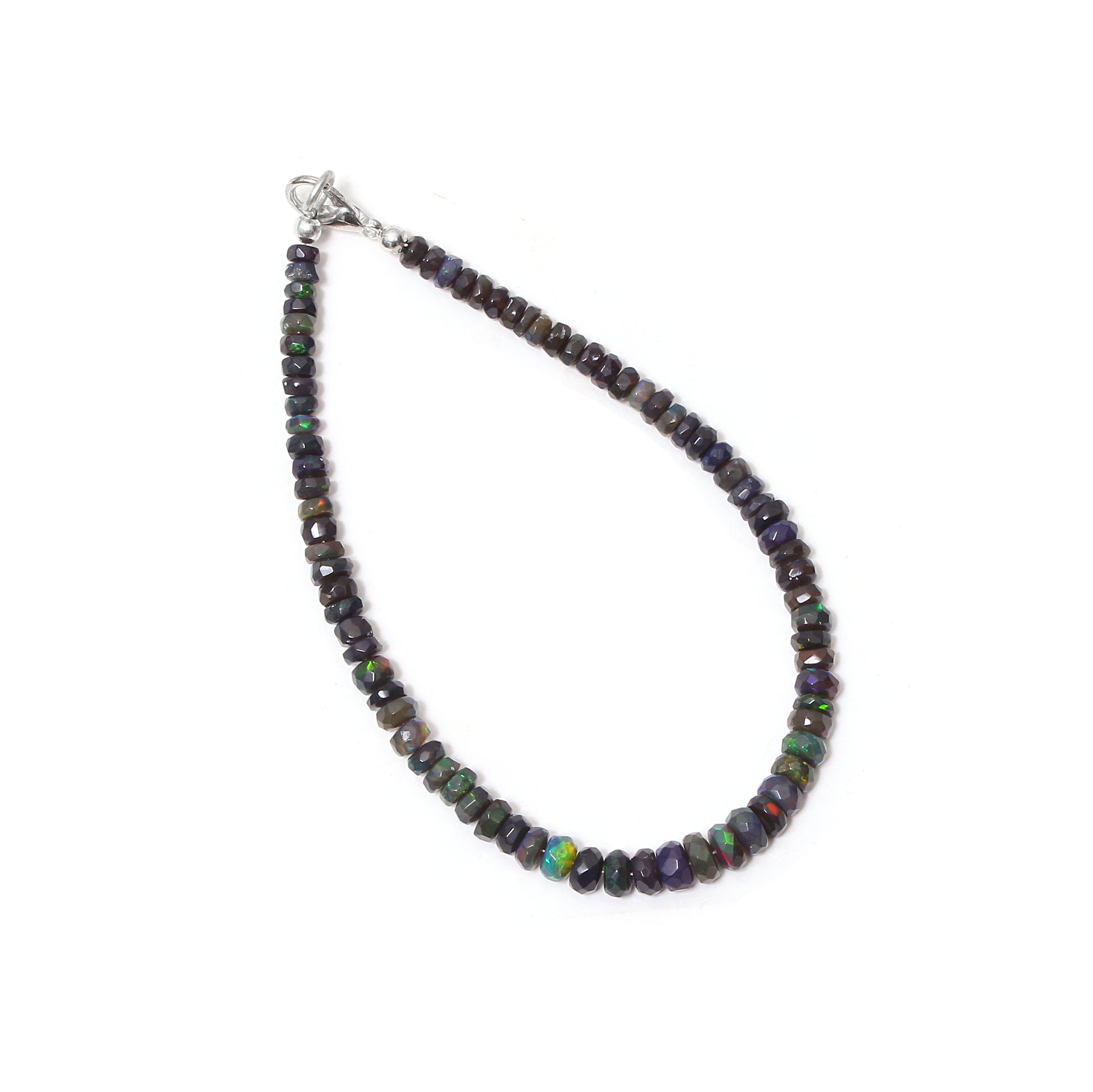 Men's Natural Black Ethiopian Opal Beaded Bracelet – Stylish Gemstone Jewelry for Elegance