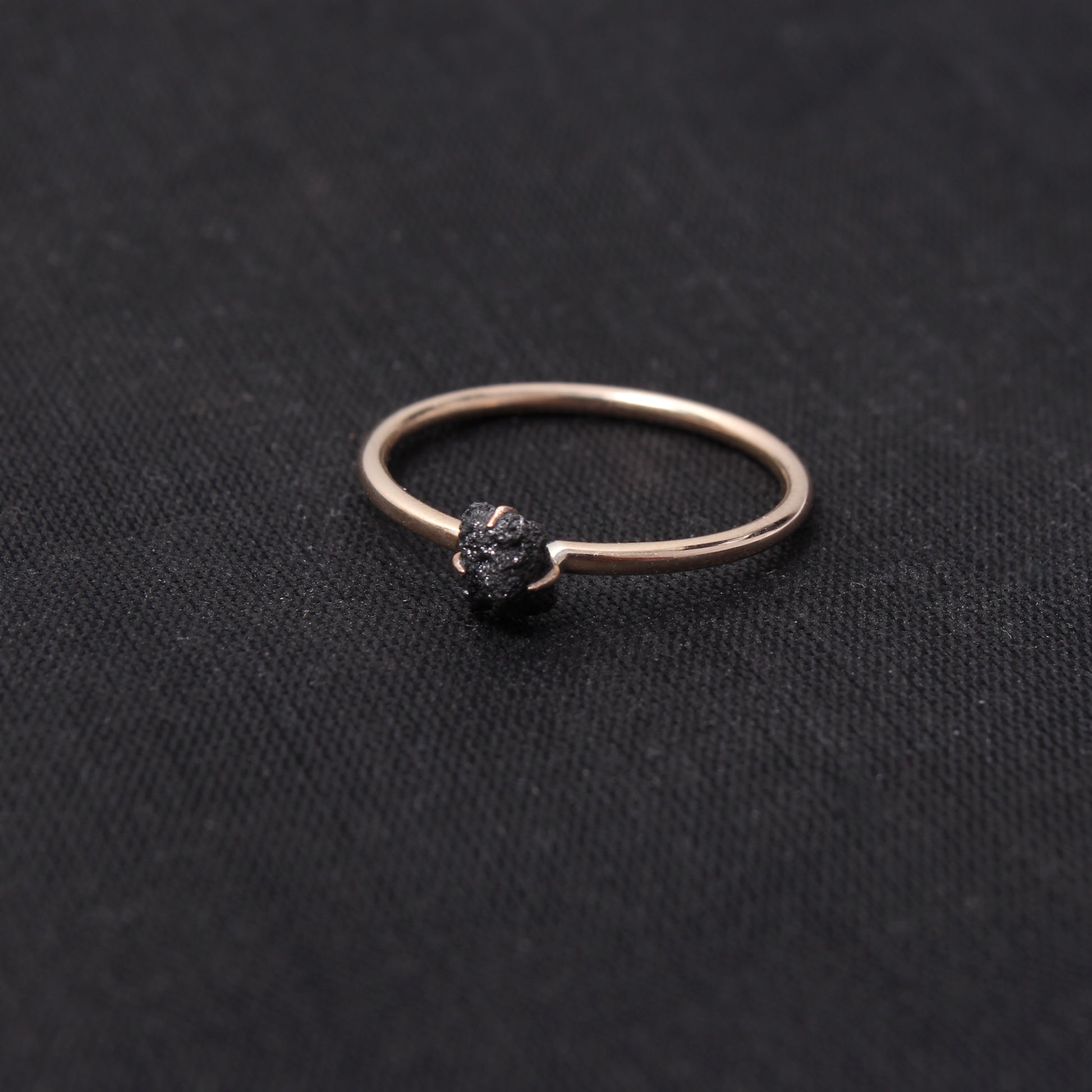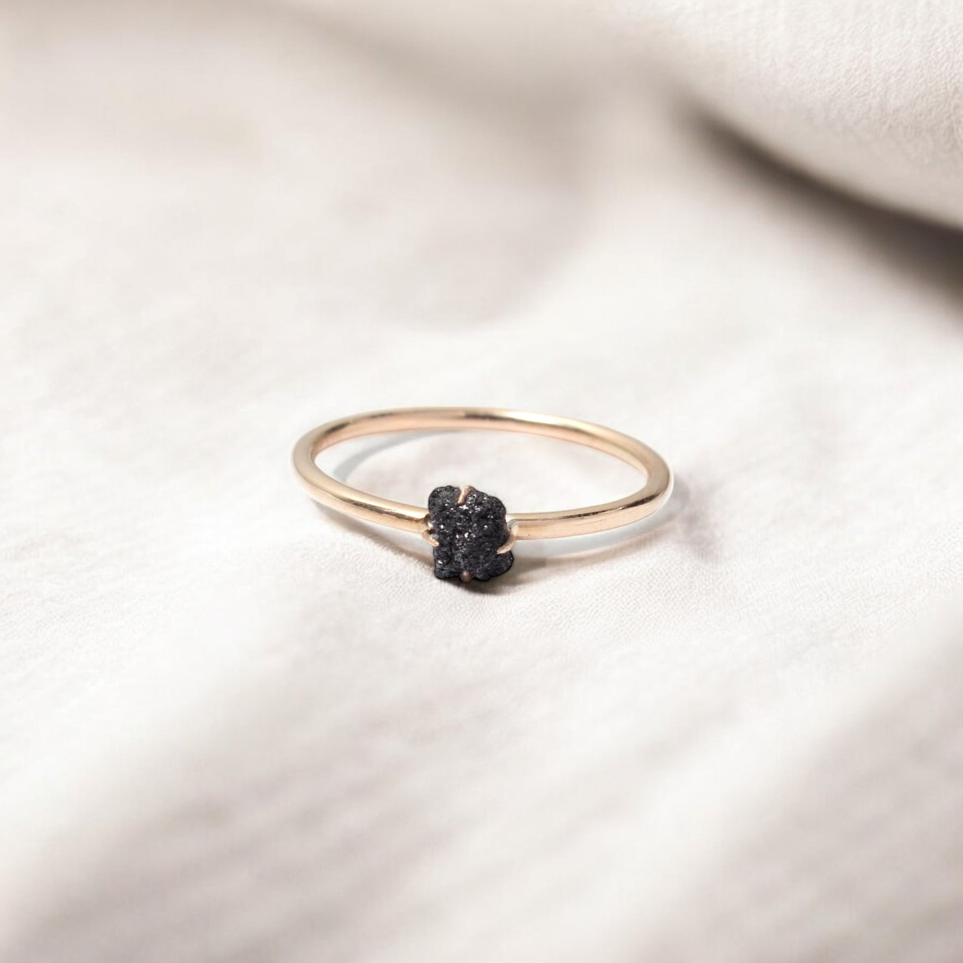 Minimalist Natural Black Diamond Ring – Elegant Handmade Jewelry
