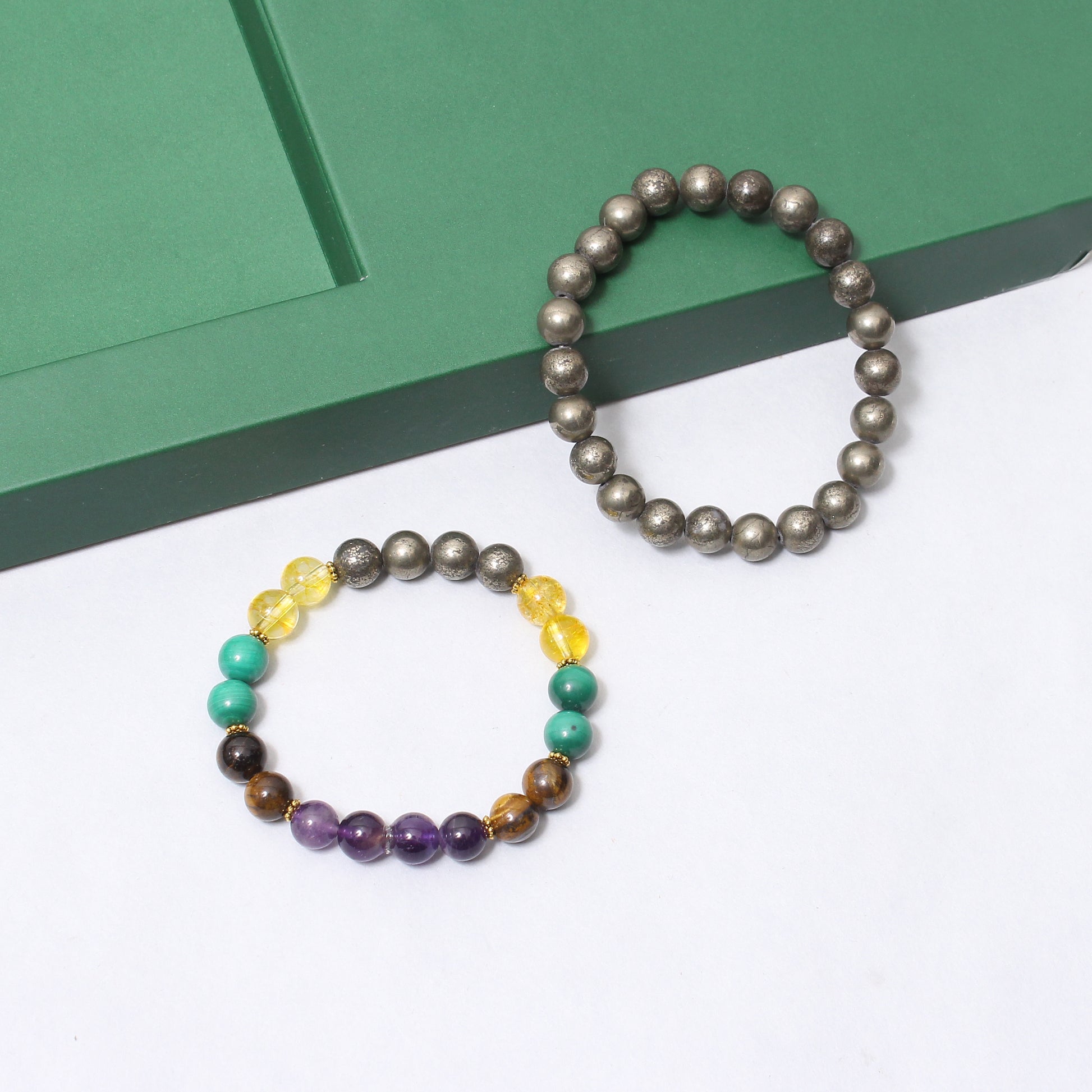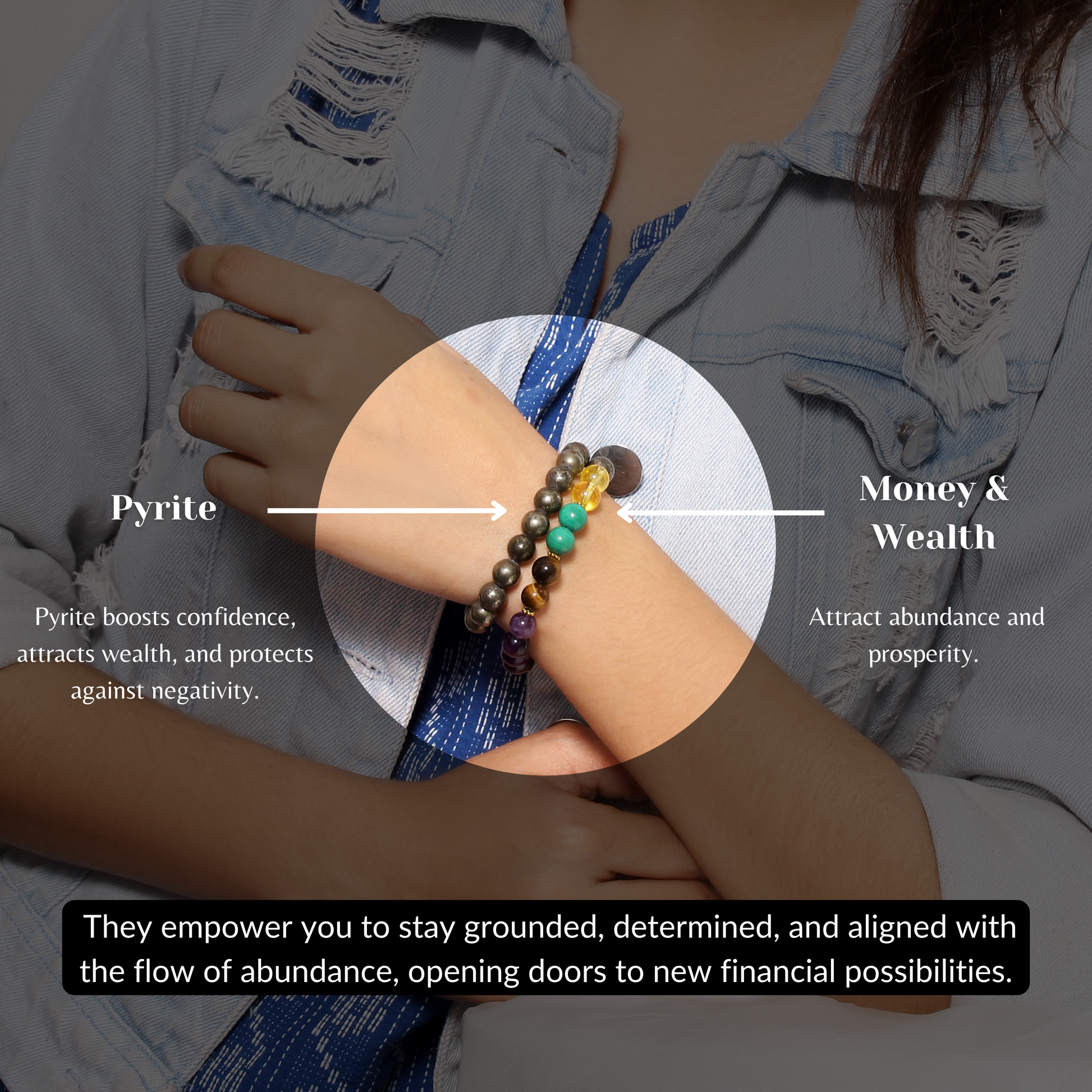 Money & Wealth + Pyrite Healing Stretchable Gemstone Bracelet – Attract Prosperity & Stay Grounded
