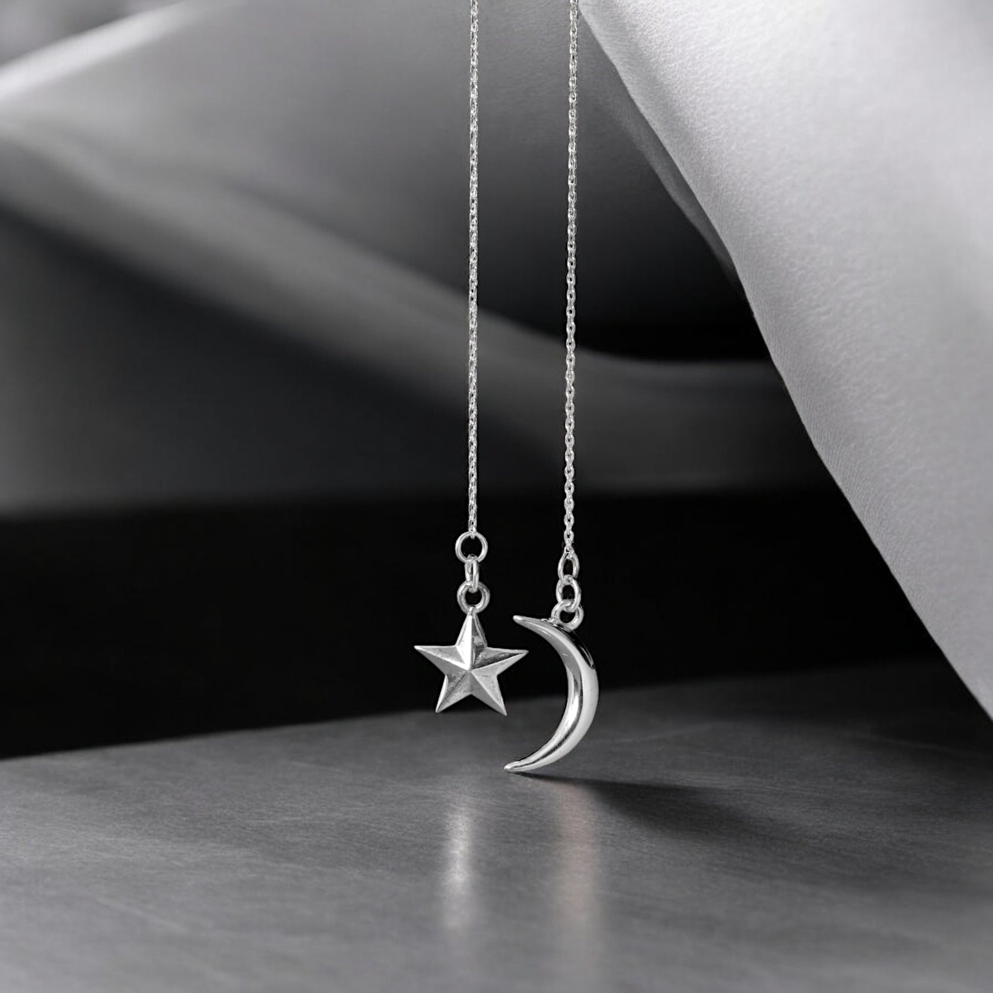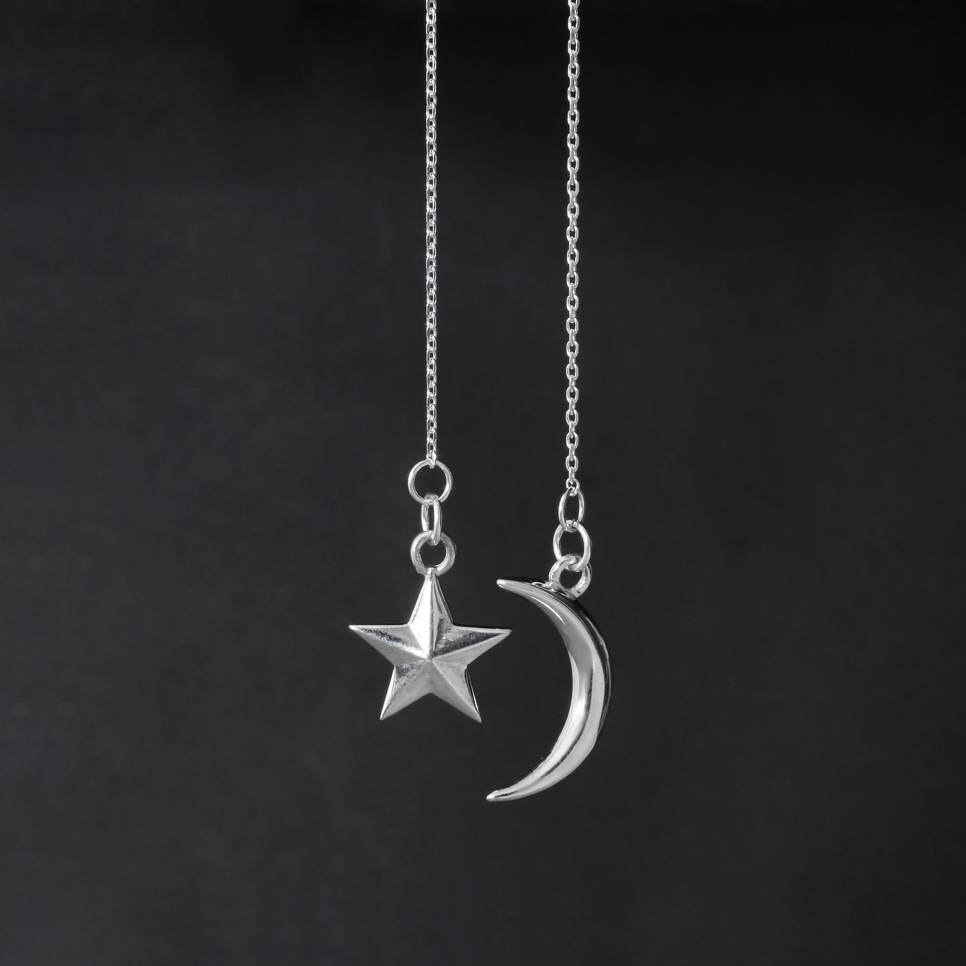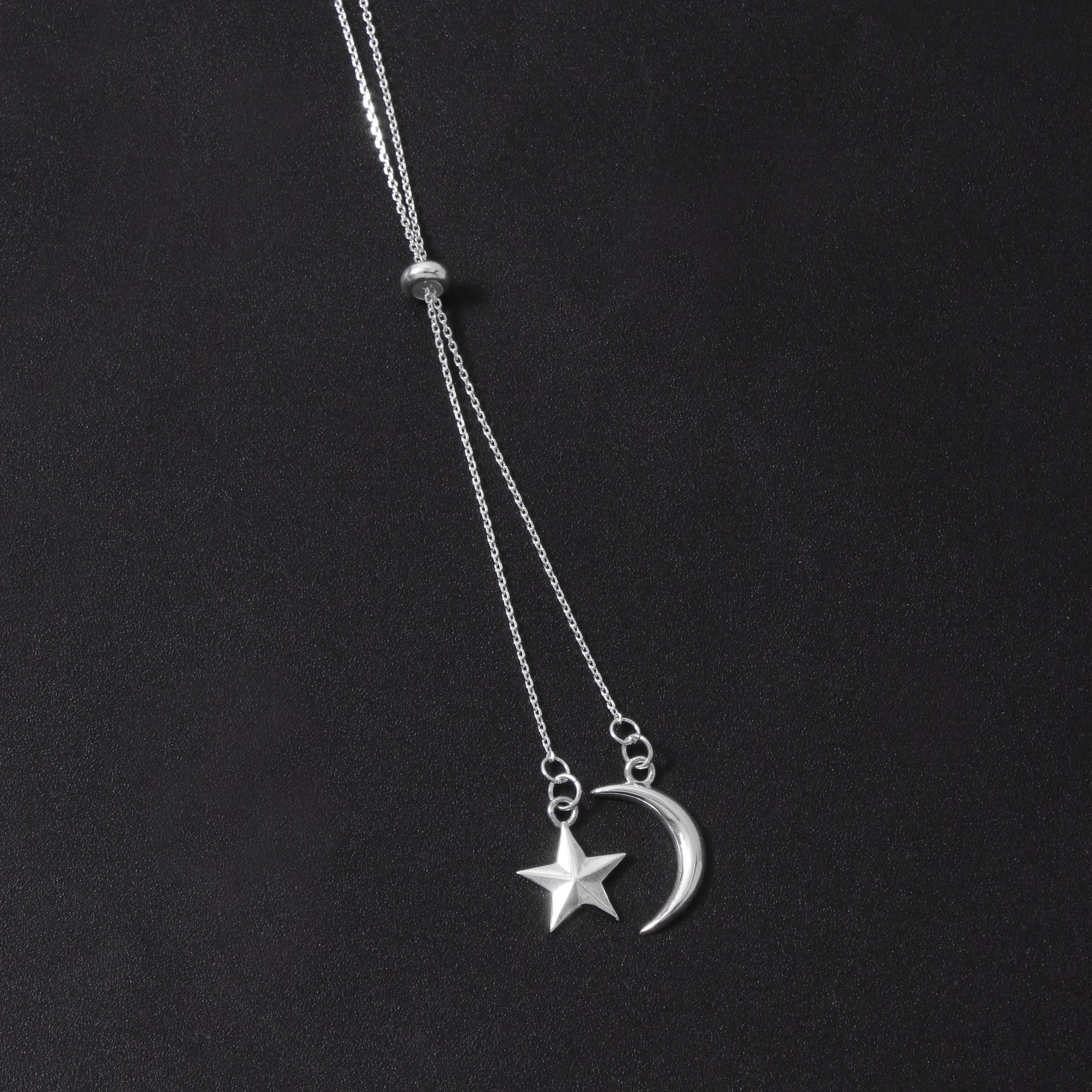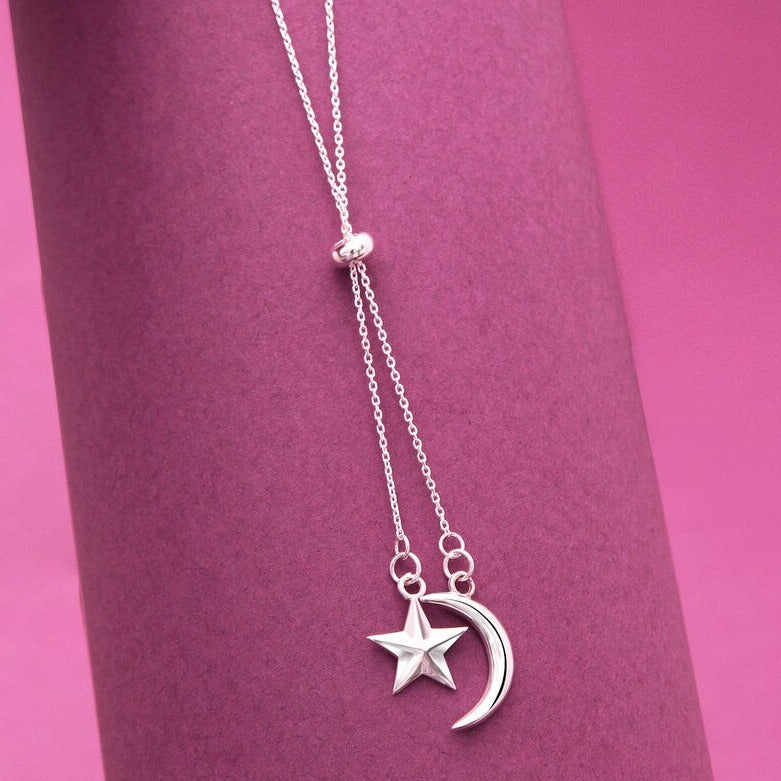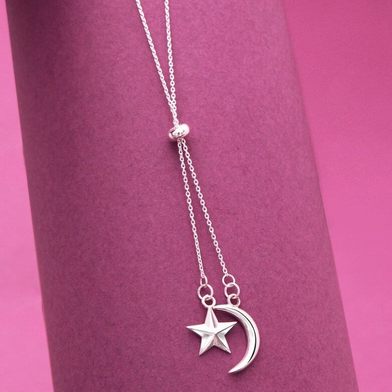 Moon-Star Silver Charm Pendant Necklace