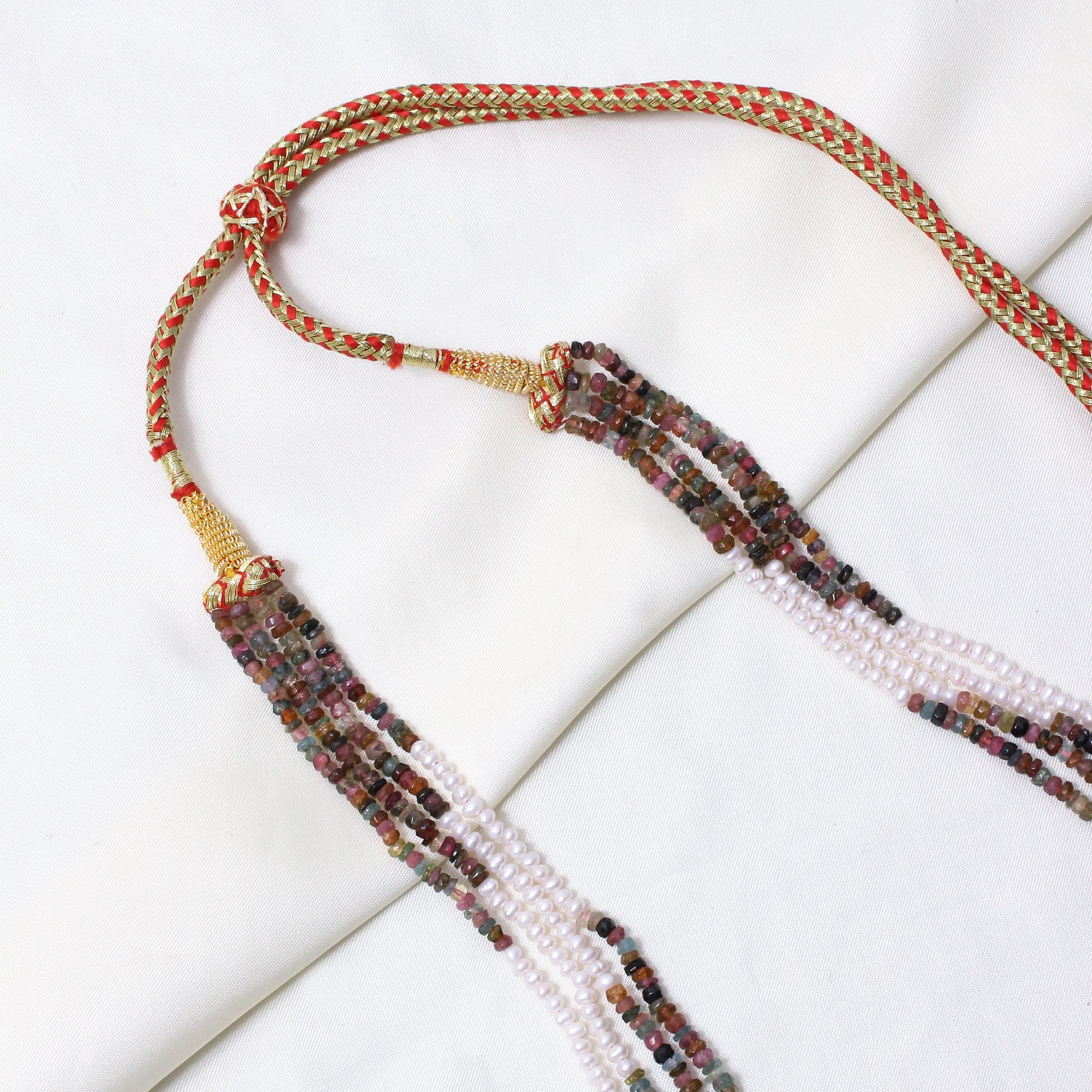 Natural Multi Tourmaline & Freshwater Pearl 4-Layer Beaded Sarafa Necklace | Luxury Handmade Healing Jewelry