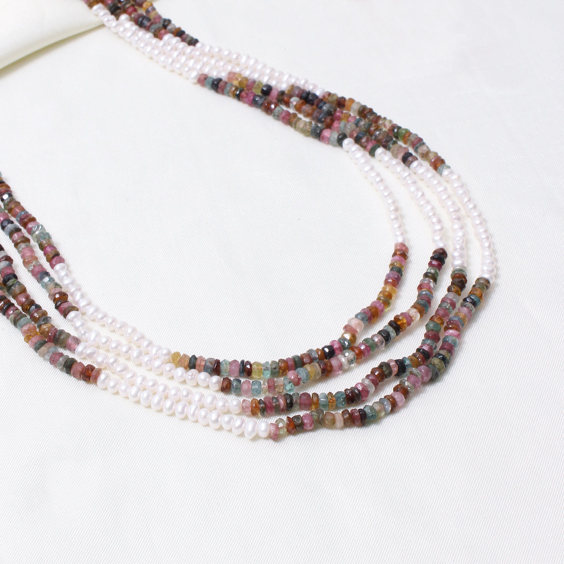 ITEM: Multi-Tourmaline & Freshwater Pearl 4-Layer Beaded Sarafa Necklace