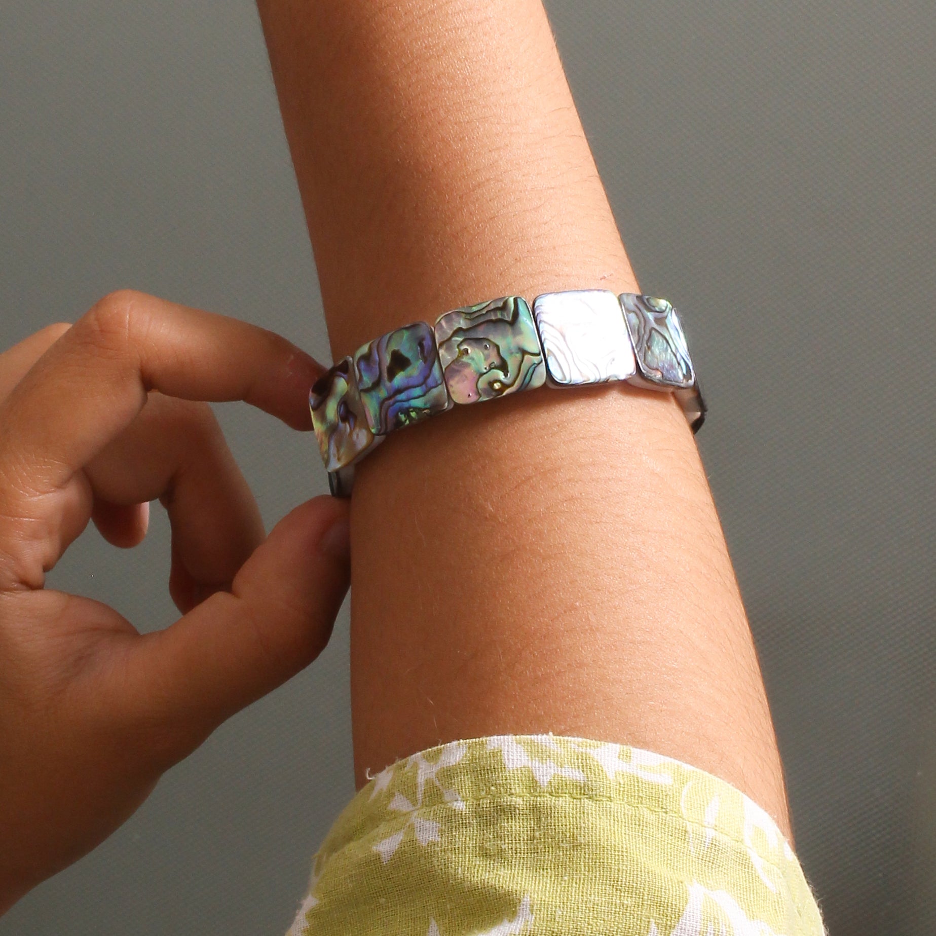 ITEM: Natural Abalone Shell Square Stretch Beaded Bracelet