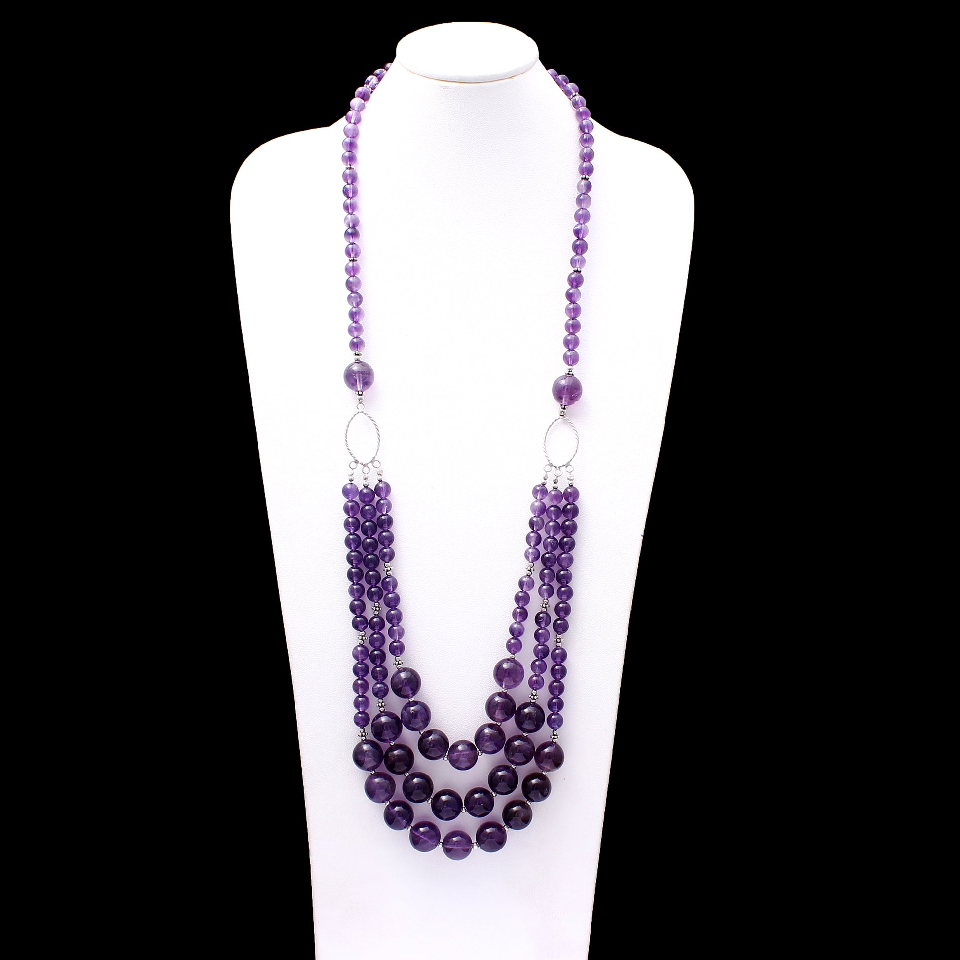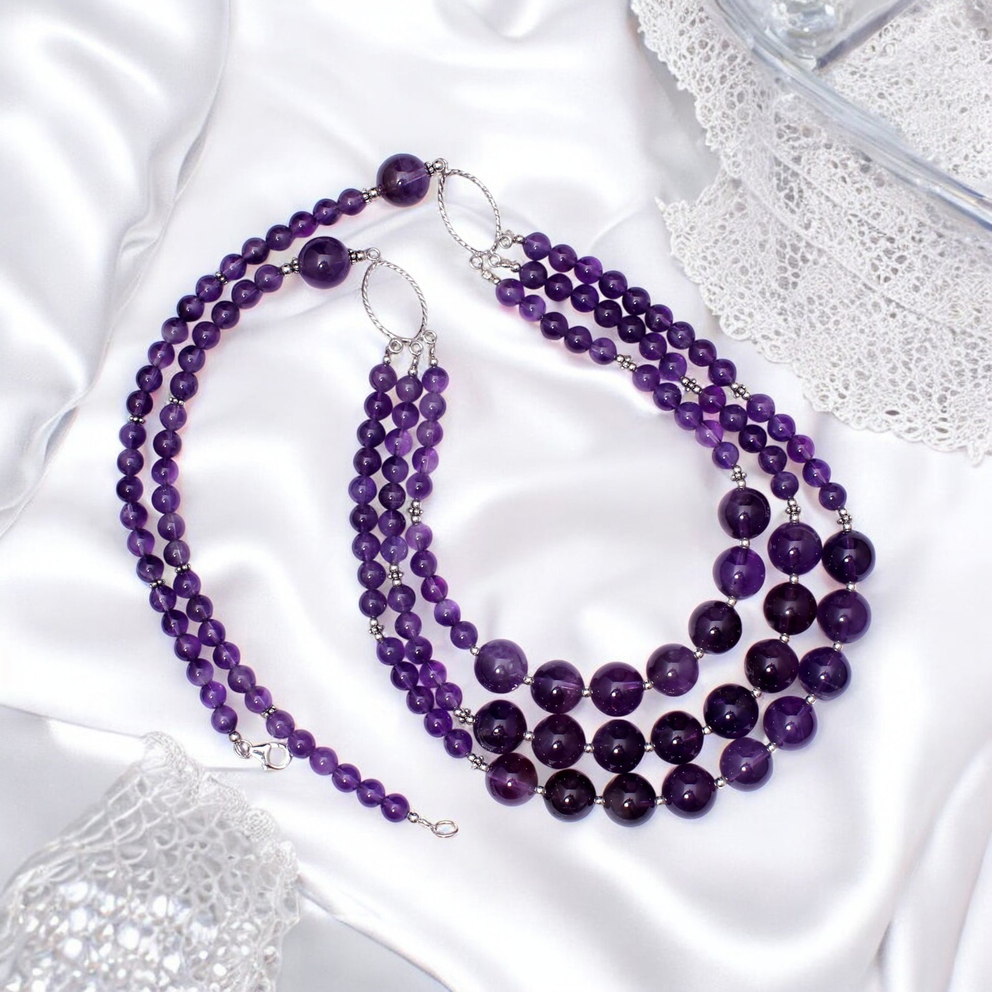 Natural Amethyst Beads Gemstone Necklace – Elegance with Healing Energy