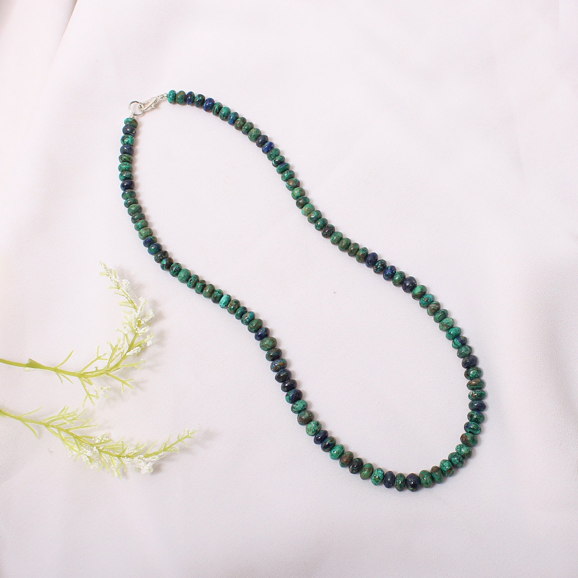 ITEM : High Quality Chrysocolla Beaded Necklace Secures with 925 Silver Lobster Lock.