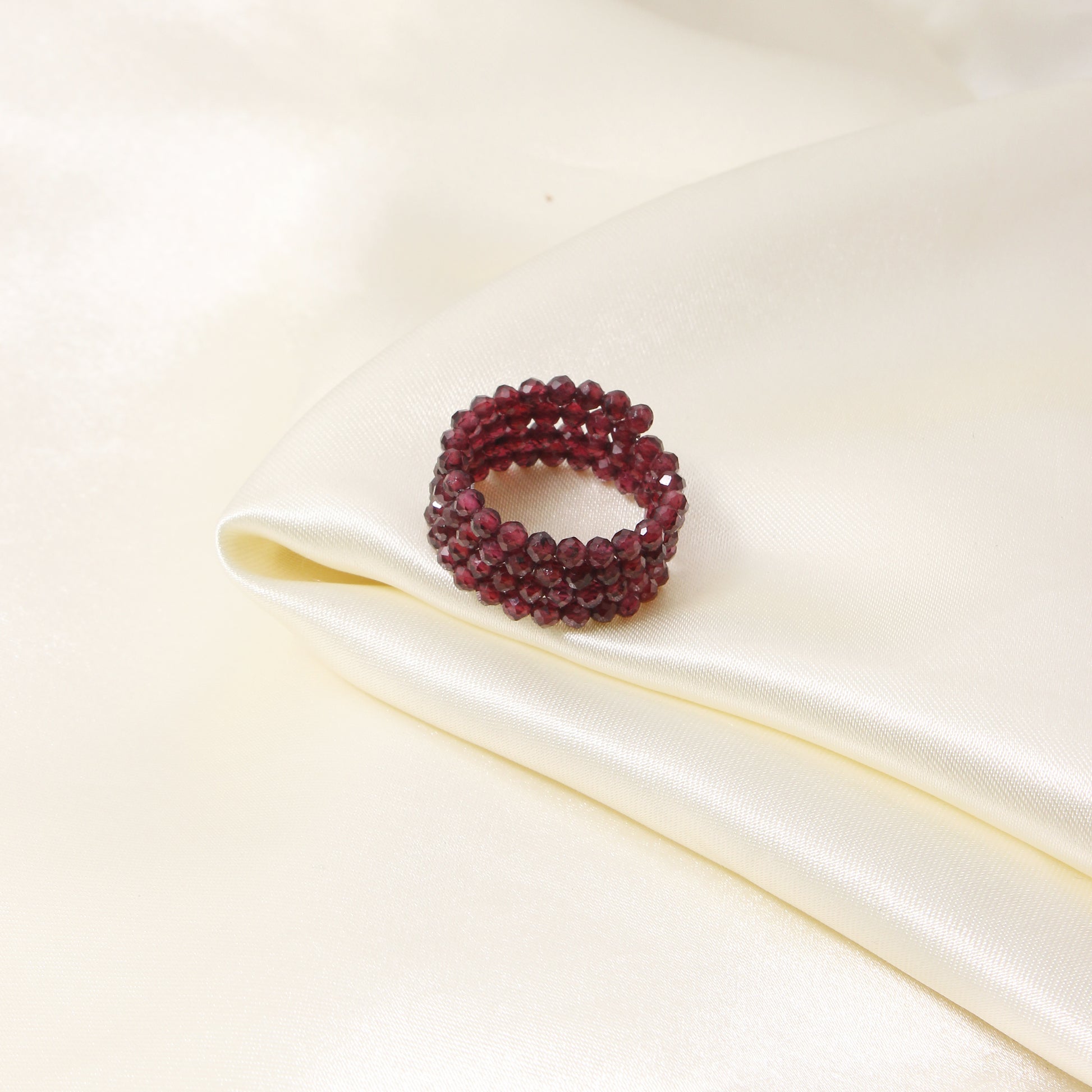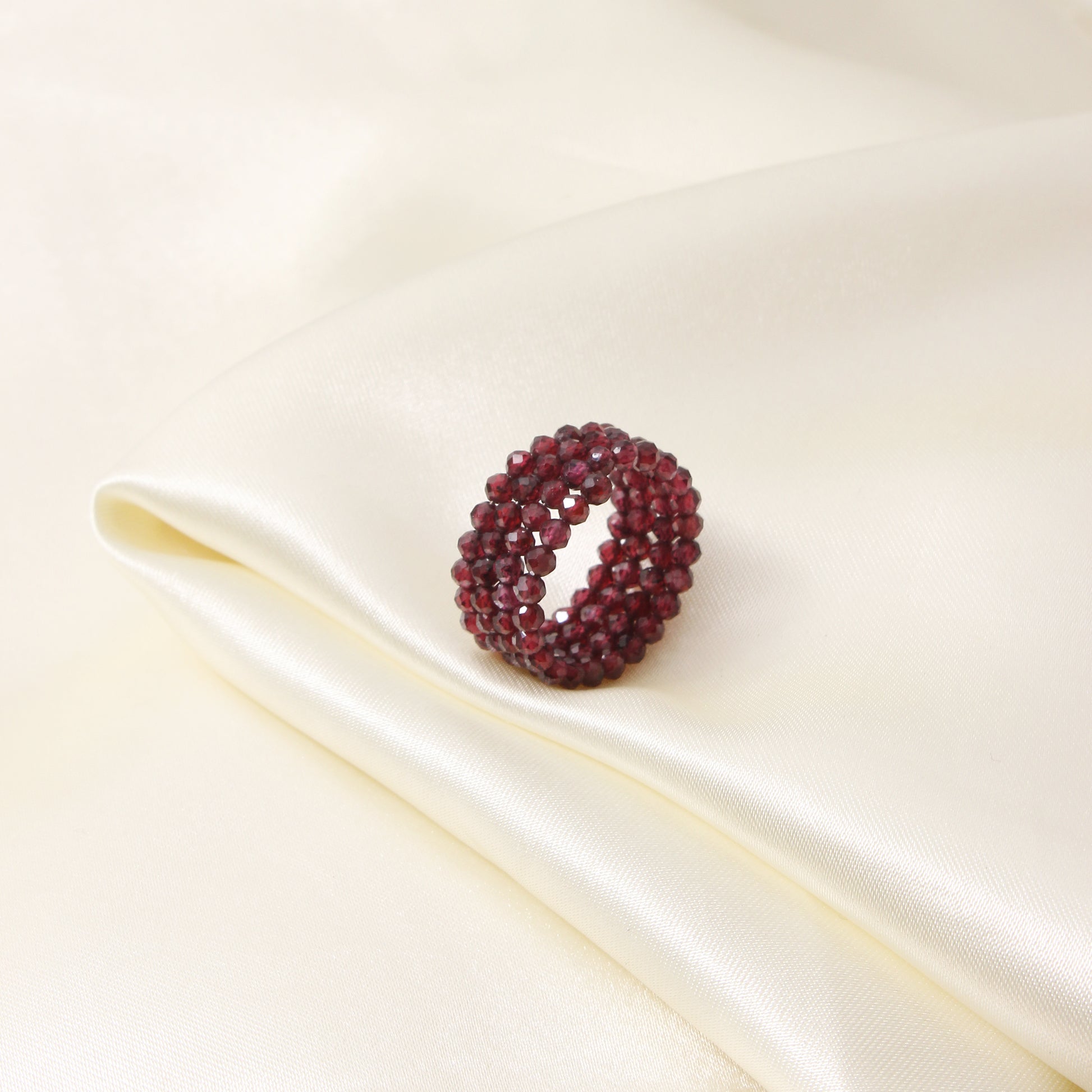 Natural Garnet Beaded Gemstone Ring – Handcrafted Elegance for Every Occasion