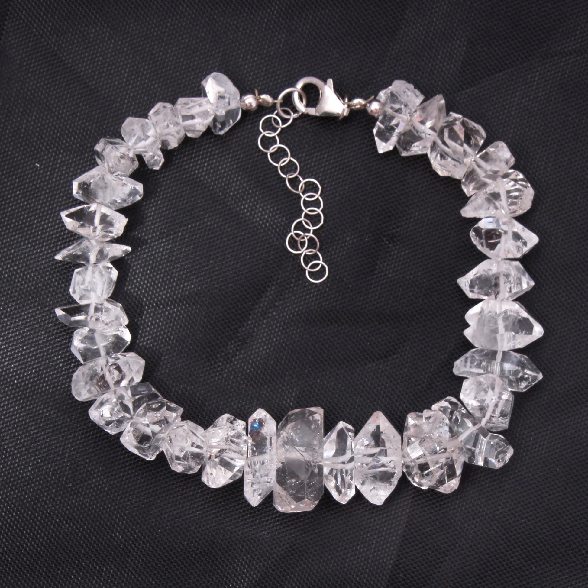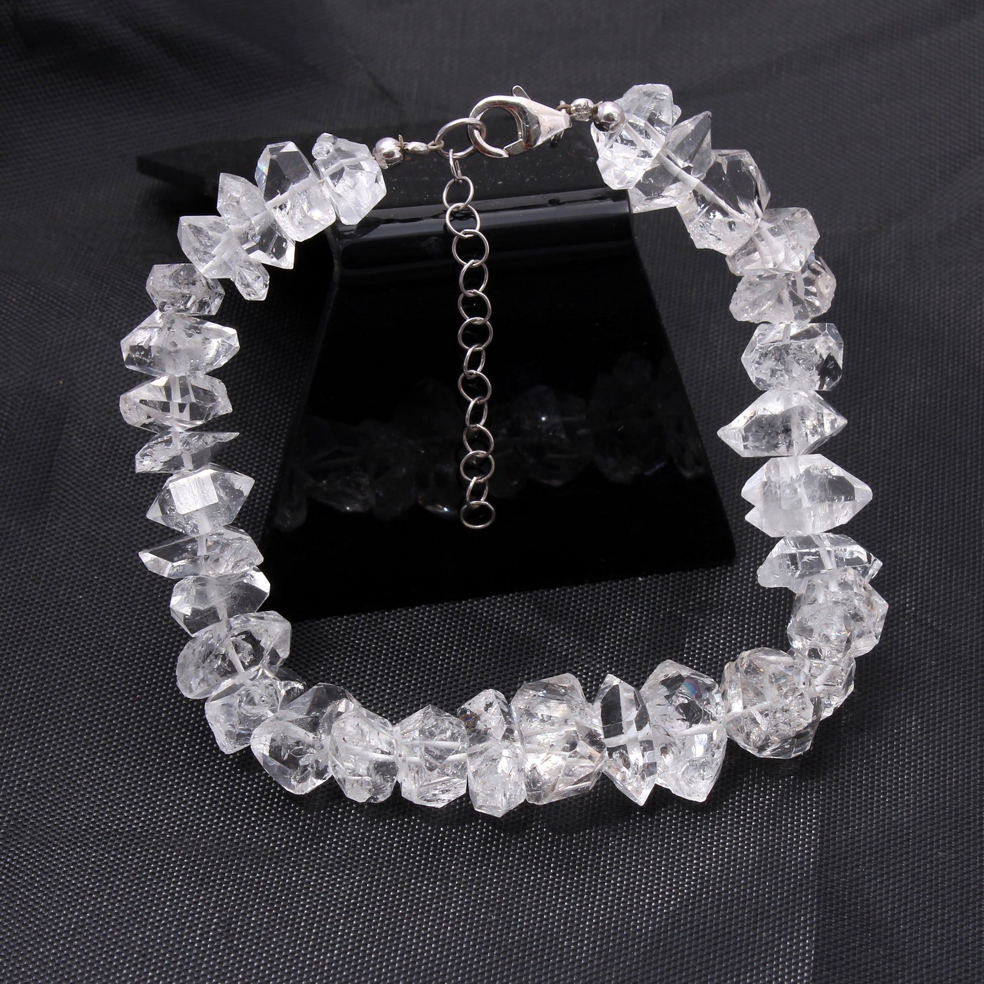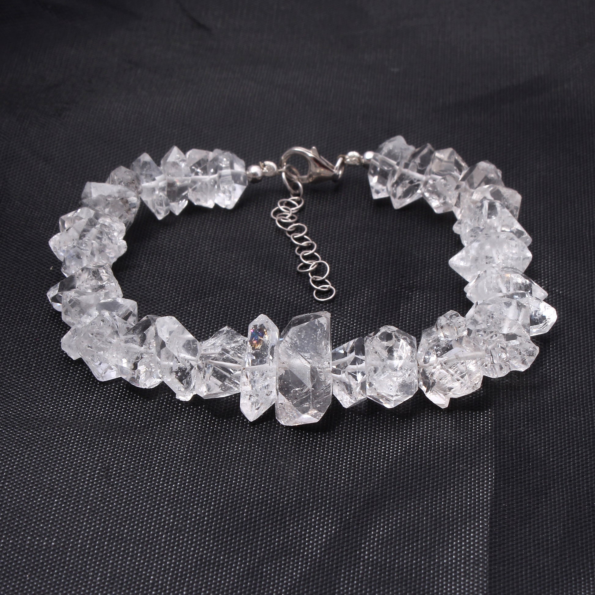 Natural Herkimer Diamond Quartz Bracelet – Raw Double-Terminated Crystal Jewelry, Gift for Her & Him