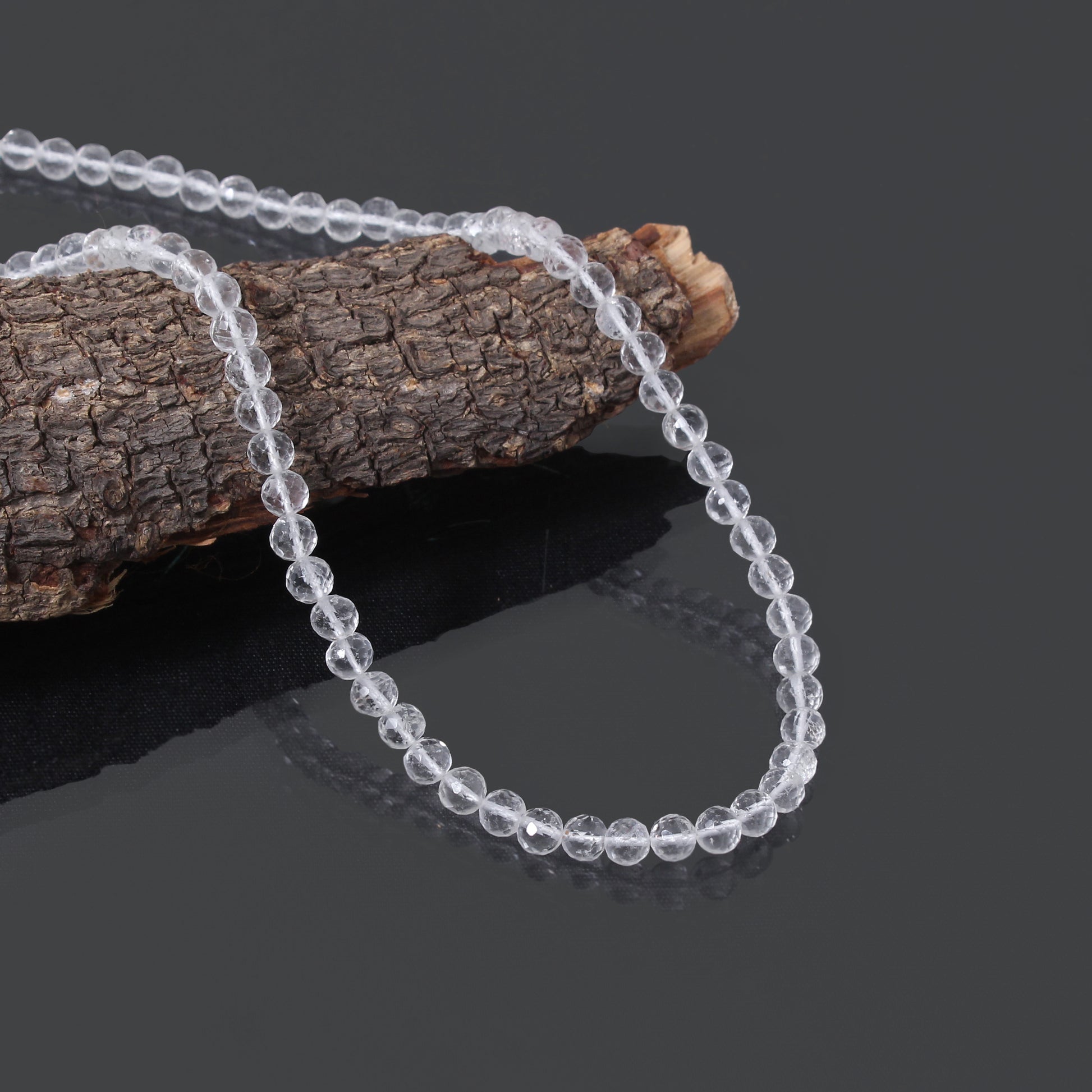 Hyalite Opal Faceted Round 4.5-5 mm Beaded Necklace – Natural Clear Gemstone for Purity, Aura Cleansing & Spiritual Light