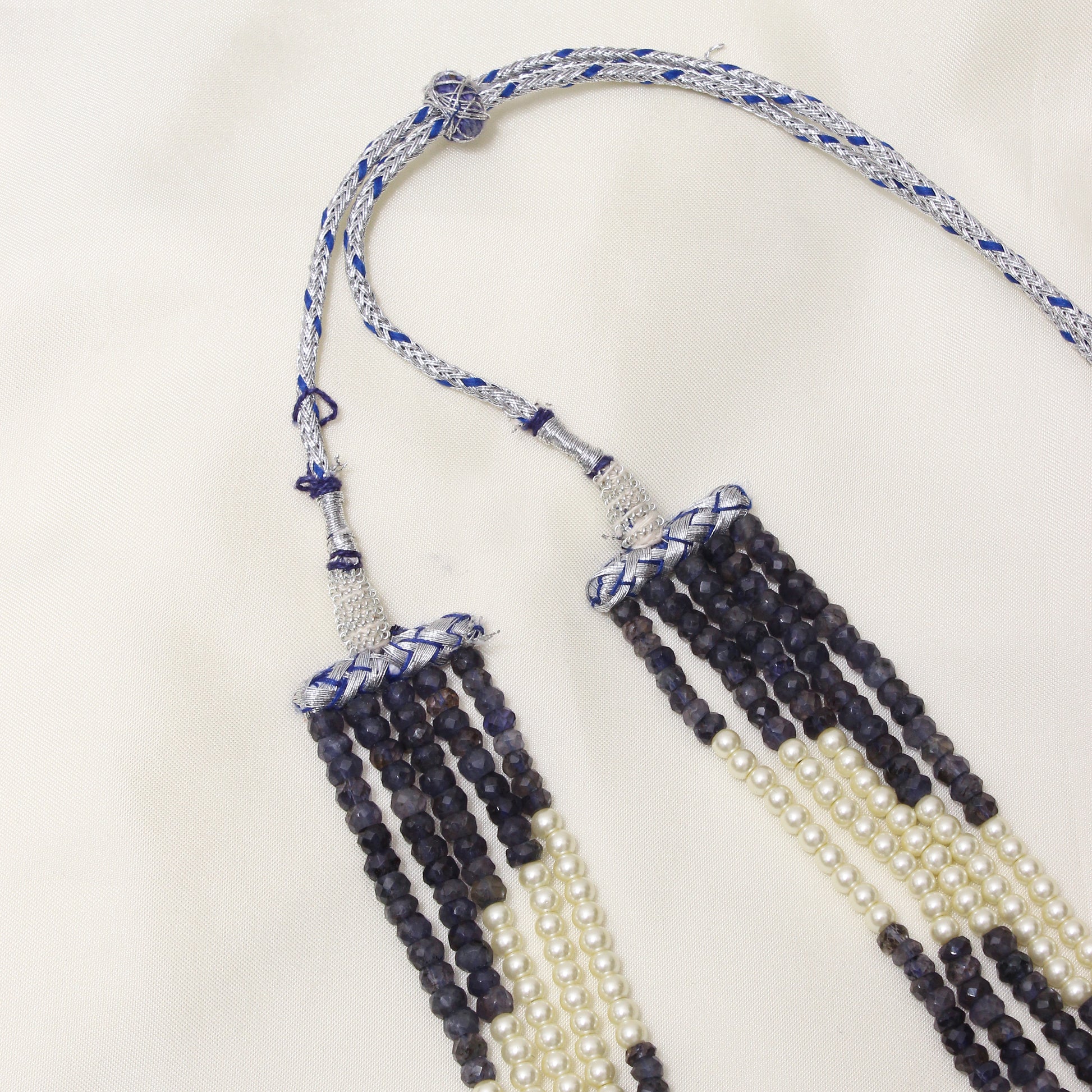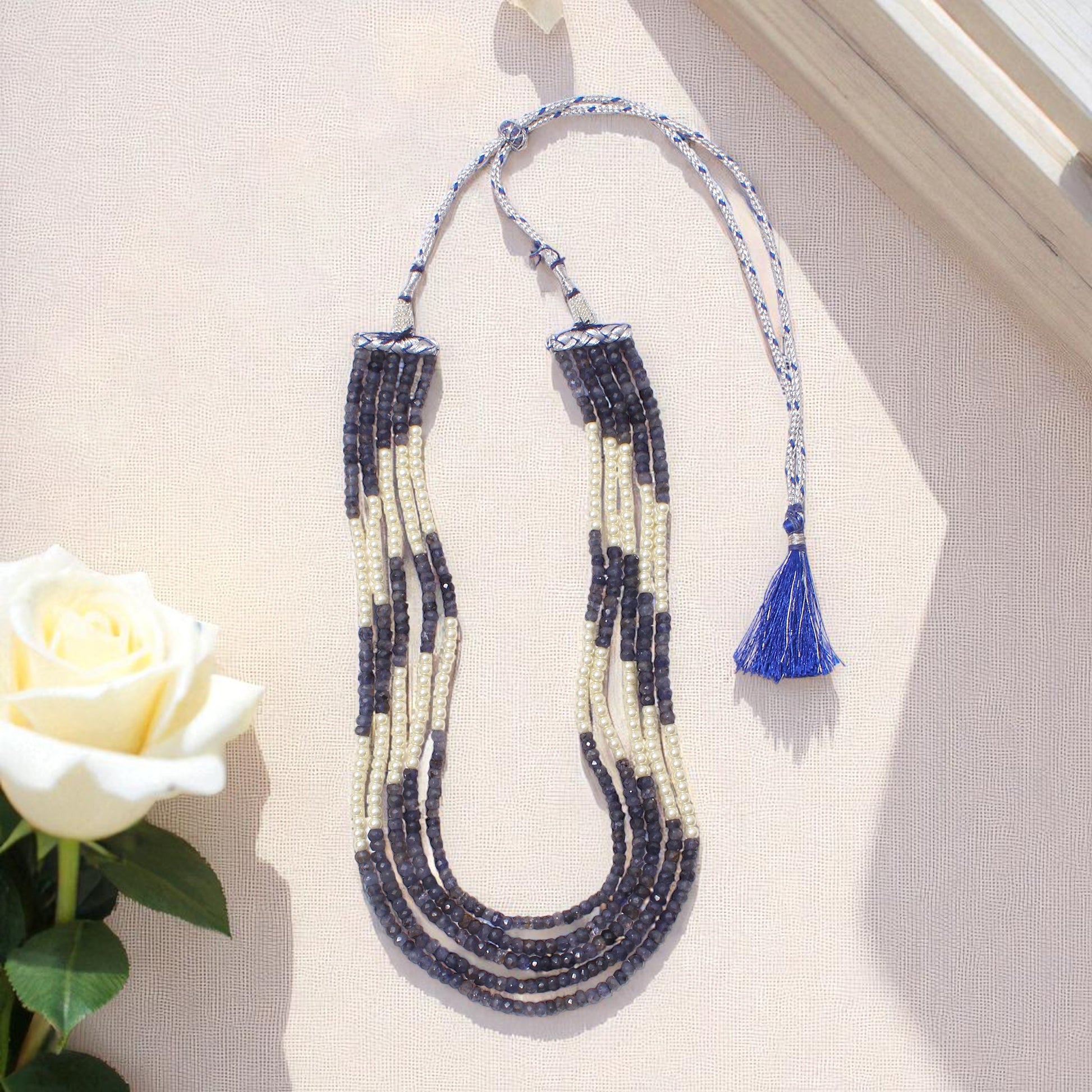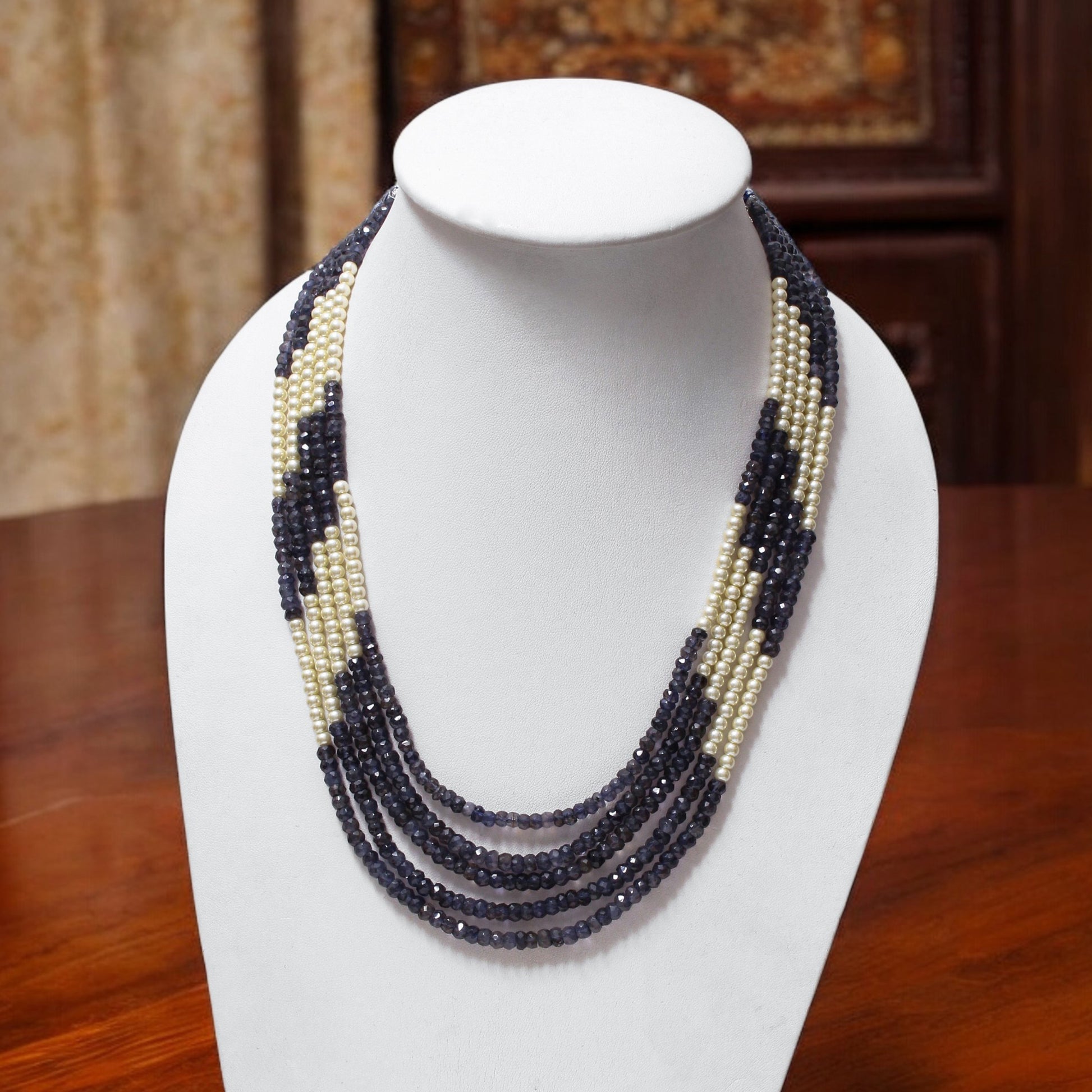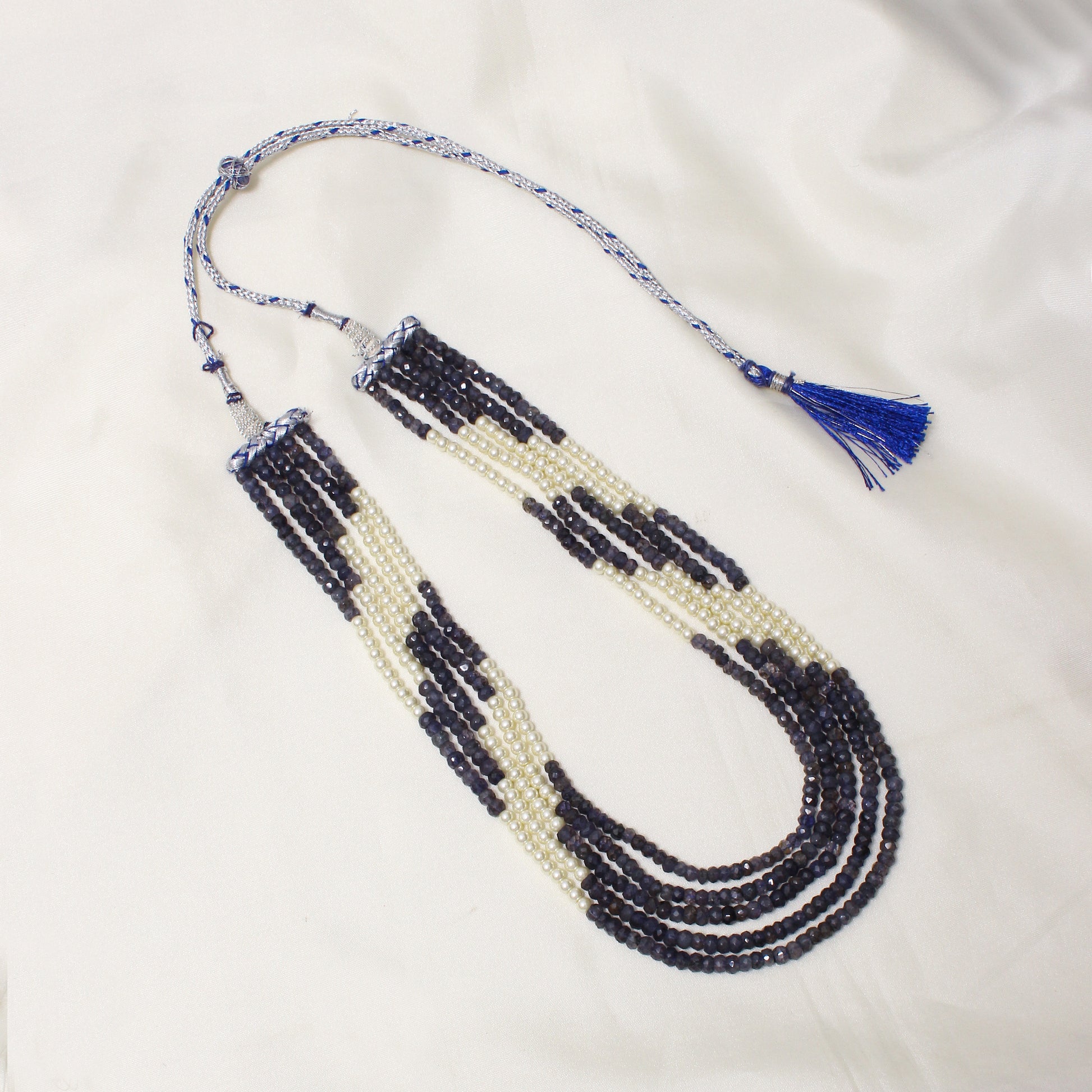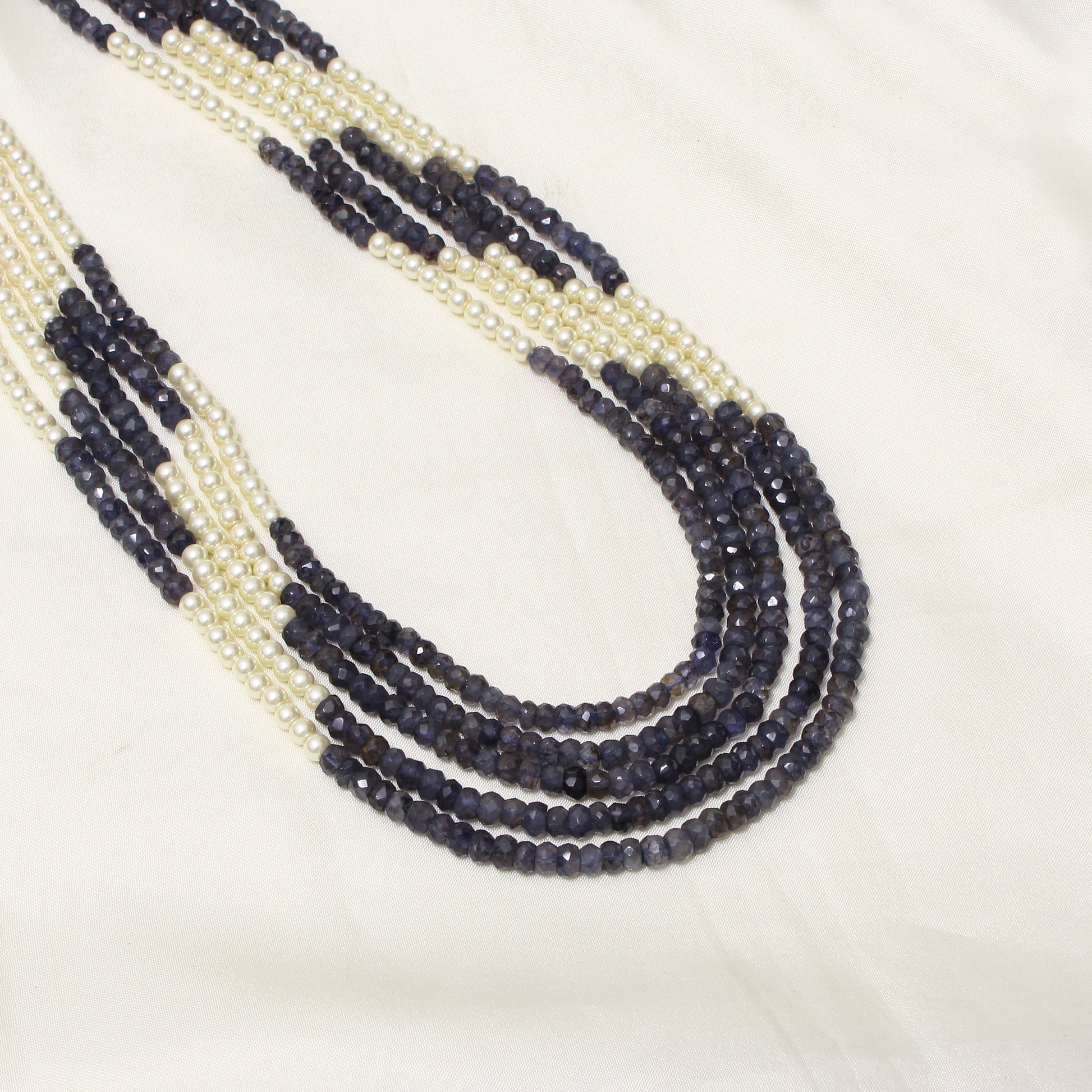 ITEM: Natural iolite & Pearl 5-Layered Sarafa Necklace