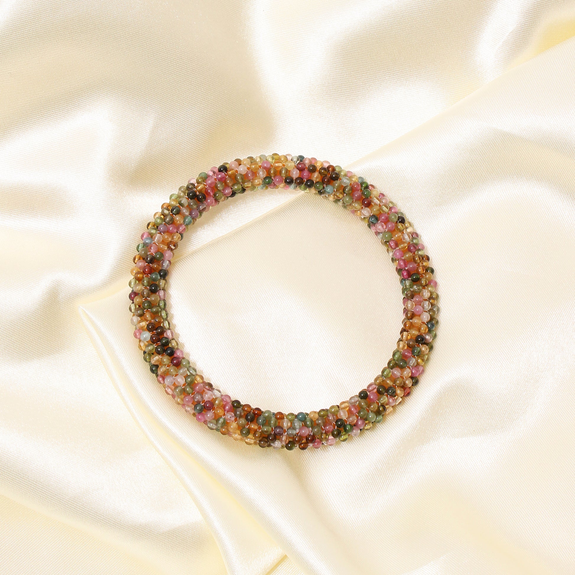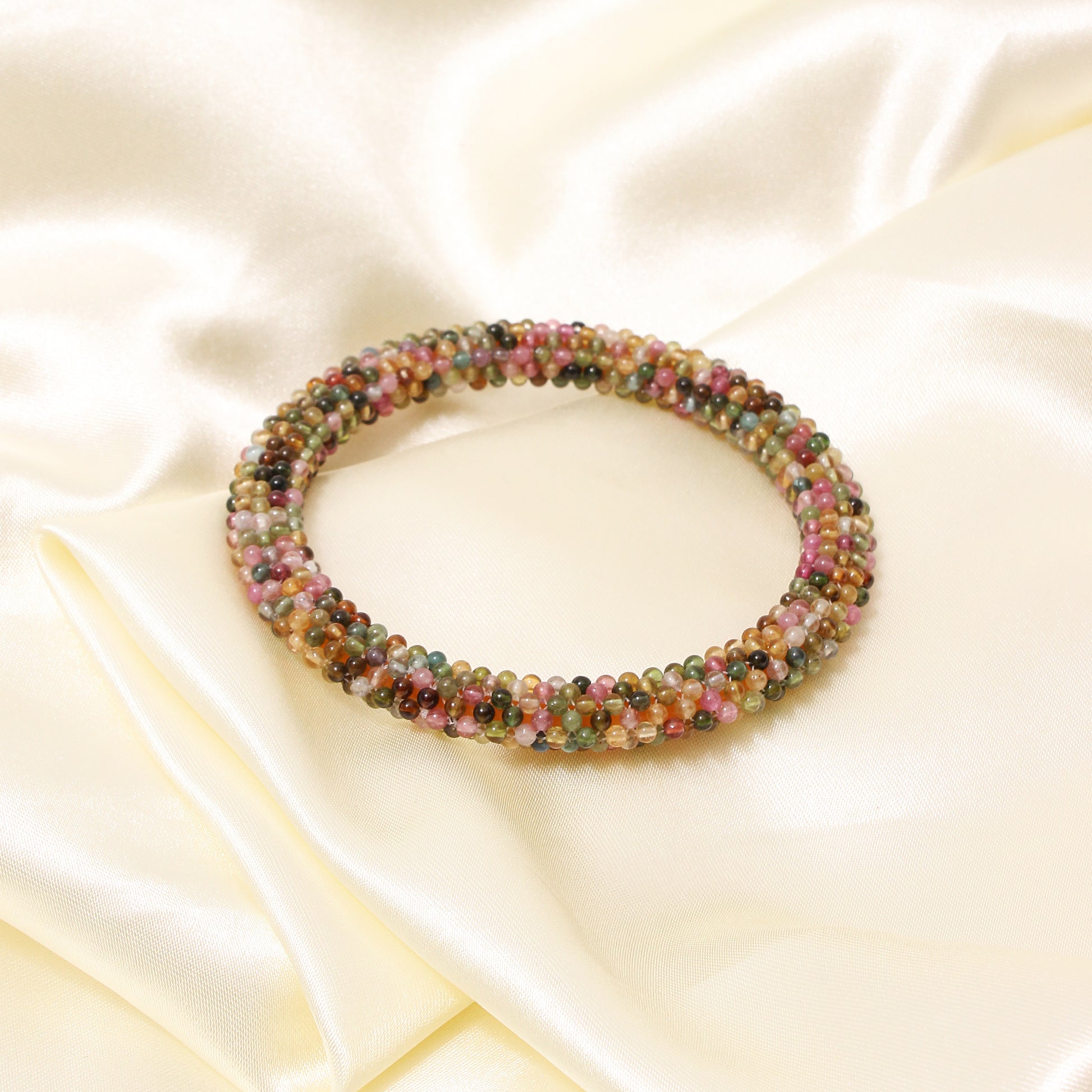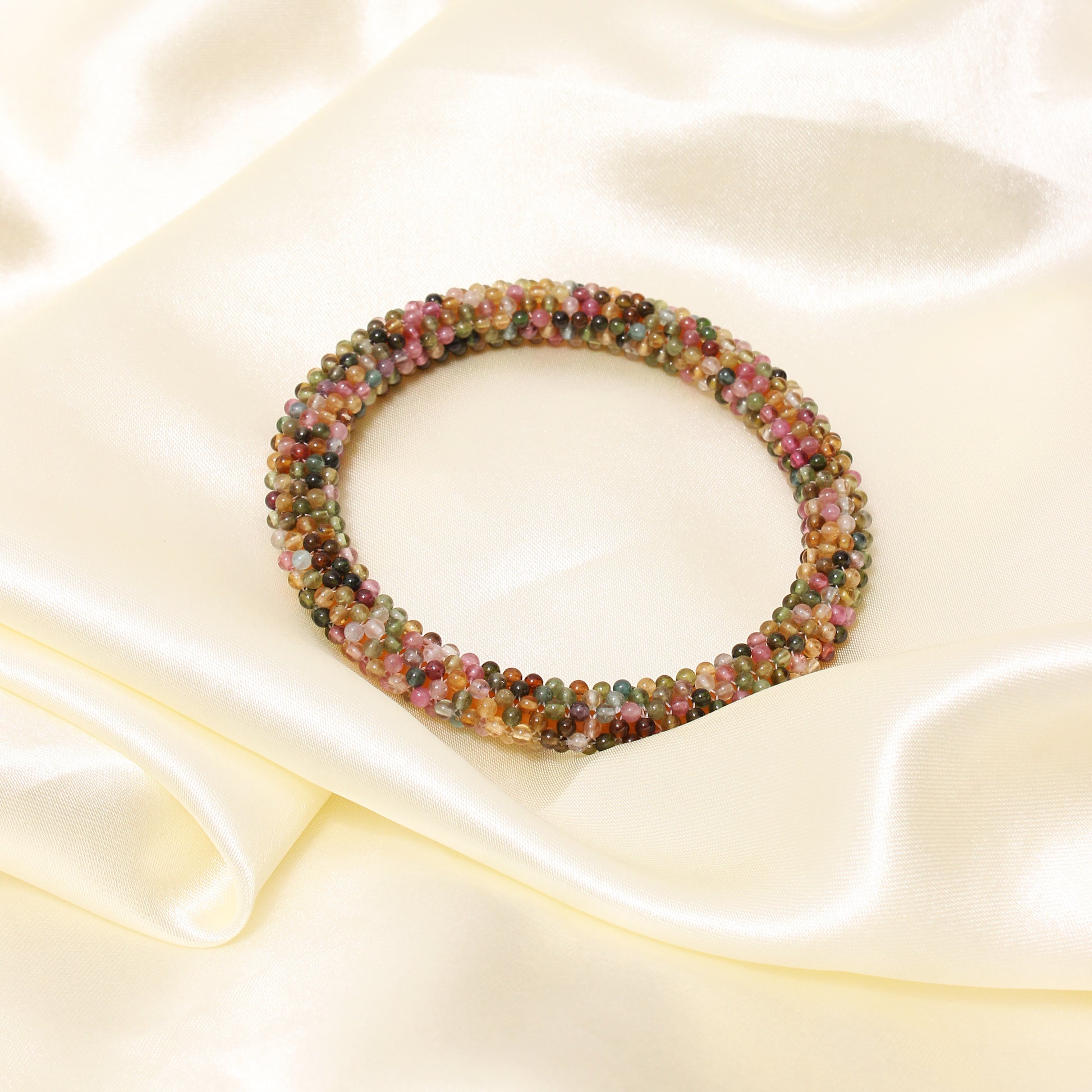 Natural Multi Tourmaline Beaded Bangle – Handmade Gemstone Bracelet for Positive Energy