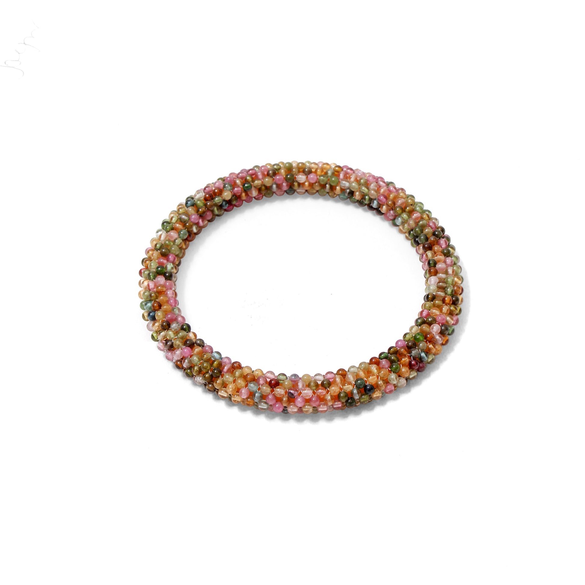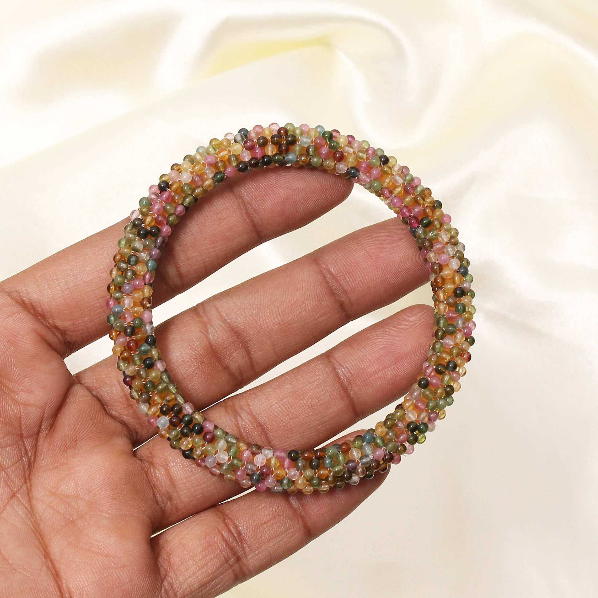 ITEM : Natural Multi Tourmaline Gemstone Beaded Bangle