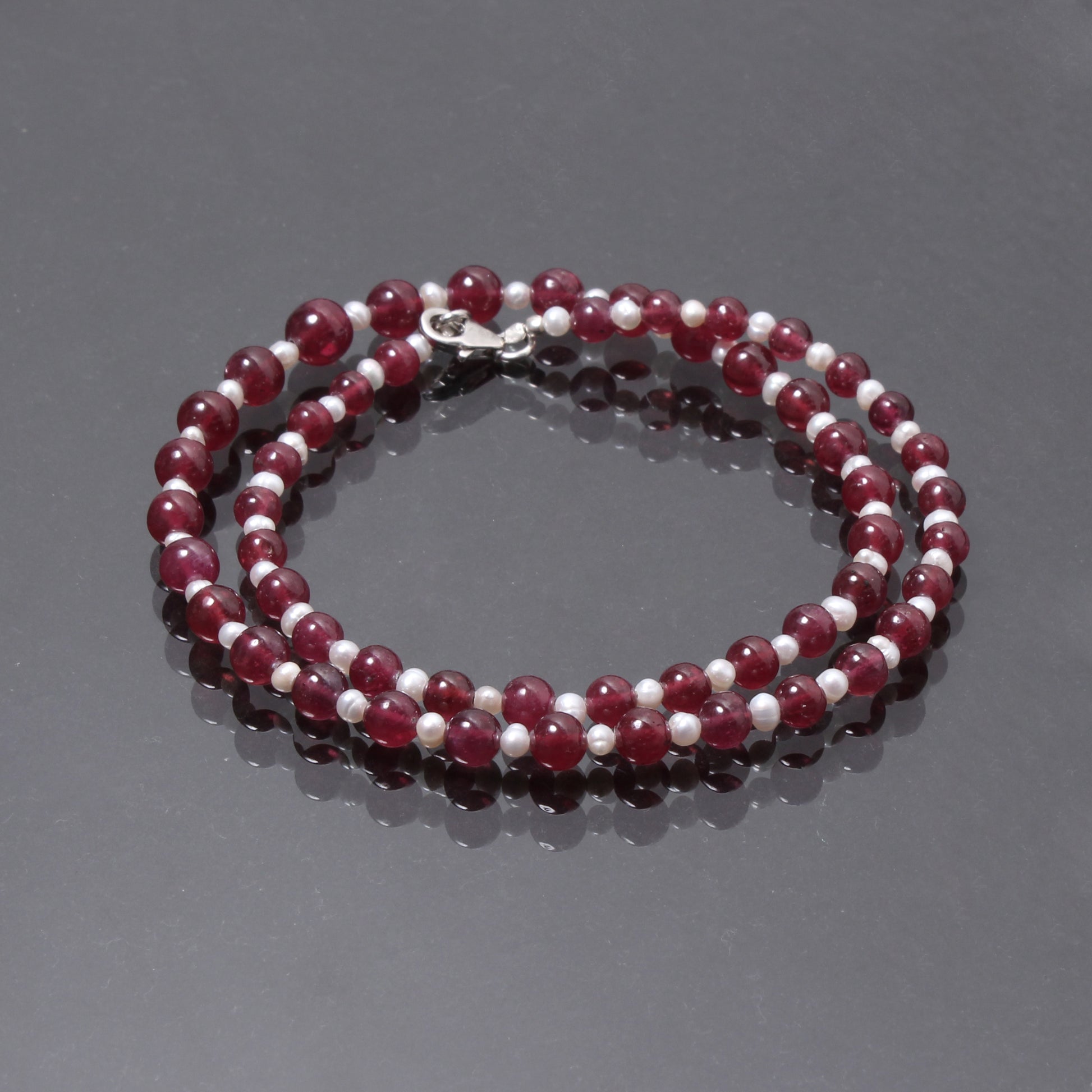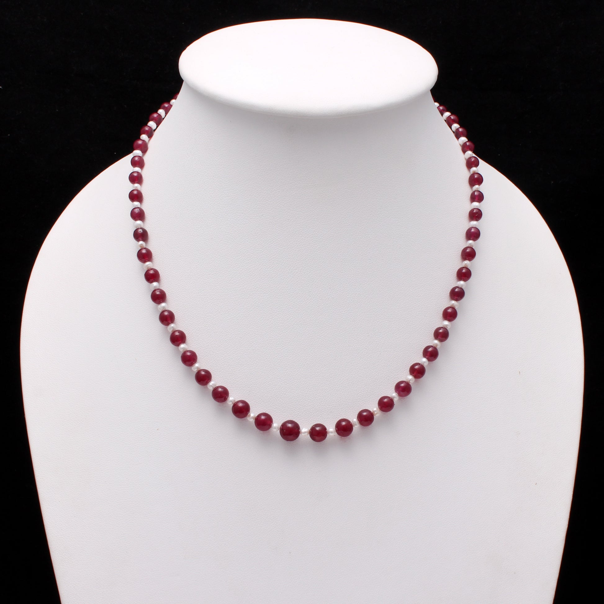 Celebrate the festive season in style with this stunning ruby and pearl beaded necklace. Featuring vibrant ruby beads complemented by delicate pearls, this timeless design is the perfect Christmas gift for adding elegance to any outfit.