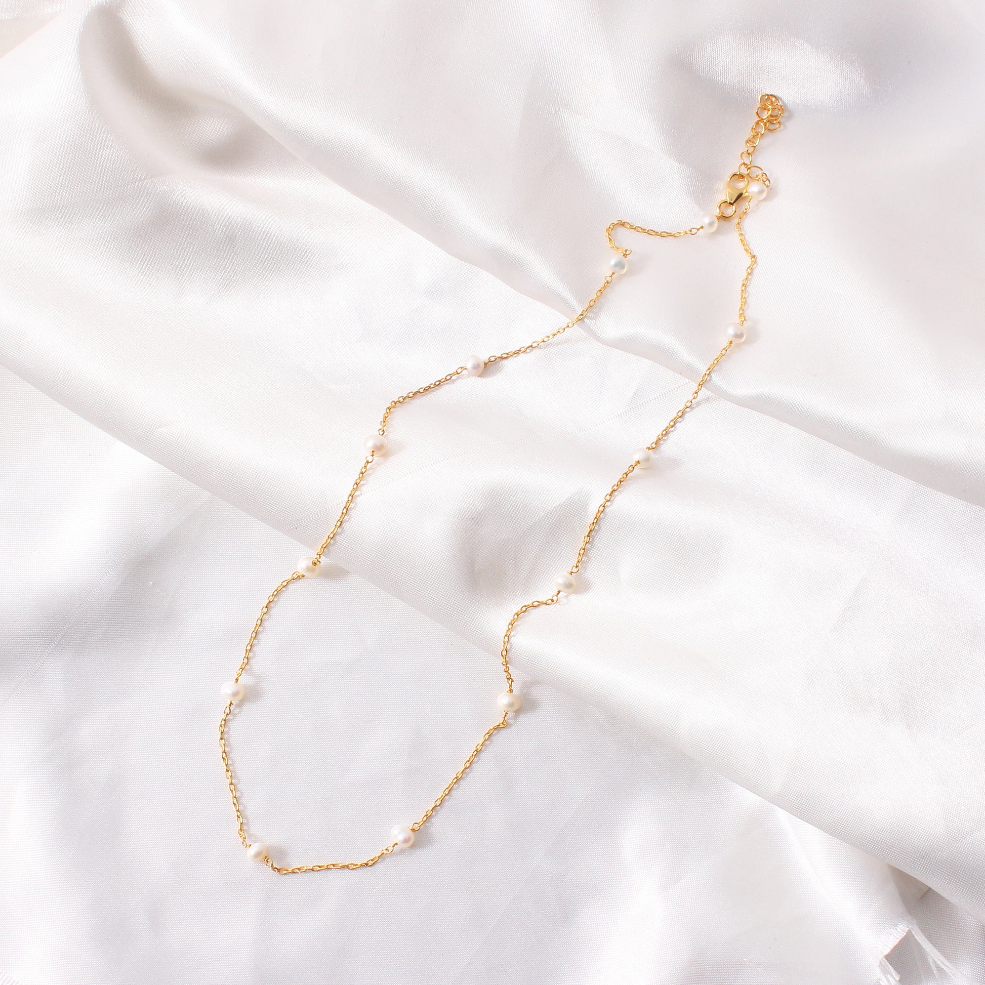 Natural Pearl Gemstone Chain Necklace With Gold Plated – Elegant & Timeless Jewelry