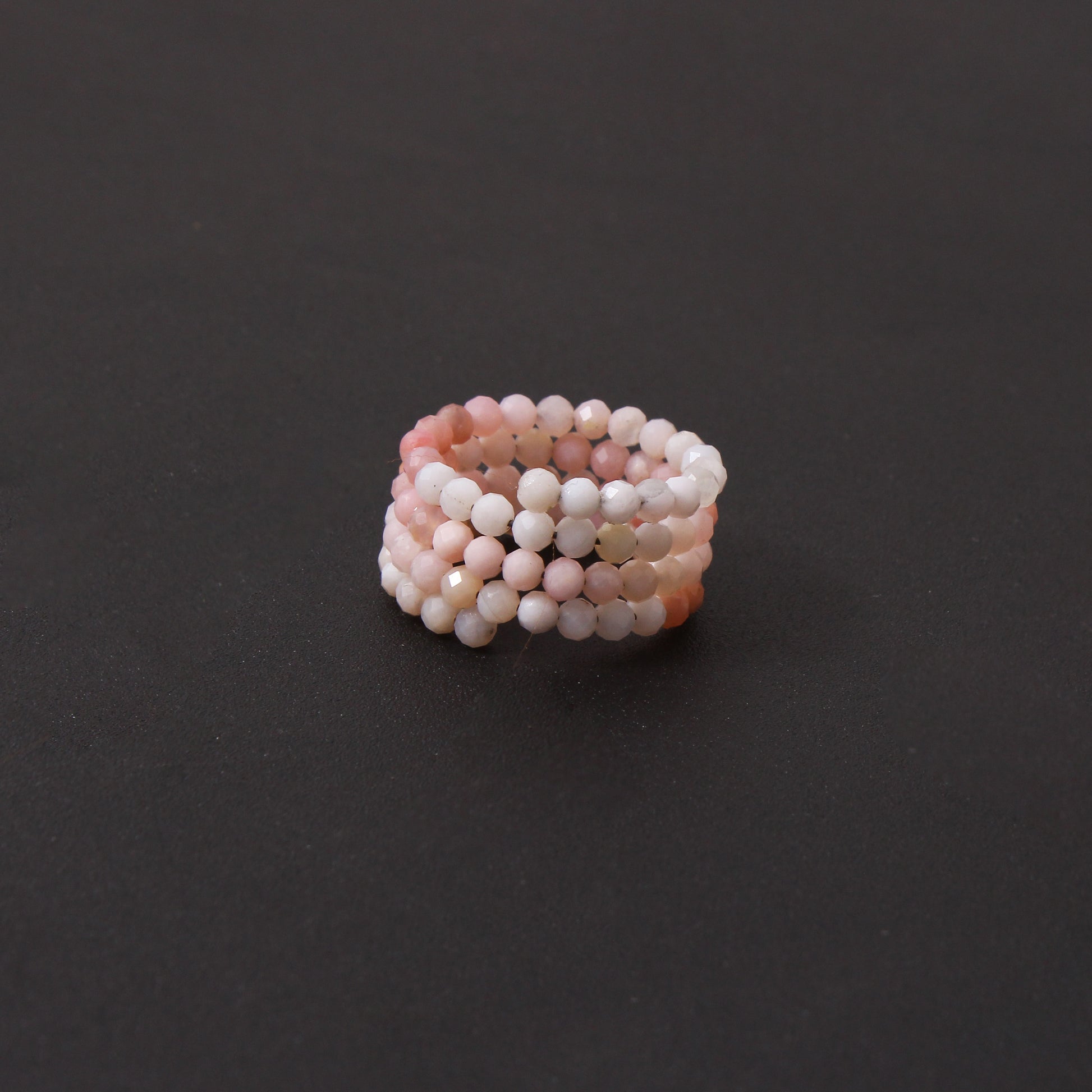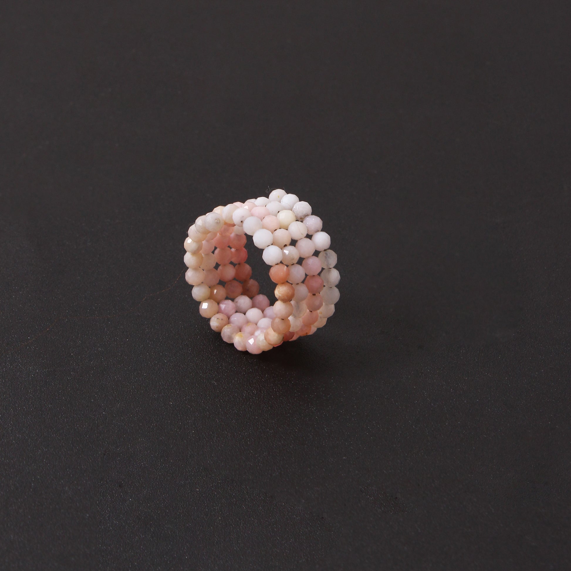 ITEM : Natural Pink Opal Beaded Gemstone Ring