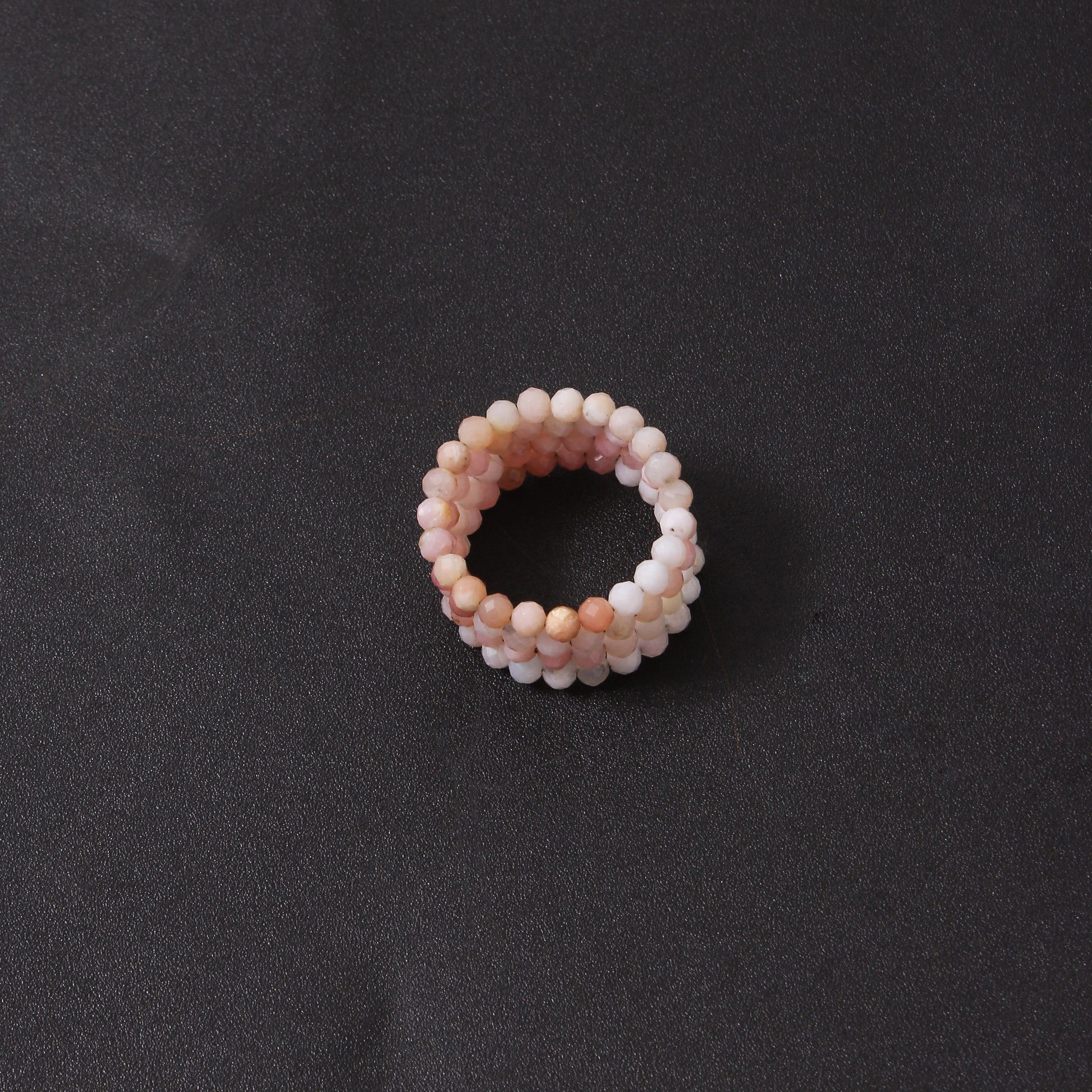 Natural Pink Opal Beaded Gemstone Ring – Handmade Elegant Crystal Band