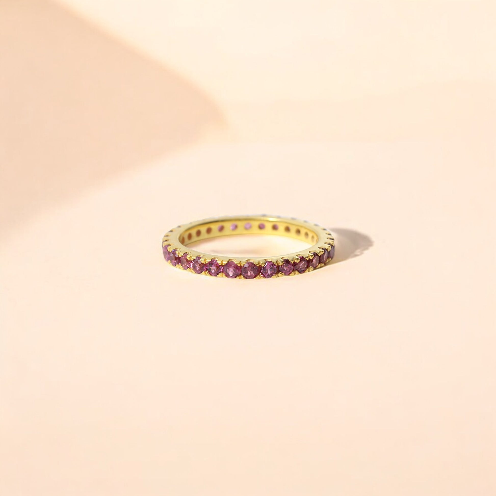Natural Purple Garnet Eternity Band – 925 Sterling Silver Stacking Ring
