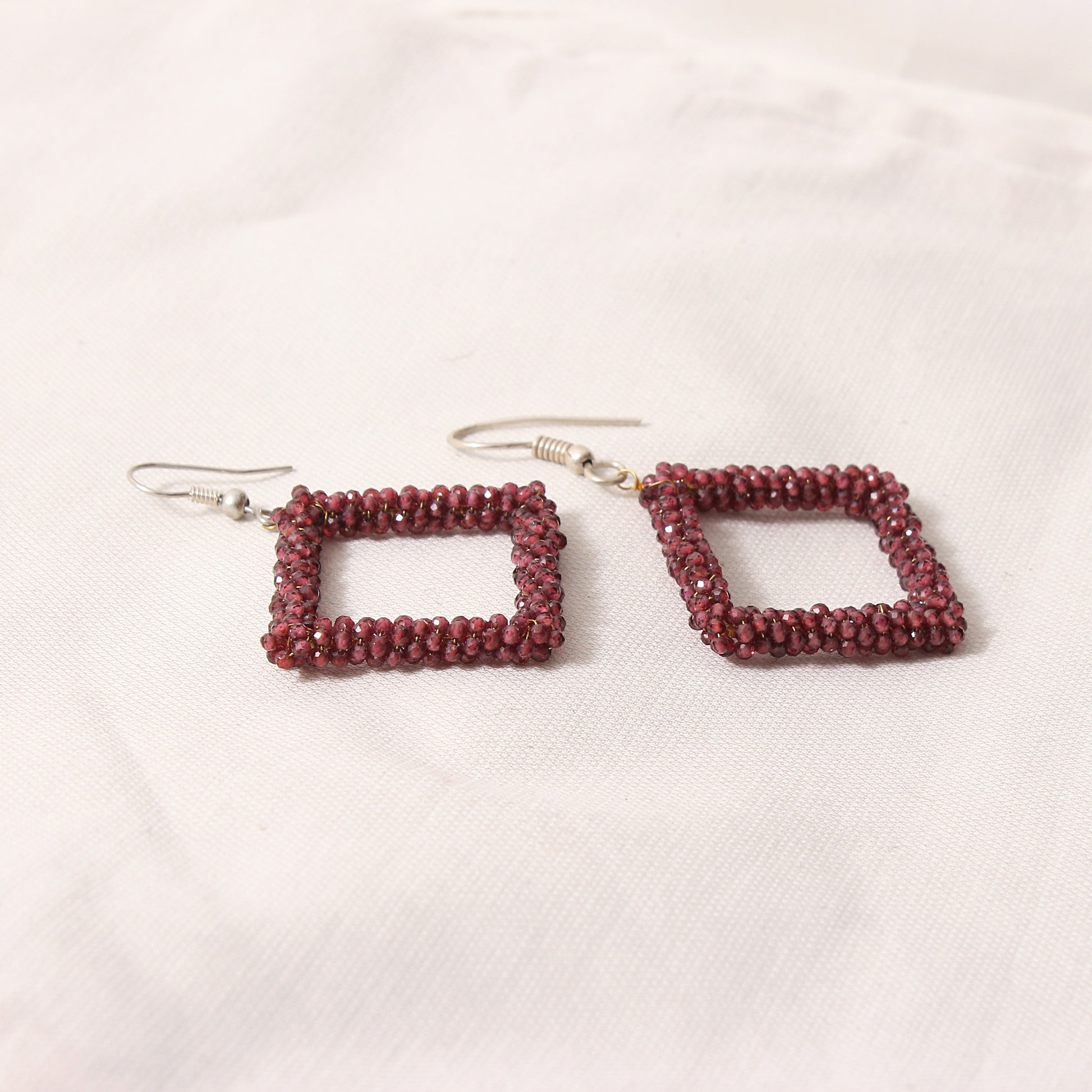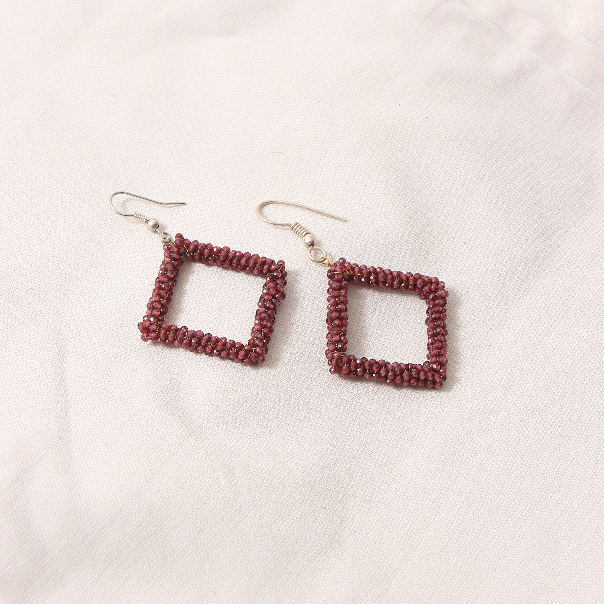 ITEM: Natural Rhodolite Garnet Square Design Gemstone Earrings