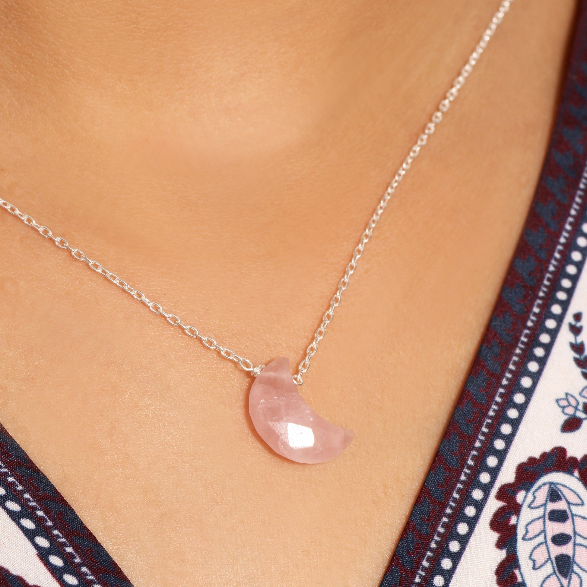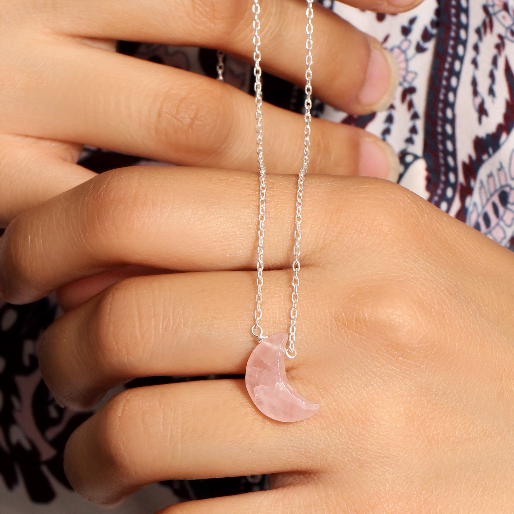 ITEM: Natural Rose Quartz Crescent Moon Pendant Necklace