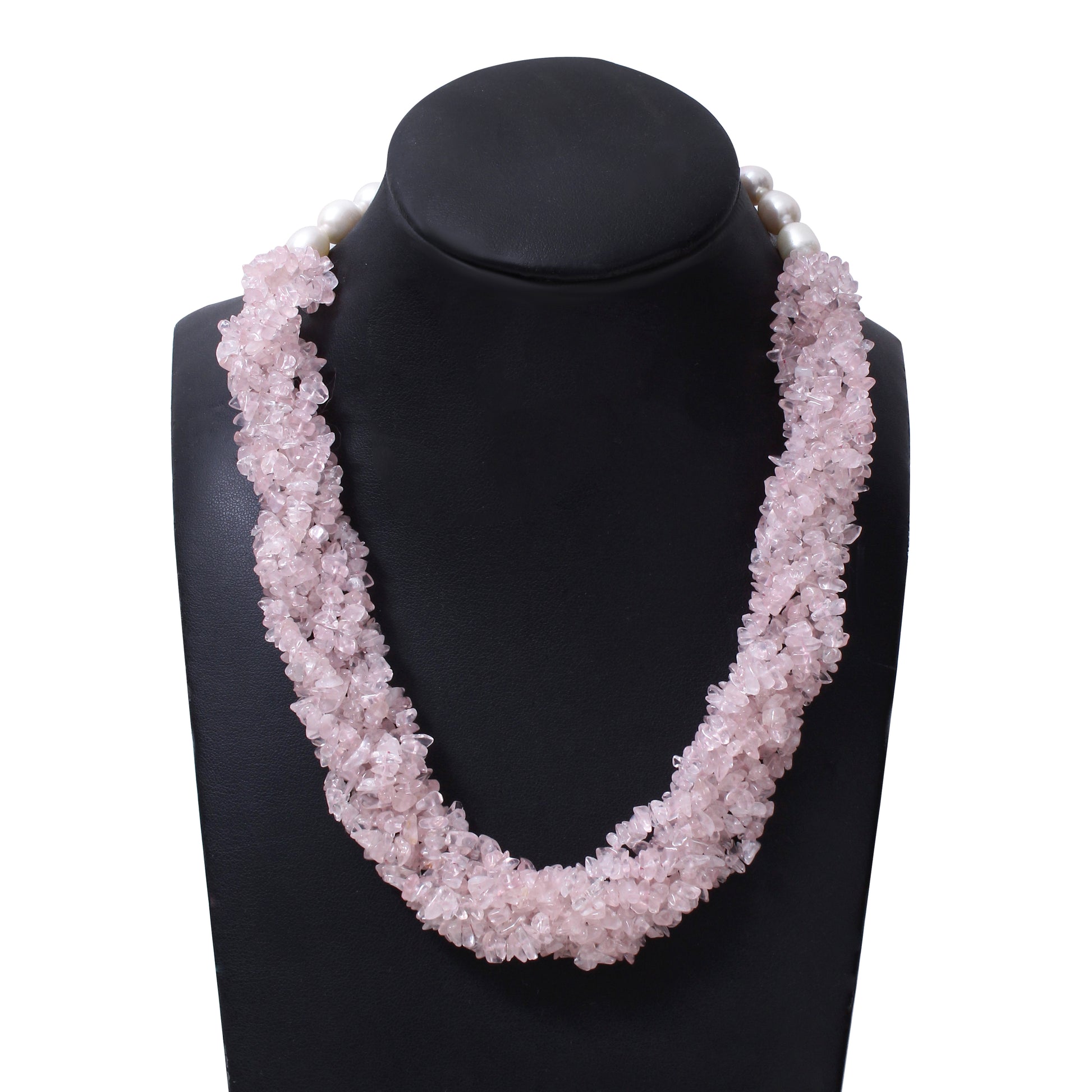 ITEM: Natural Rose Quartz & Pearl Gemstone Designer Necklace