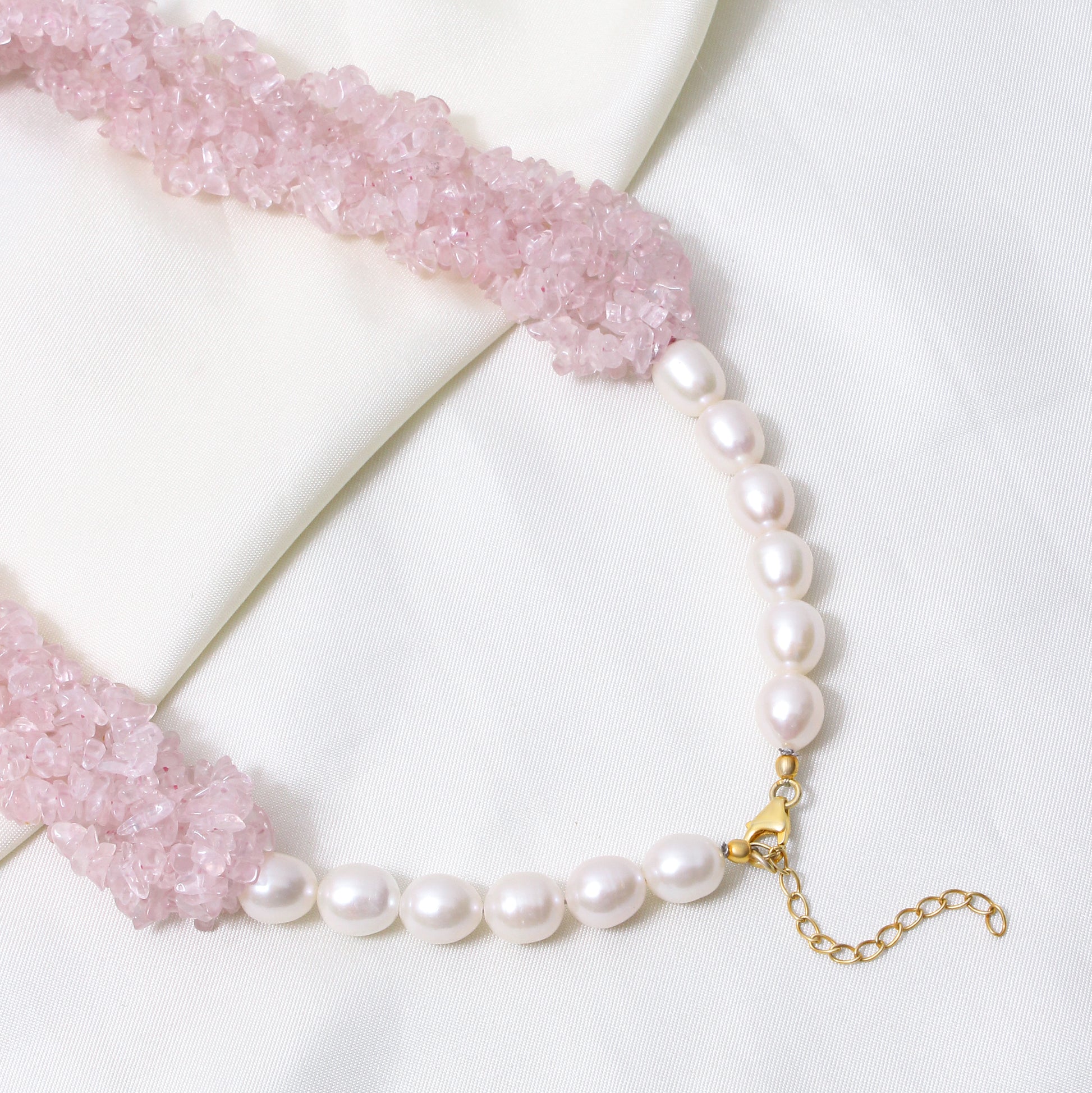 Natural Rose Quartz & Pearl Gemstone Designer Necklace – Chunky Crystal Bead Statement Jewelry for Love & Harmony
