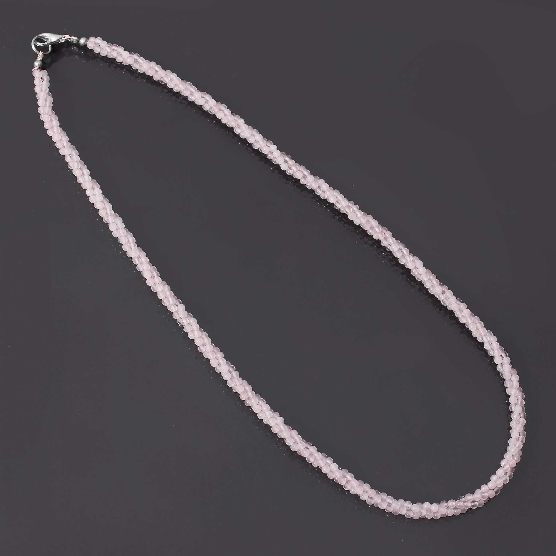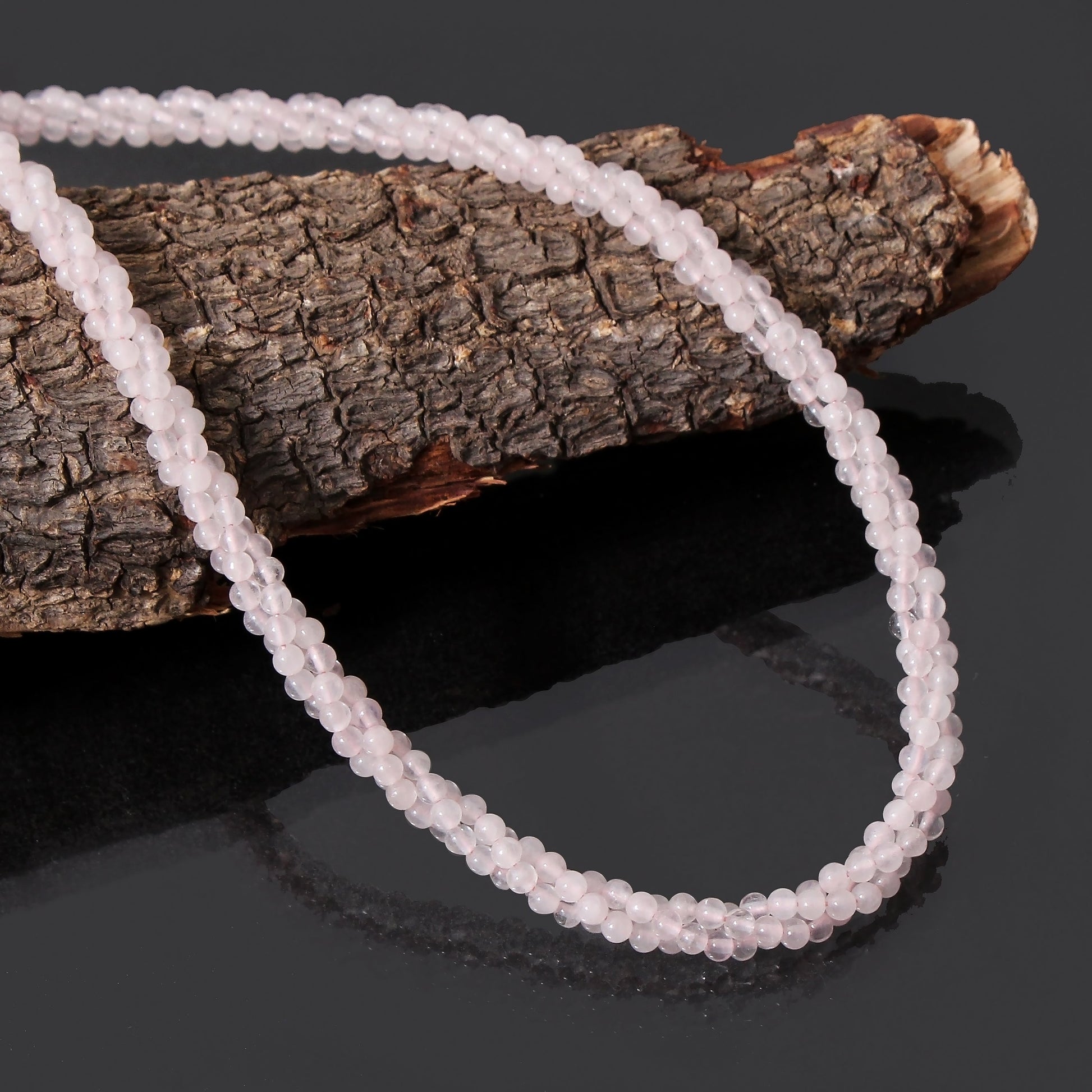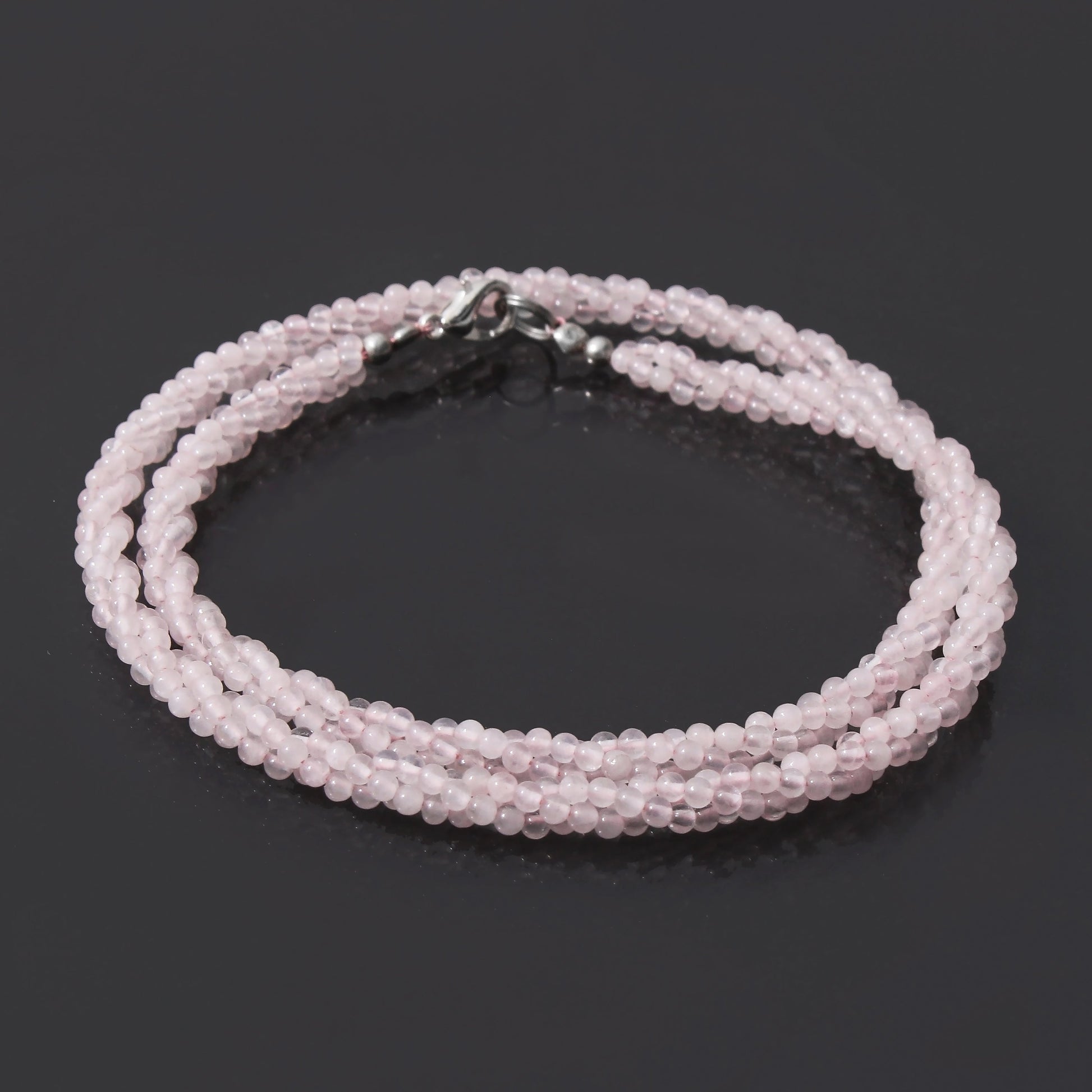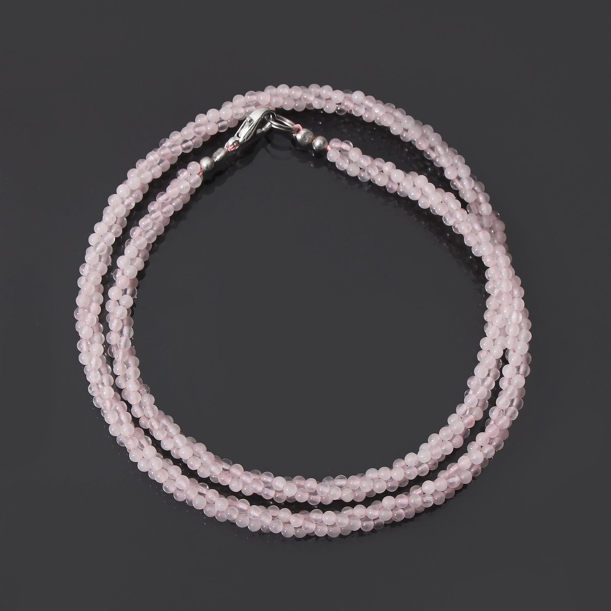 ITEM : Natural Rose Quartz Round-Tiny ball Beaded Triple Twisted Layer Necklace With 925 Sterling Silver Lobster lock.