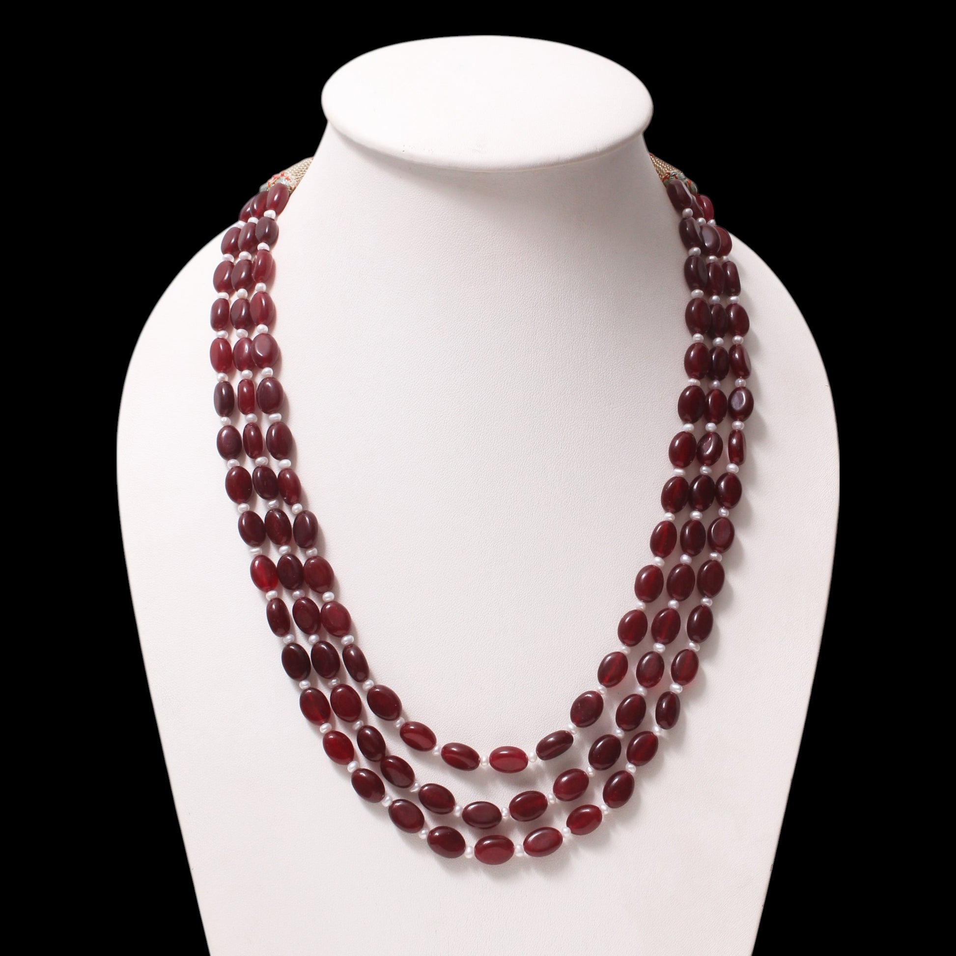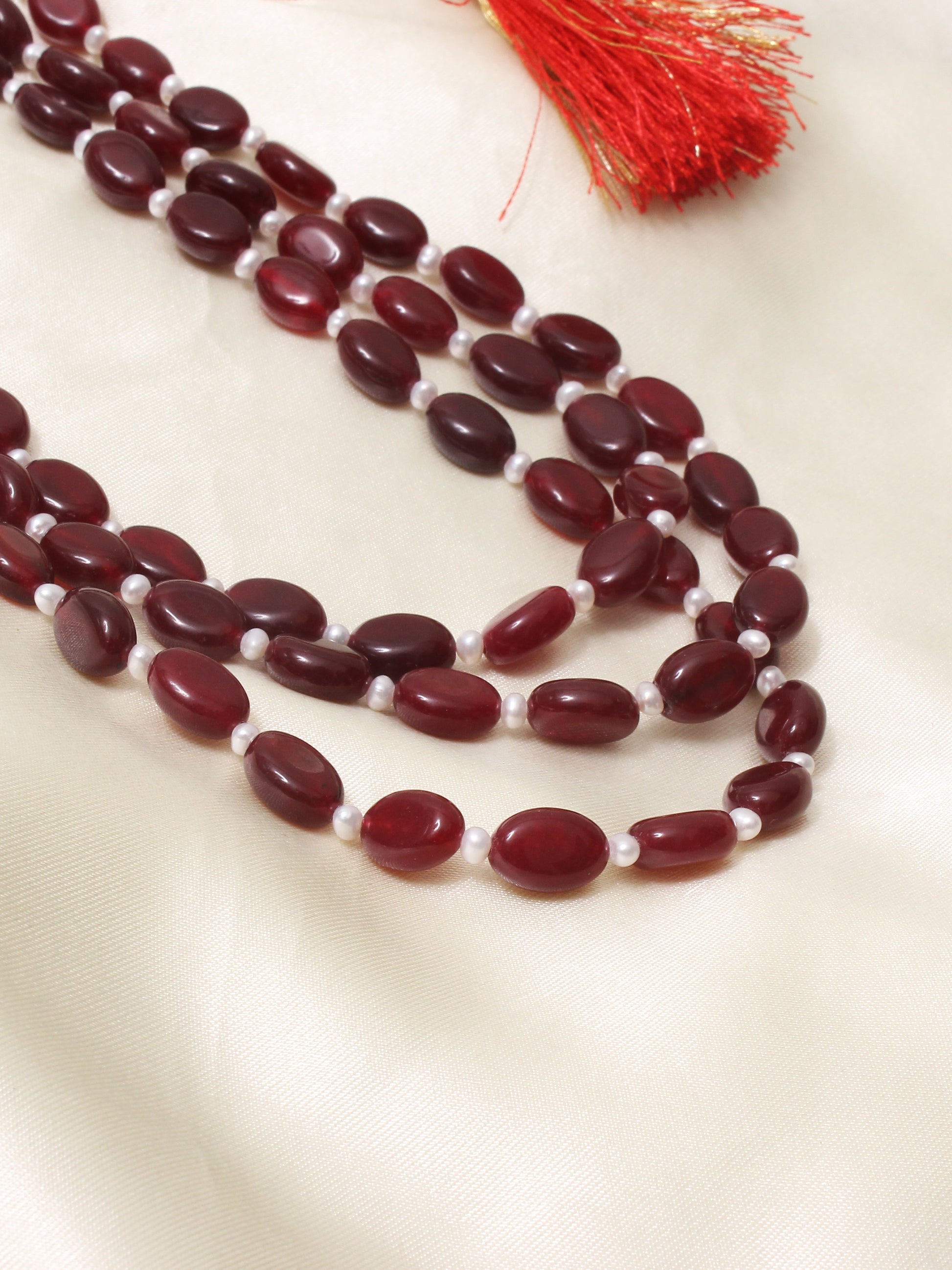 ITEM : Ruby Quartz and Pearl Three Layer Beaded Necklace