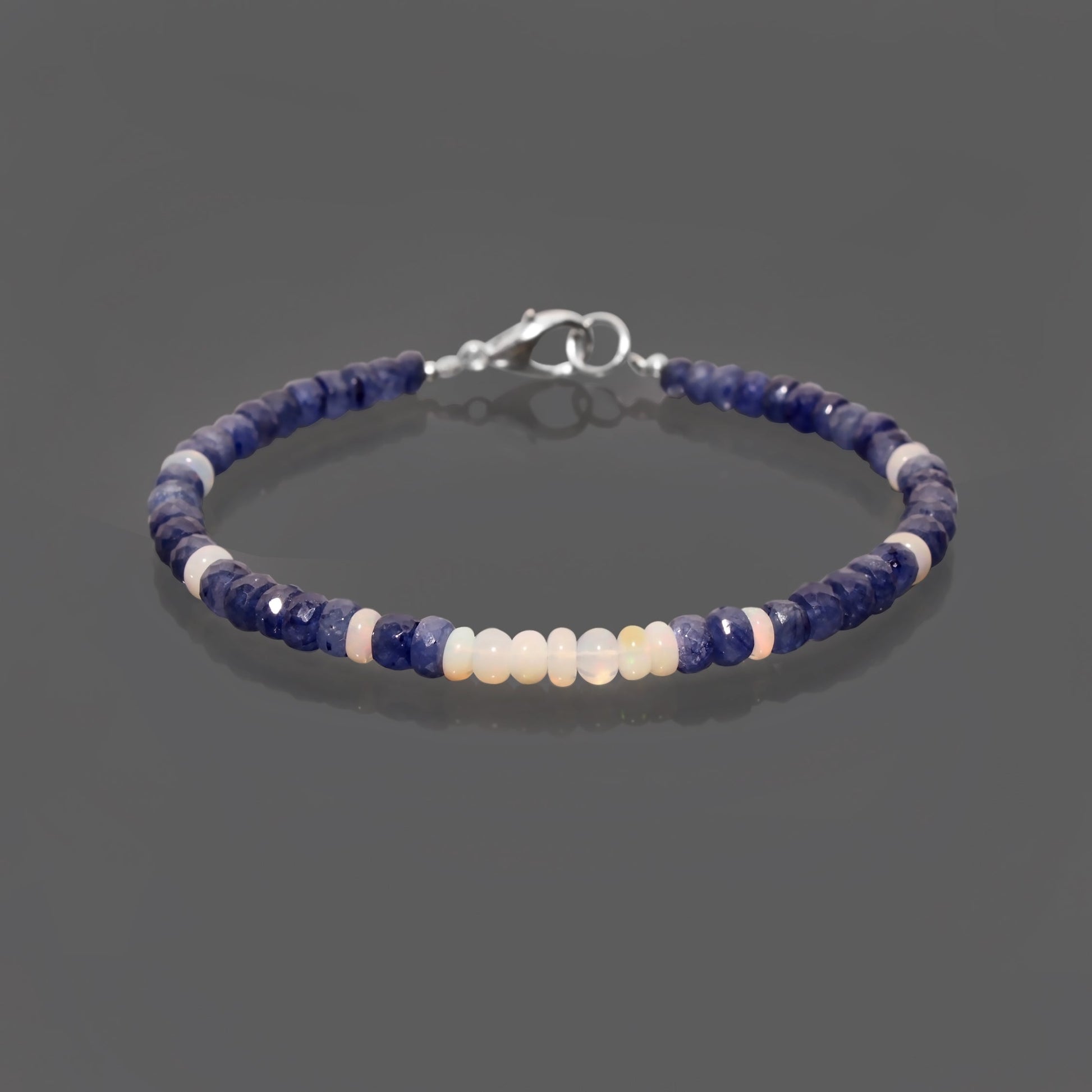 Natural Sapphire and Ethiopian Opal Bracelet: Handcrafted with Premium Quality Gemstone and Silver Lock