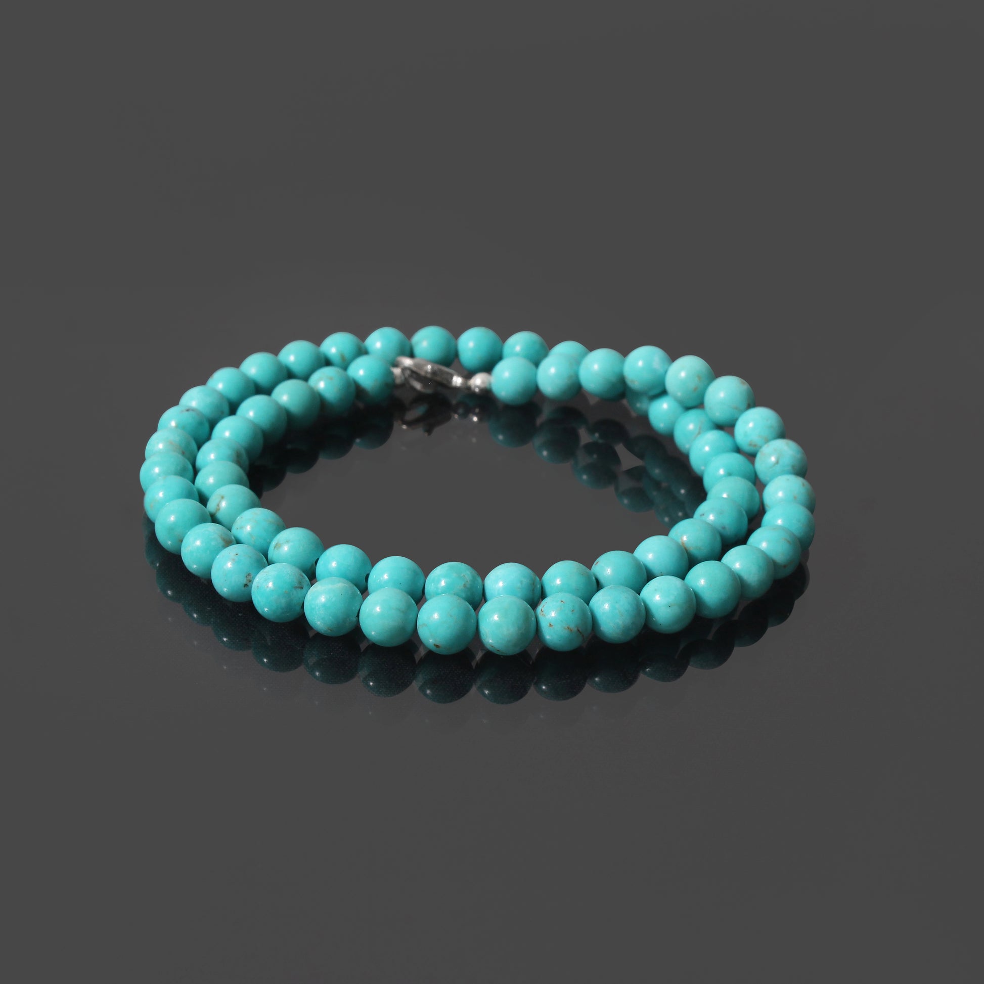 Experience the soothing energy of genuine Sky Arizona Turquoise with this 7mm round bead necklace. Known as a stone of protection, clarity, and inner balance, turquoise helps calm the mind while elevating your style with its vibrant sky-blue color. Perfect for daily wear, spiritual practices, or gifting.