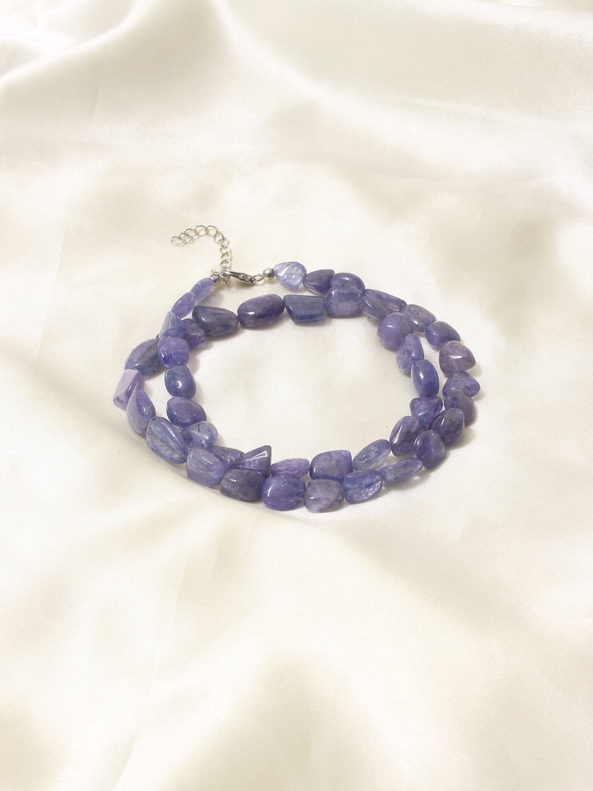 Elevate your energy and style with this stunning tumbled Tanzanite beaded necklace. Known for enhancing intuition, spiritual awareness, and inner peace, Tanzanite is a powerful gemstone for transformation. Handcrafted with natural violet-blue stones, this elegant piece brings both healing energy and a sophisticated touch to any outfit.