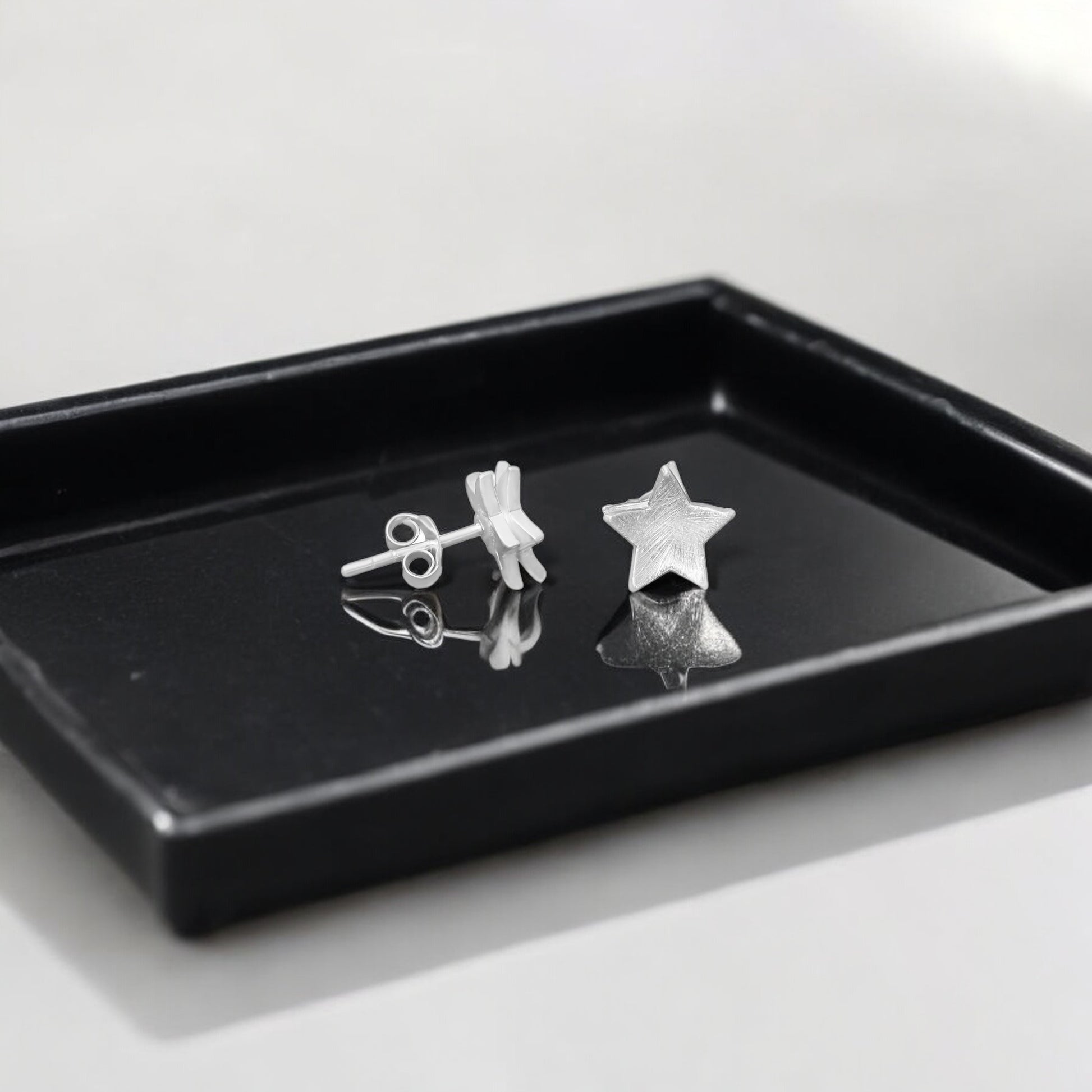 Elevate your look with our Natural 925 Solid Sterling Silver Star Earrings. Crafted from pure sterling silver, these earrings symbolize purity and brilliance. Perfect for adding a touch of elegance to any outfit, they shine with sophistication and style. Ideal for those seeking a timeless accessory that embodies both beauty and quality.