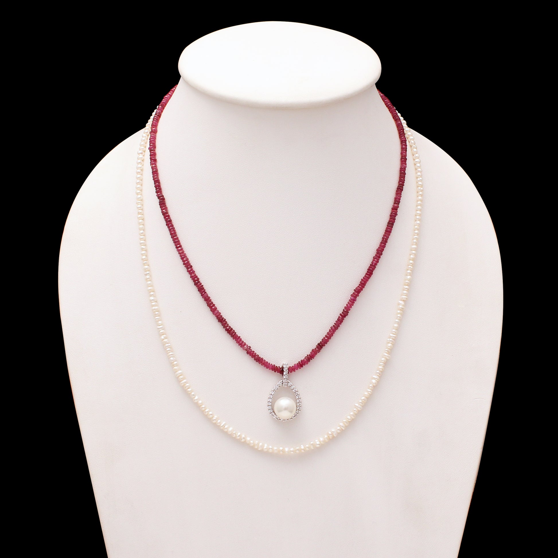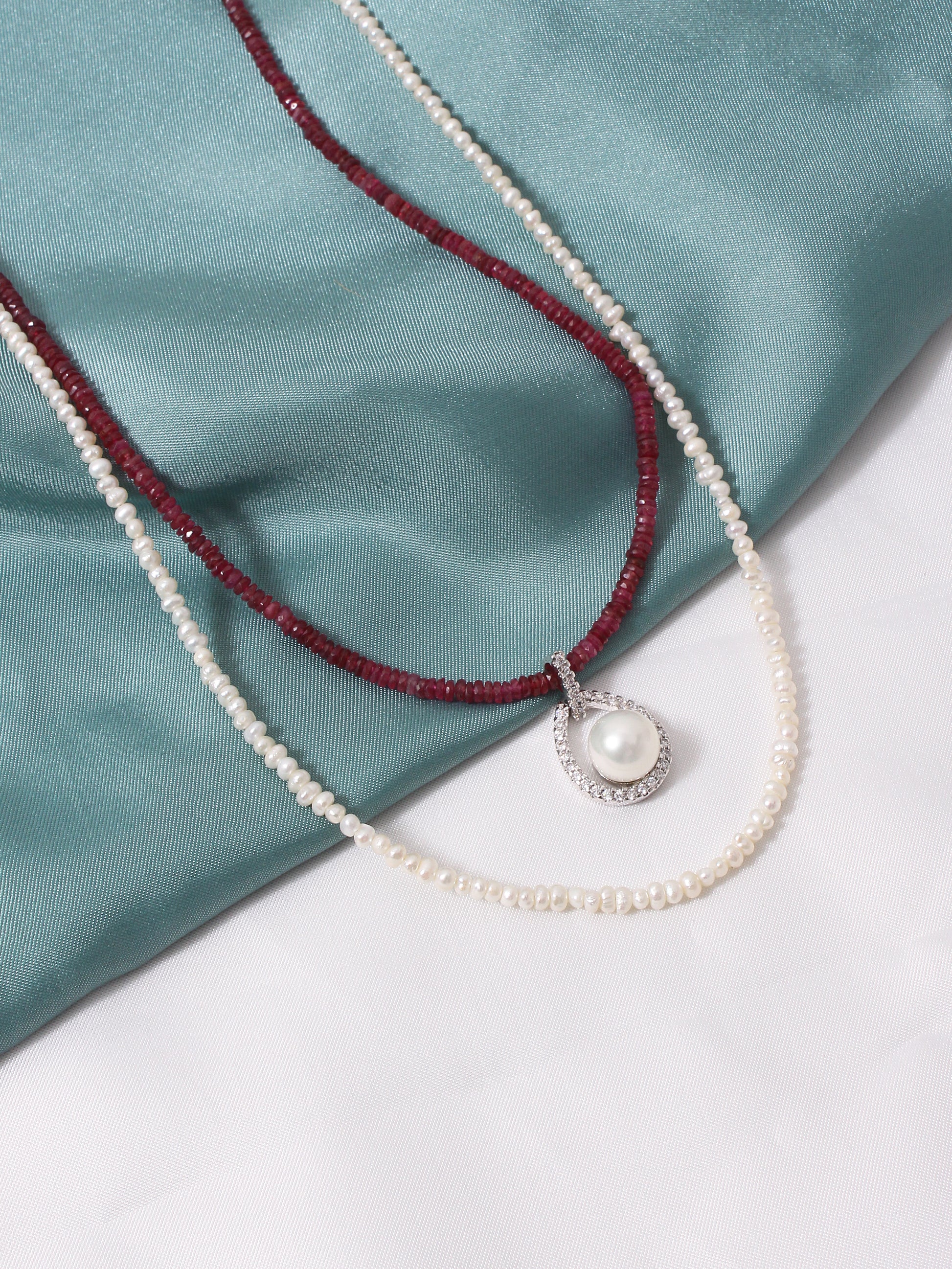"Pearl & Ruby Pendant: Timeless Elegance, Layered Necklace