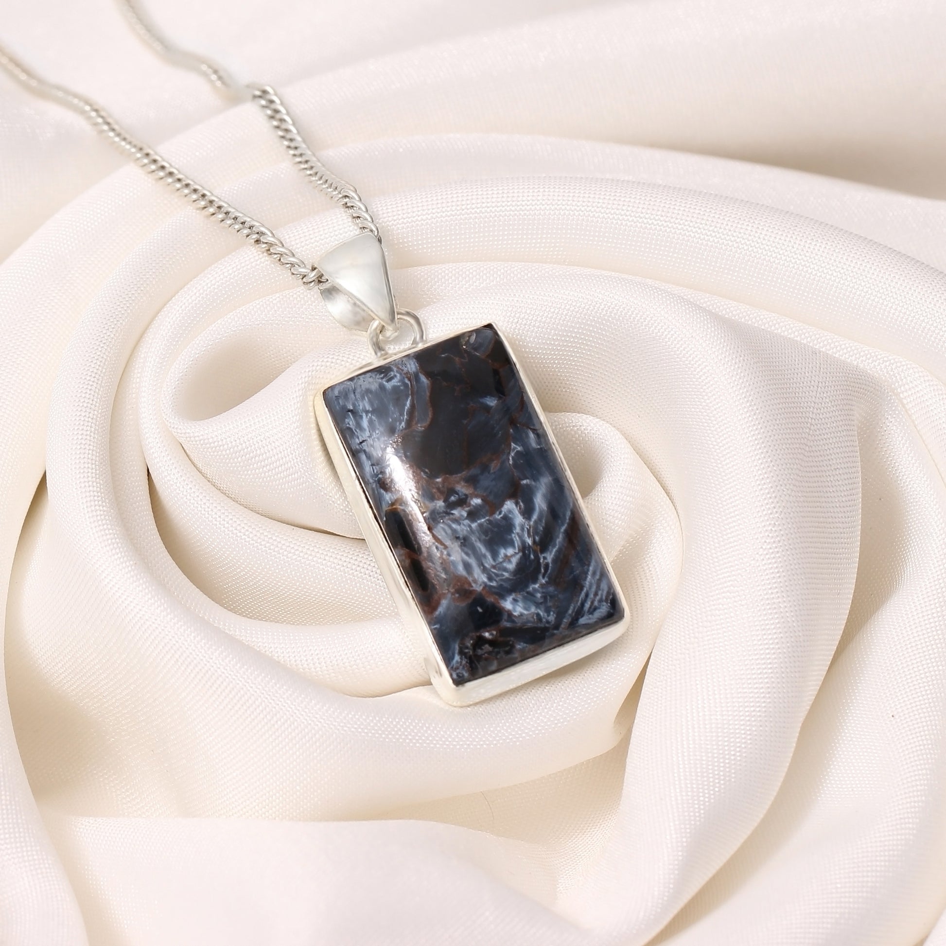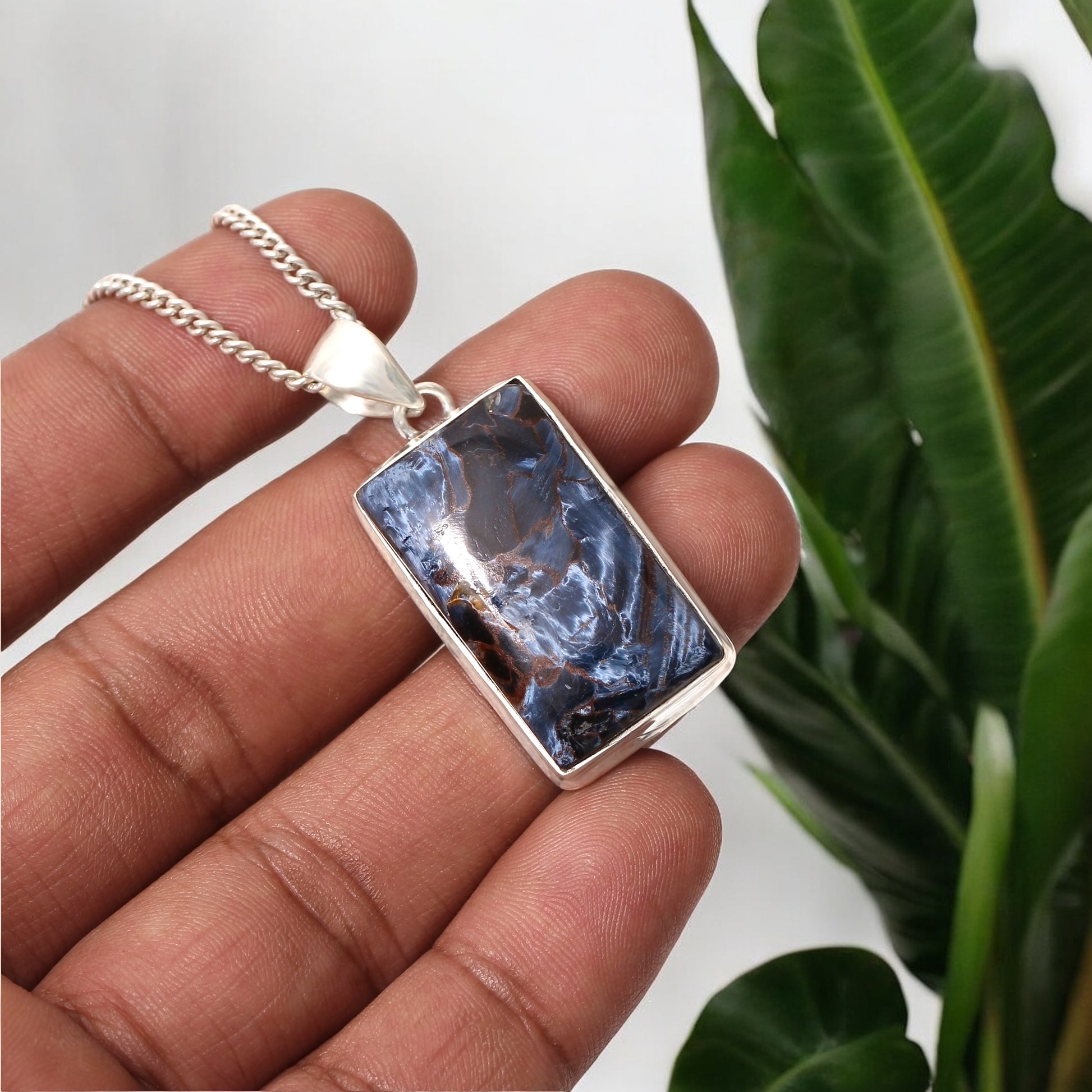 Elevate your style with our 925 Sterling Silver Pietersite Pendant Necklace, featuring a stunning rectangular gemstone. Known as the "Tempest Stone," pietersite is believed to enhance clarity, intuition, and spiritual connection. This handcrafted piece is perfect for those seeking both elegance and the powerful healing properties of pietersite. Wear it daily to inspire courage and transformation in your life.