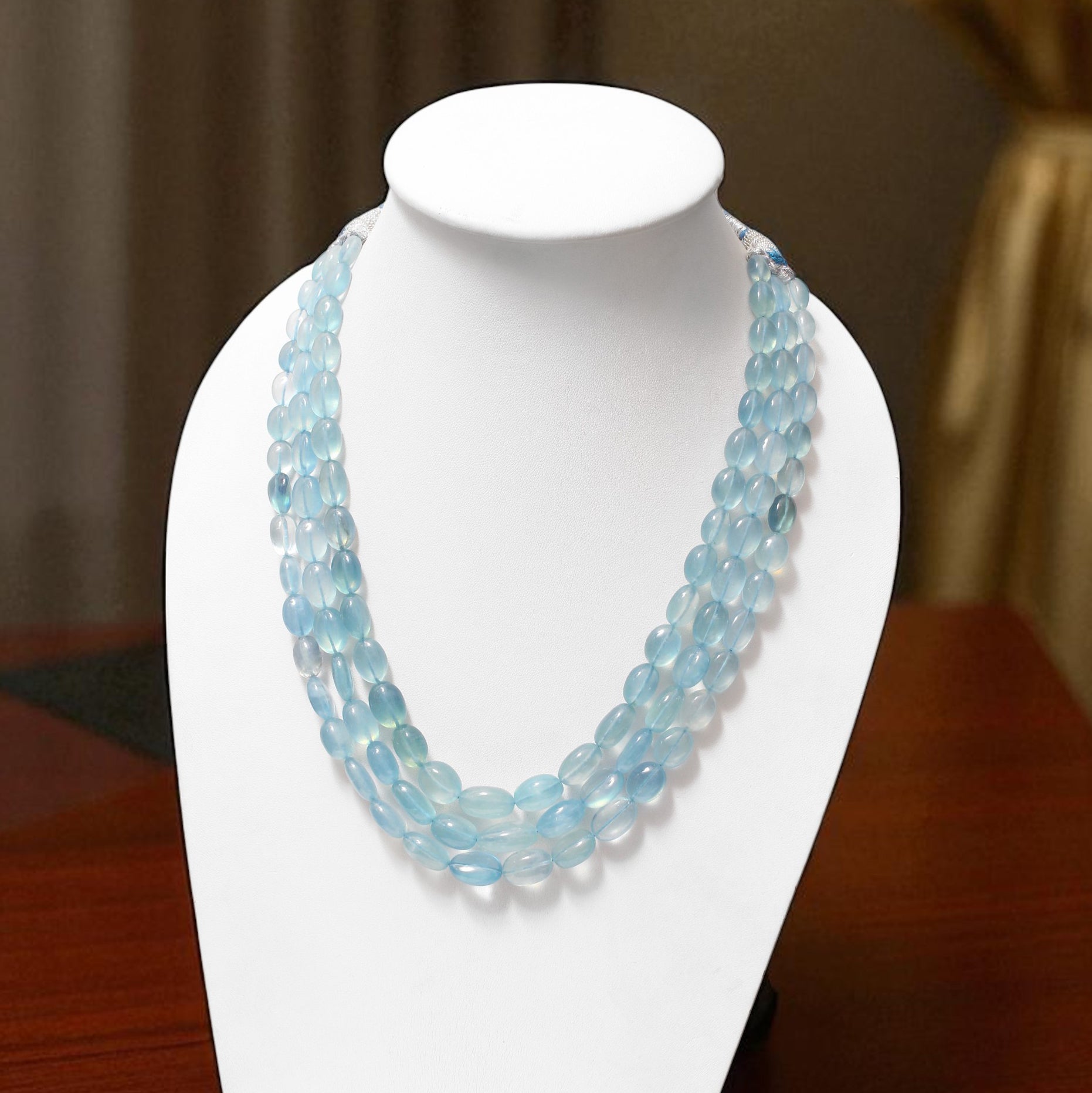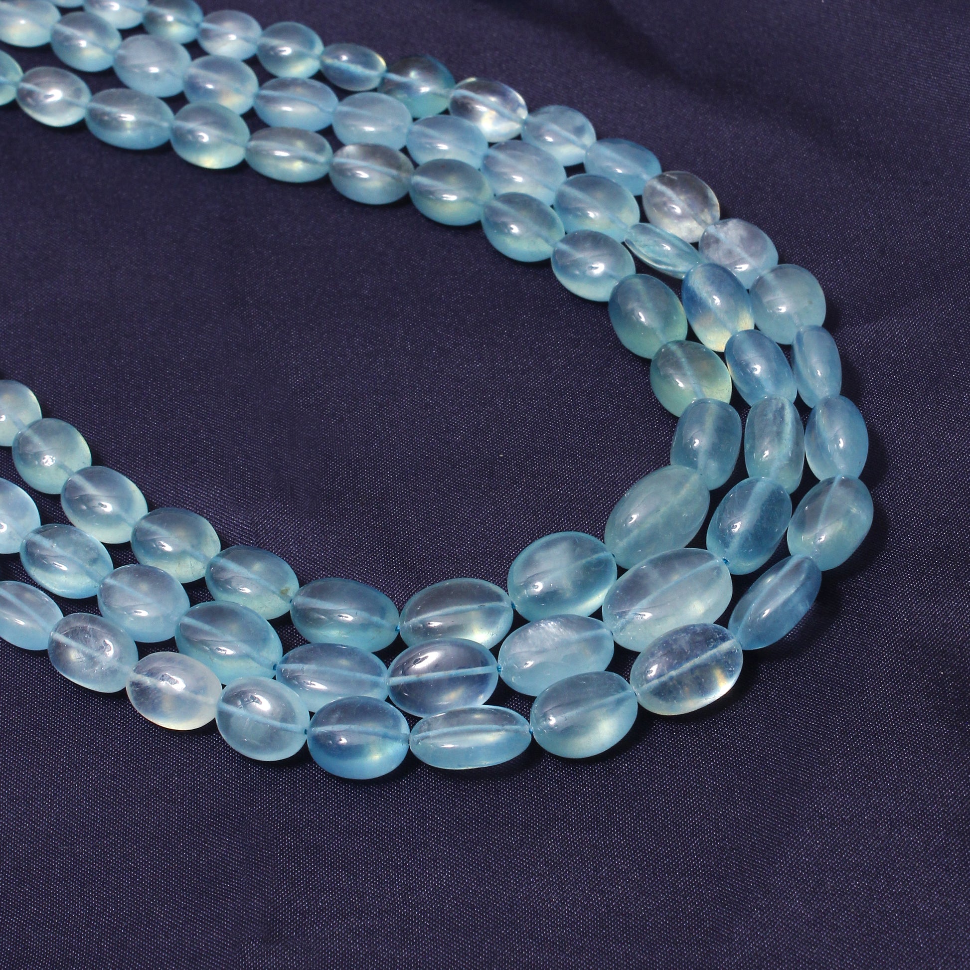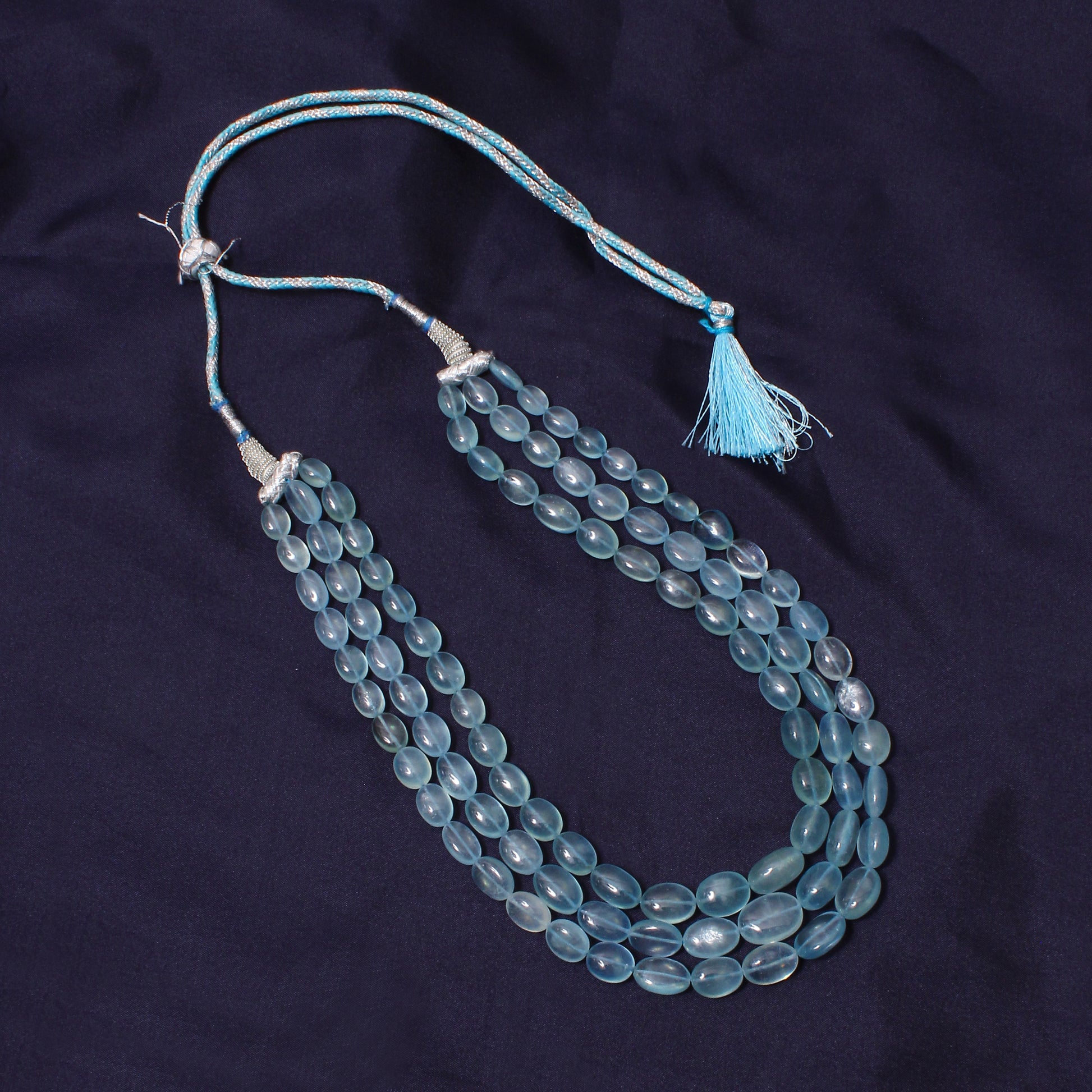 Premium Natural Aquamarine 3-Layer Sarafa Necklace – High-Quality Calming Blue Gemstone Jewelry