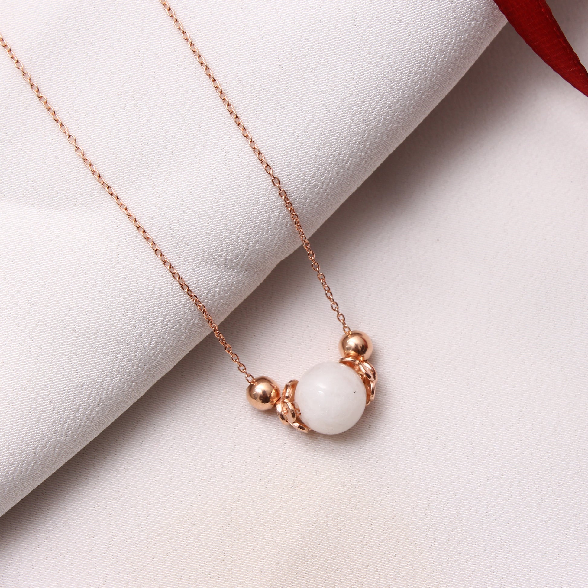 Enhance your elegance with our Beautiful Rainbow Moonstone Beaded Necklace, featuring a sophisticated rose gold-banded chain. Known for boosting intuition and fostering emotional balance, Rainbow Moonstone brings a sense of clarity and harmony to your life. This stunning necklace is perfect for those who seek a graceful accessory that also offers spiritual enrichment and inner growth.