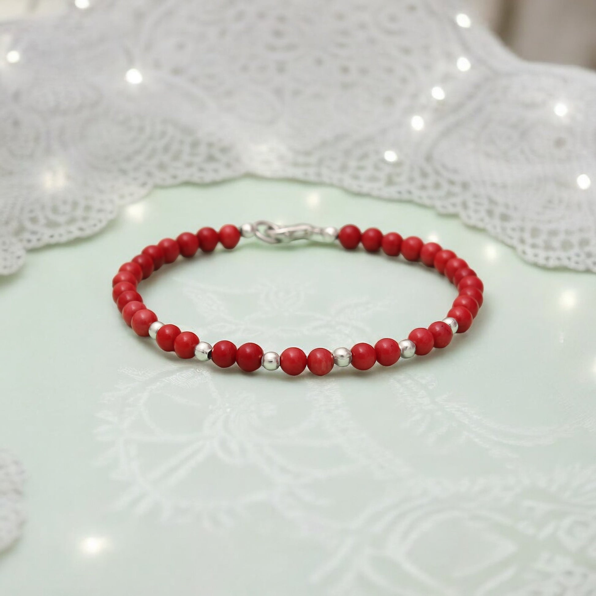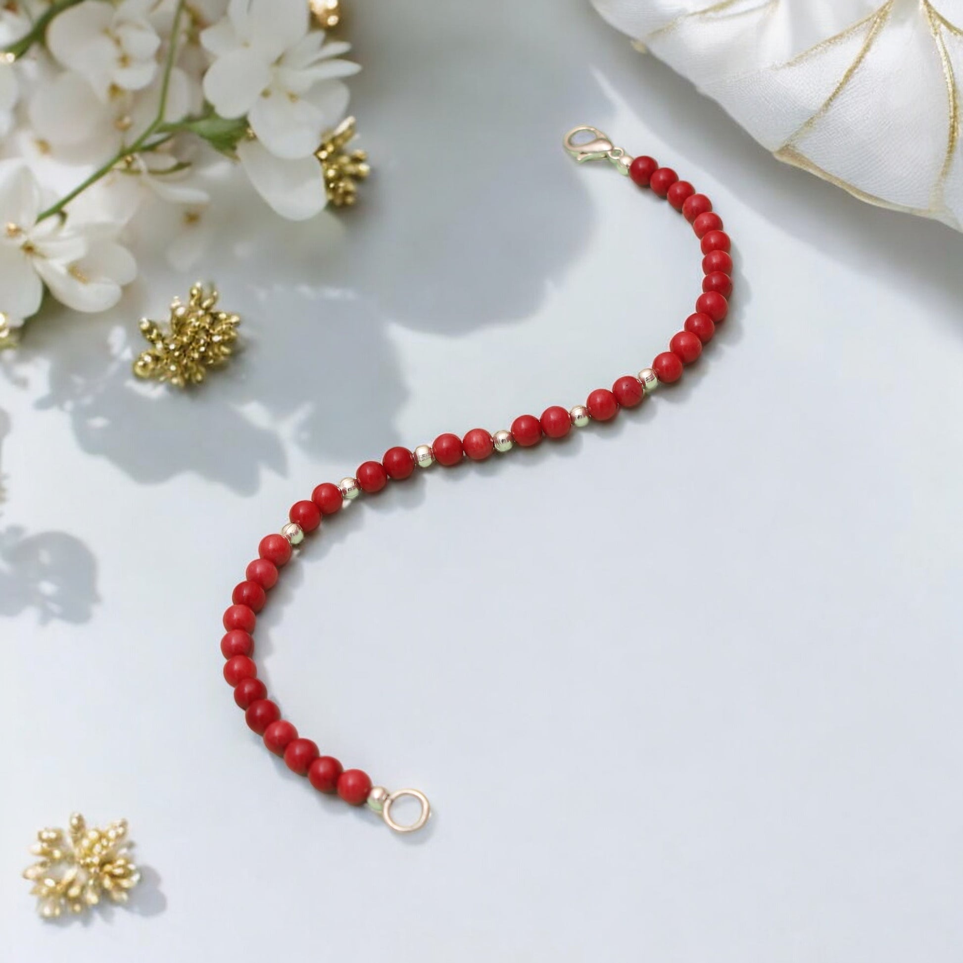 ITEM: Red Coral Beaded Bracelet/Rakhi