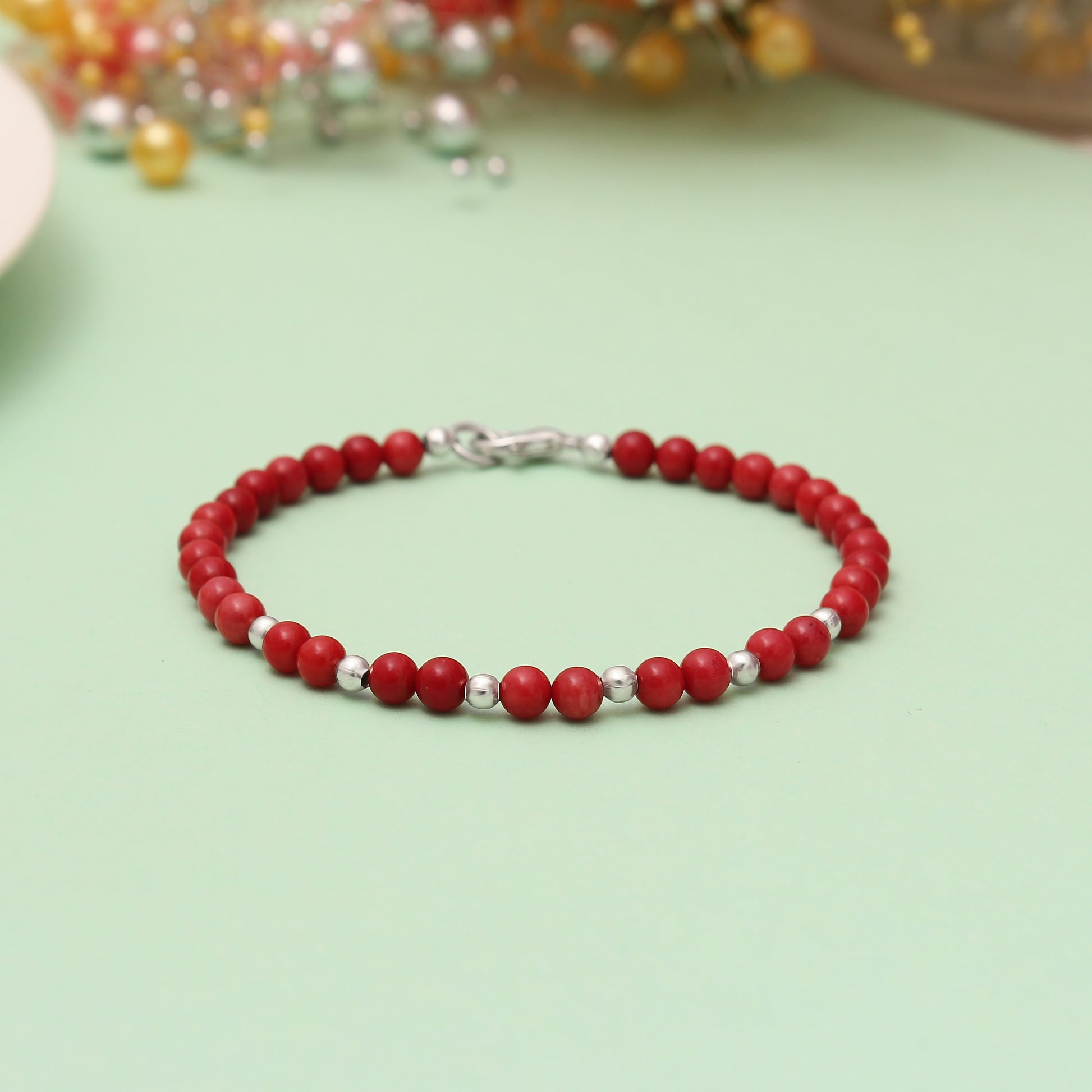 Red Coral Beaded Bracelet/Rakhi- Vitality & Courage