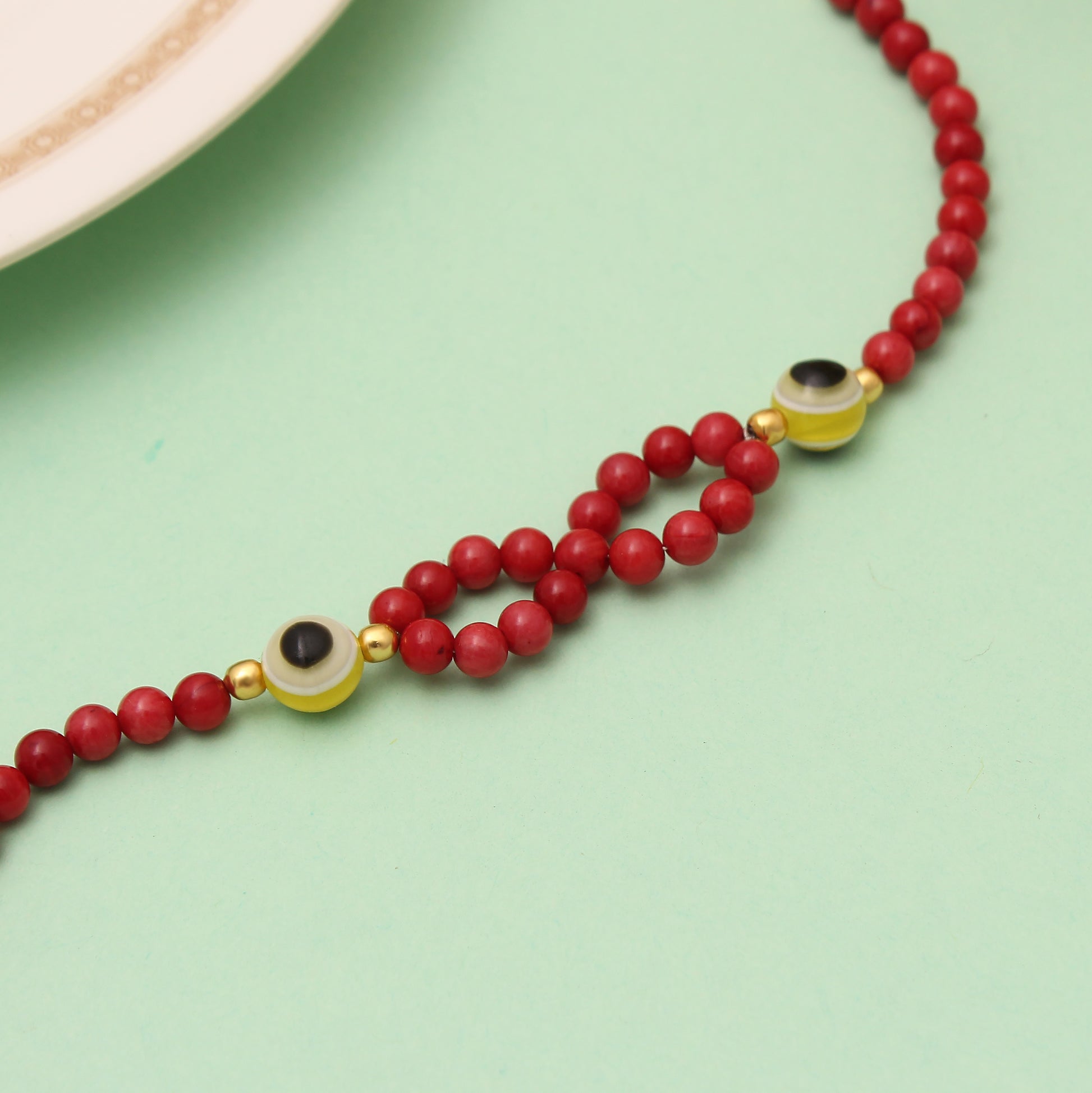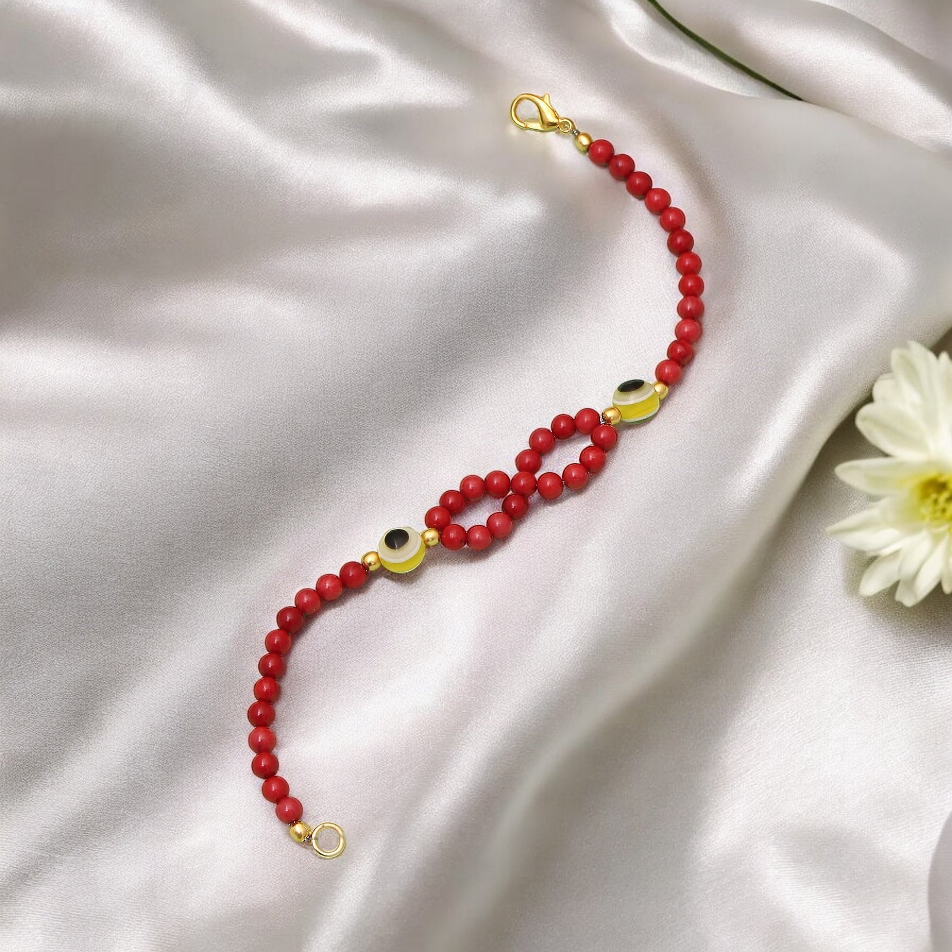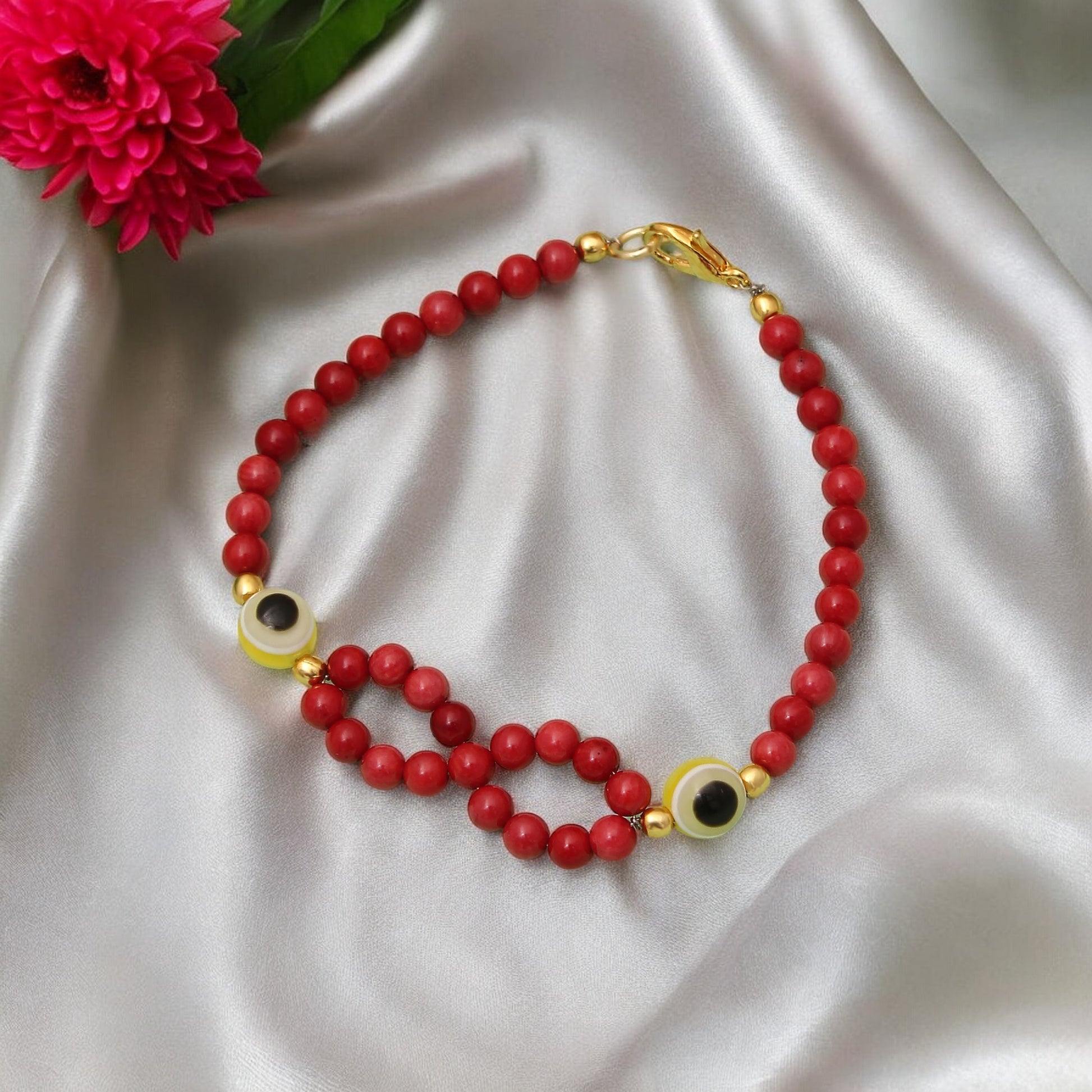 ITEM : Red Coral & Evil Eye Beaded Bracelet/Rakhi