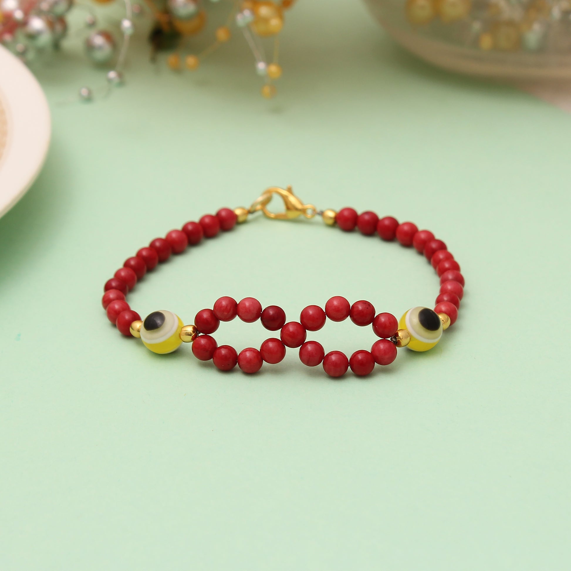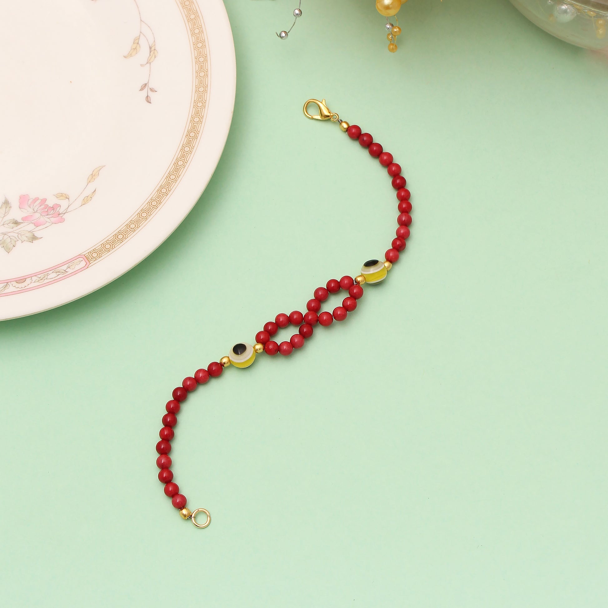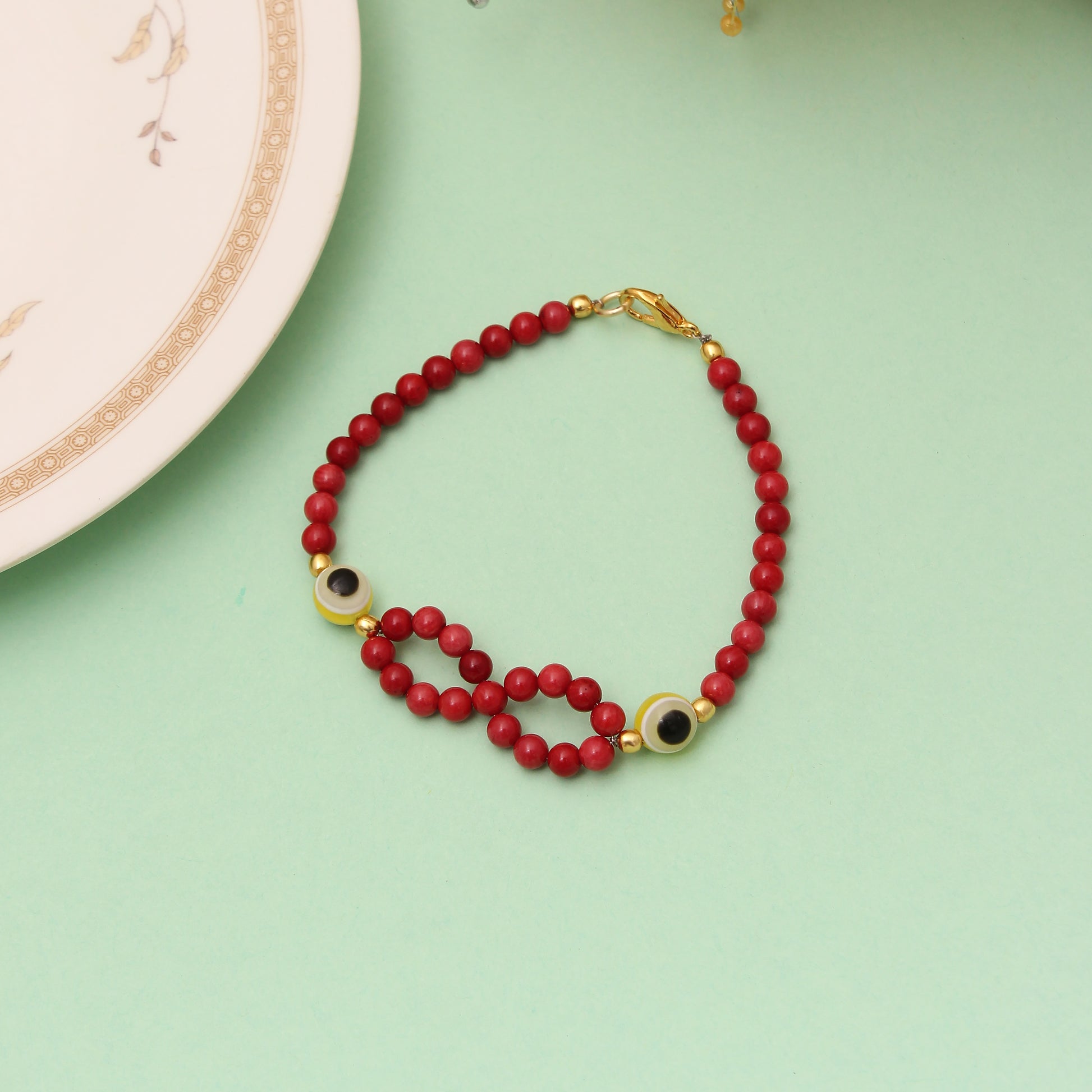 ITEM : Red Coral & Evil Eye Beaded Bracelet/Rakhi