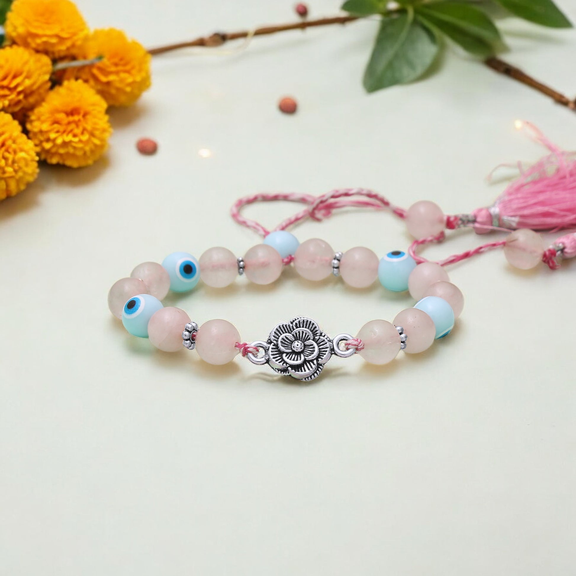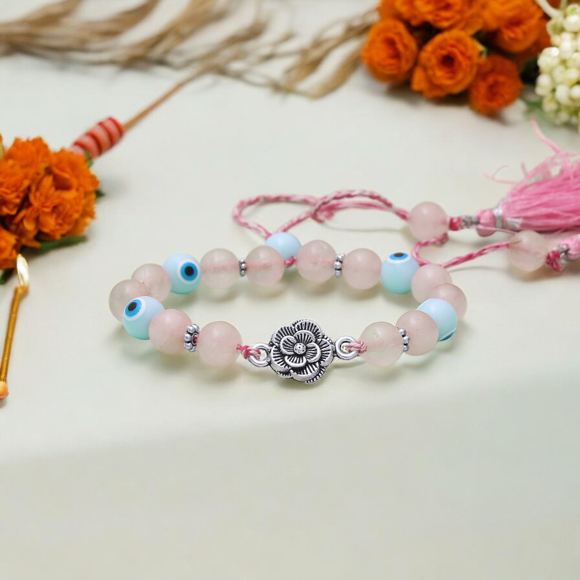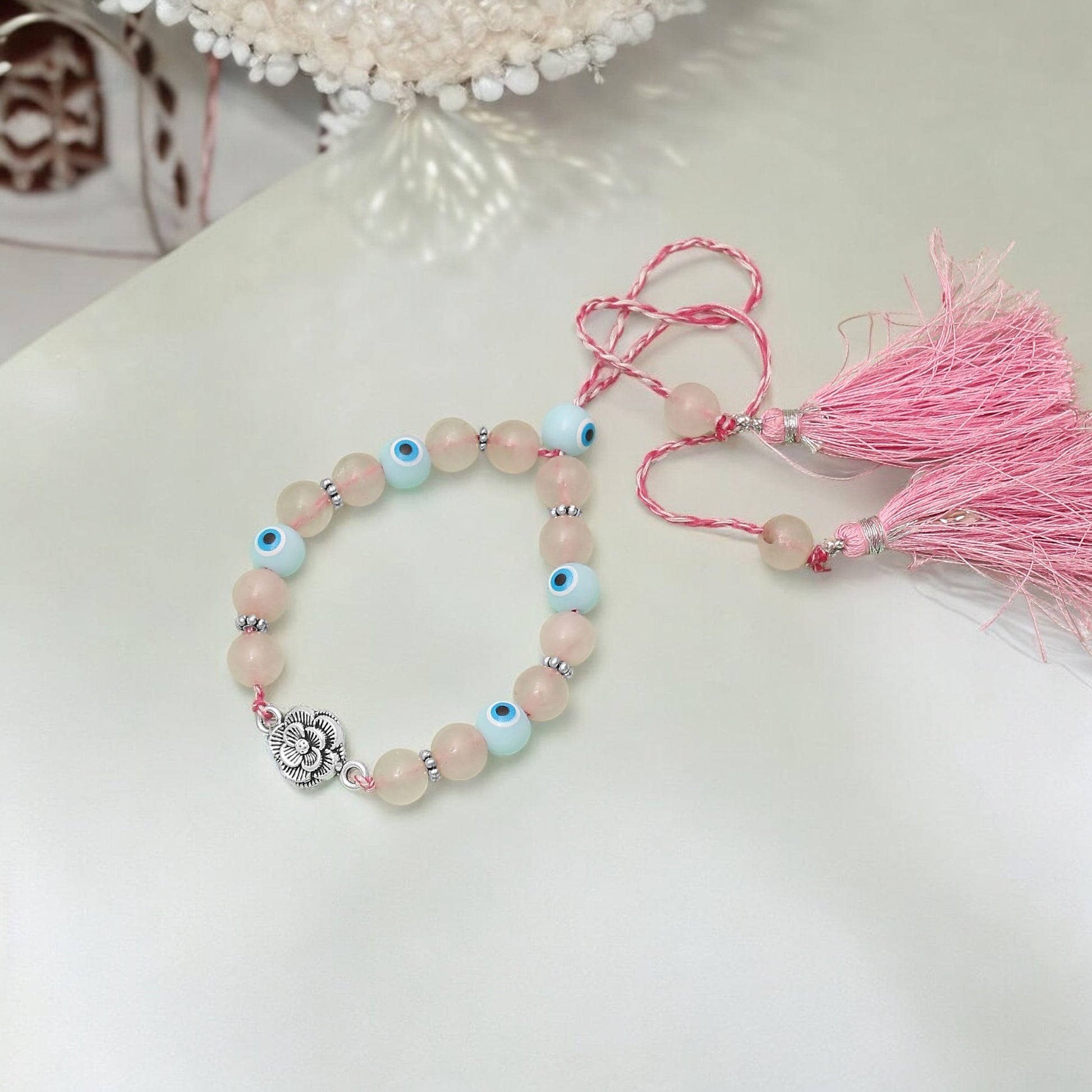 🔷🤍 Benefits of Rose Quartz & Evil Eye Chhuda Rakhi bracelet 🔷🤍