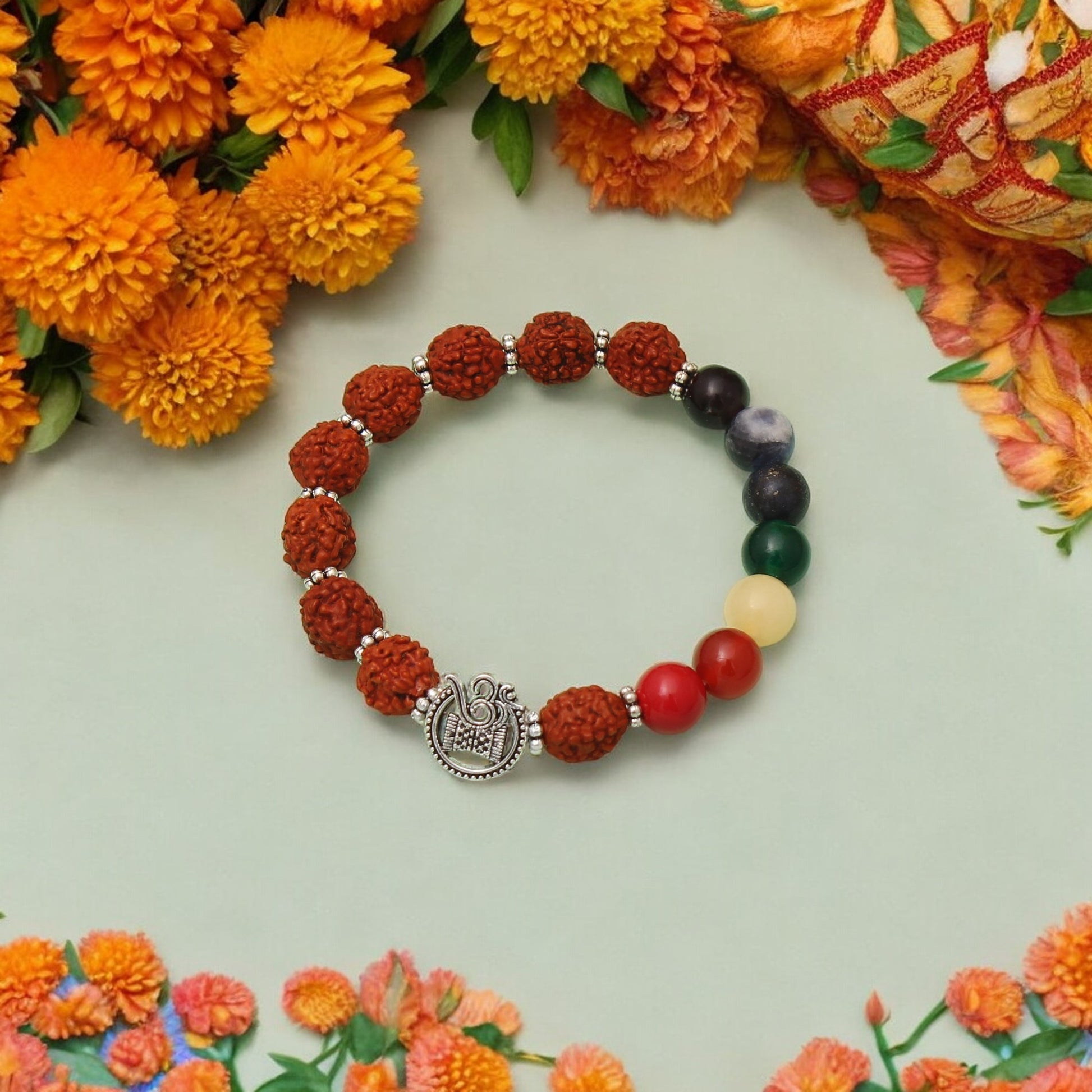 7 chakra & rudraksha Beaded Bracelet/Rakhi With Om Charm