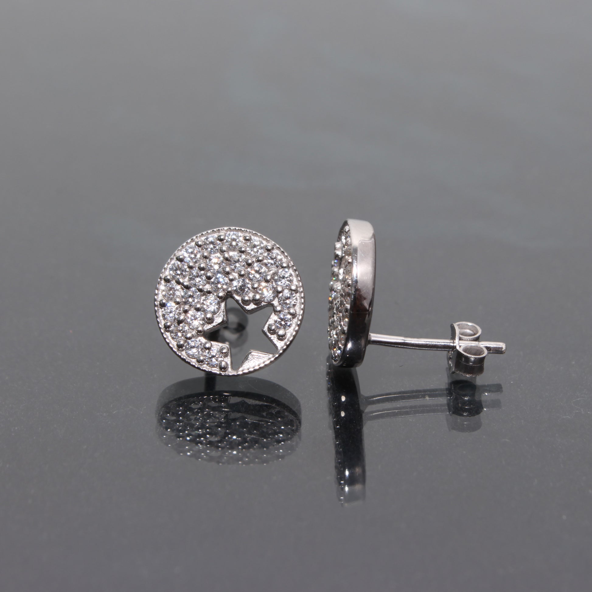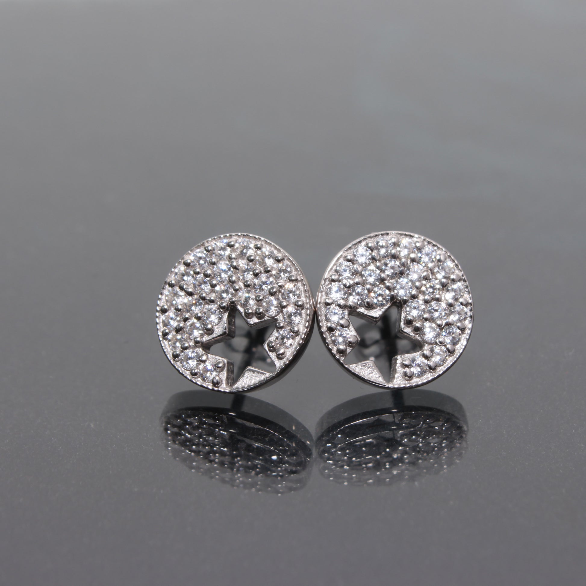 Bring celestial charm to your style with these Shimmering Star Sterling Silver Earrings. Designed with a sleek circular shape, sparkling cubic zirconia stones, and a unique star-shaped cut-out, these earrings exude elegance and sophistication. Crafted from high-quality 925 Sterling Silver, they are lightweight, hypoallergenic, and perfect for everyday wear or special occasions.