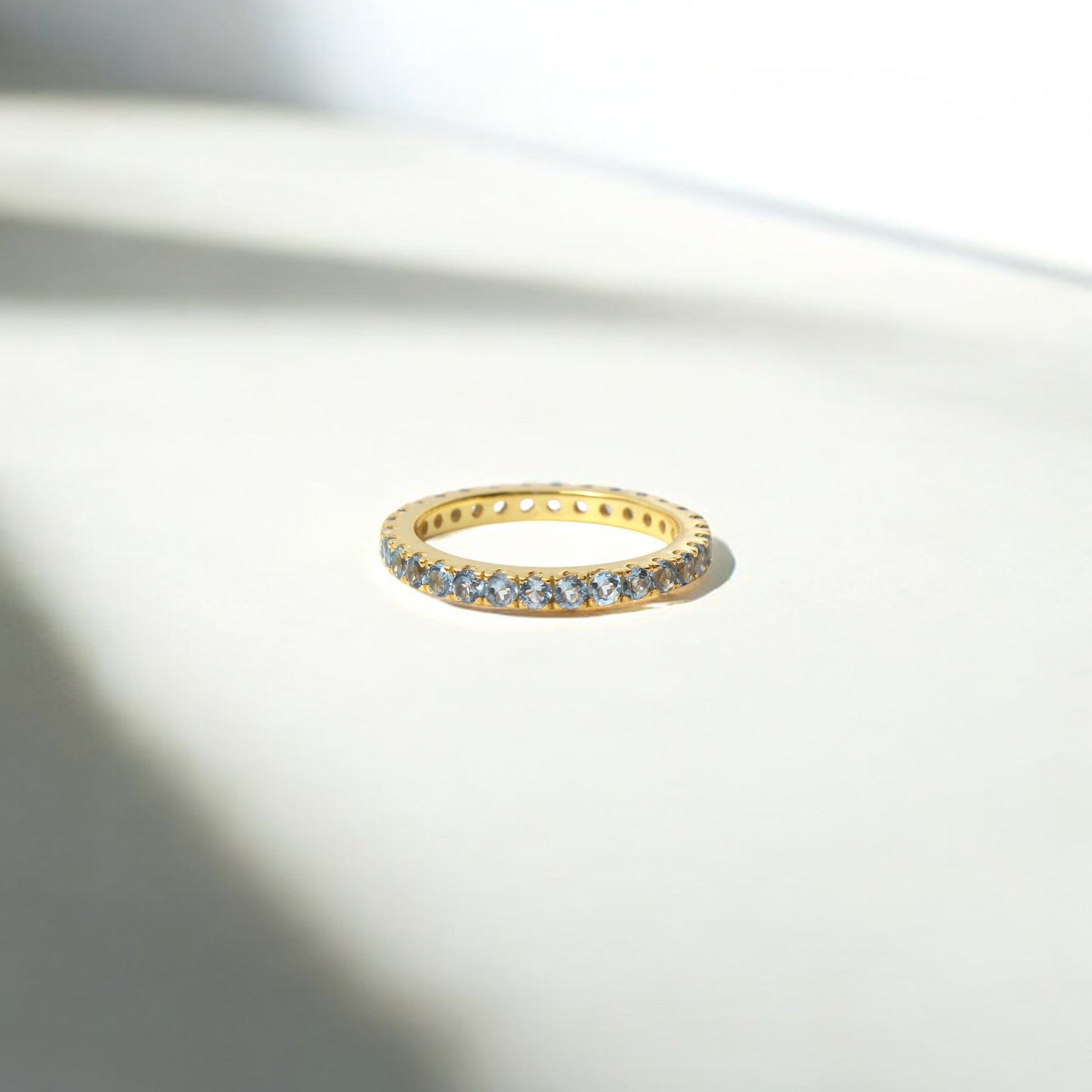 Elegant Sky Beauty Natural Gemstone Eternity Ring – Sterling Silver