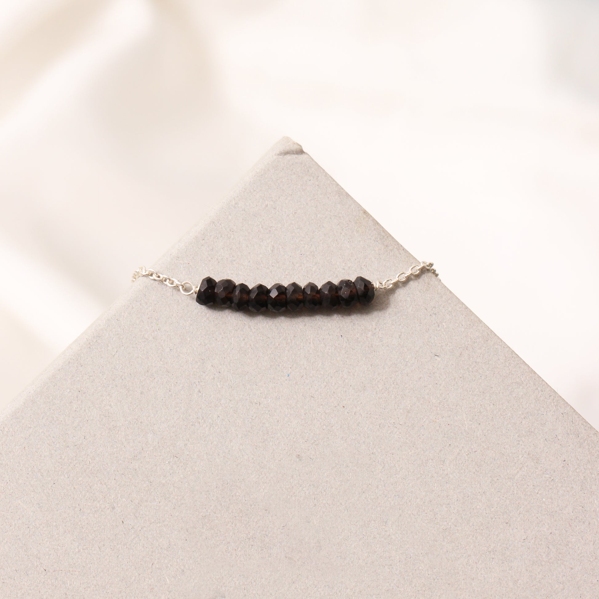 Elegant Smoky Quartz Beaded Silver Chain Bracelet – Grounding Energy & Clarity
