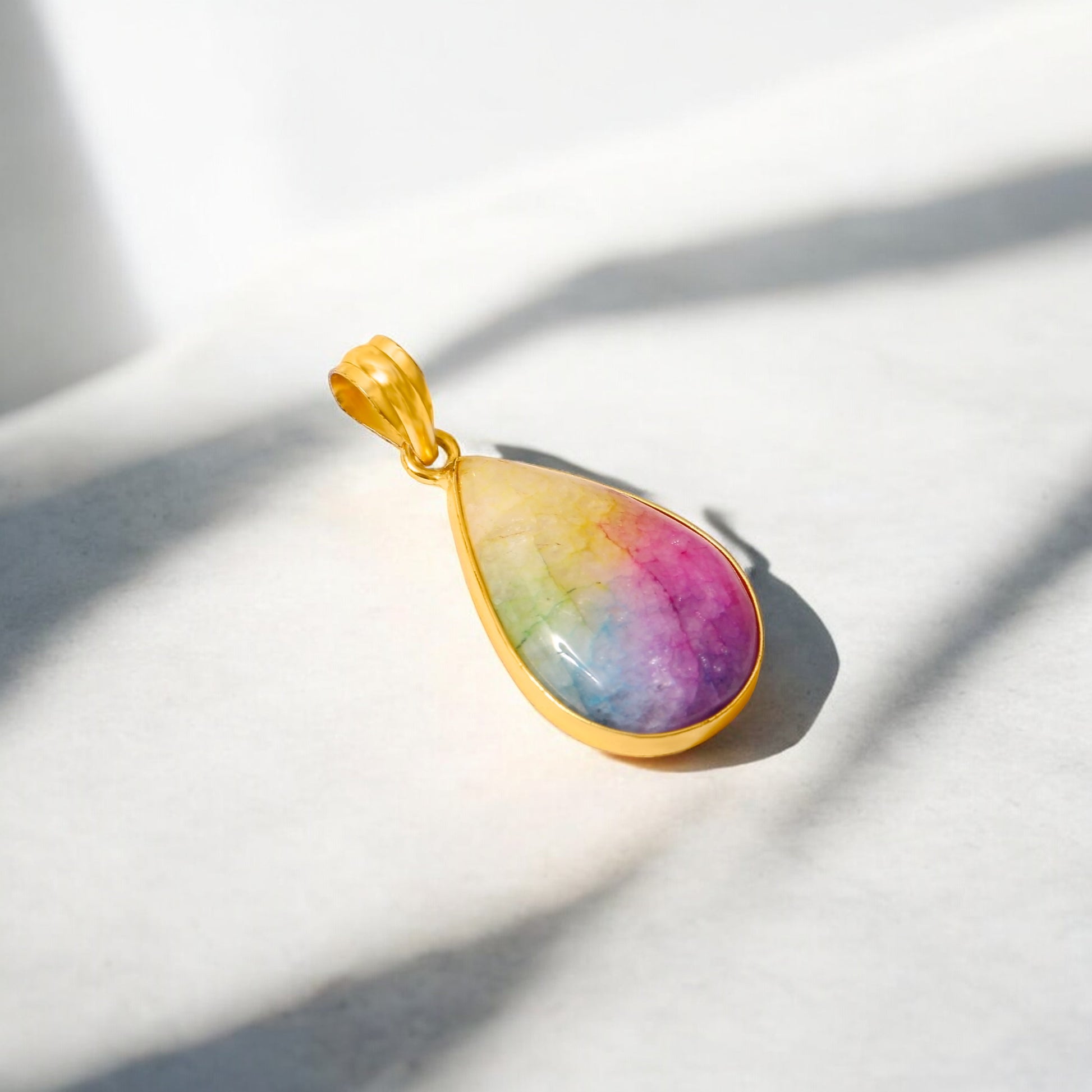 925 Sterling Silver Solar Quartz Gemstone Pendant Necklace - Vibrant Multi-Color Jewelry