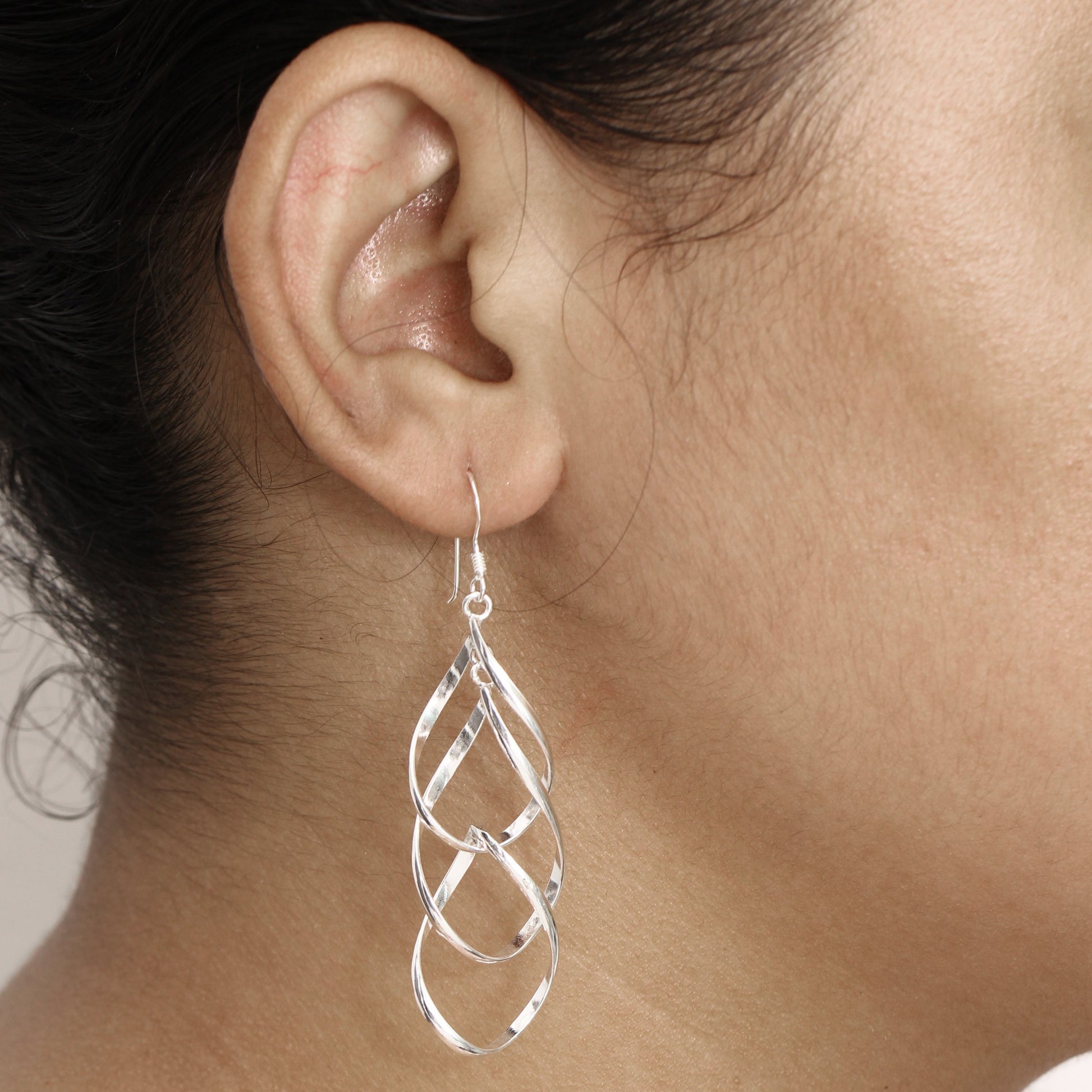 ITEM : Pretty Twisted 925 Sterling Silver Dangle Earring. Long Dangle Hammered Earrings for Her.