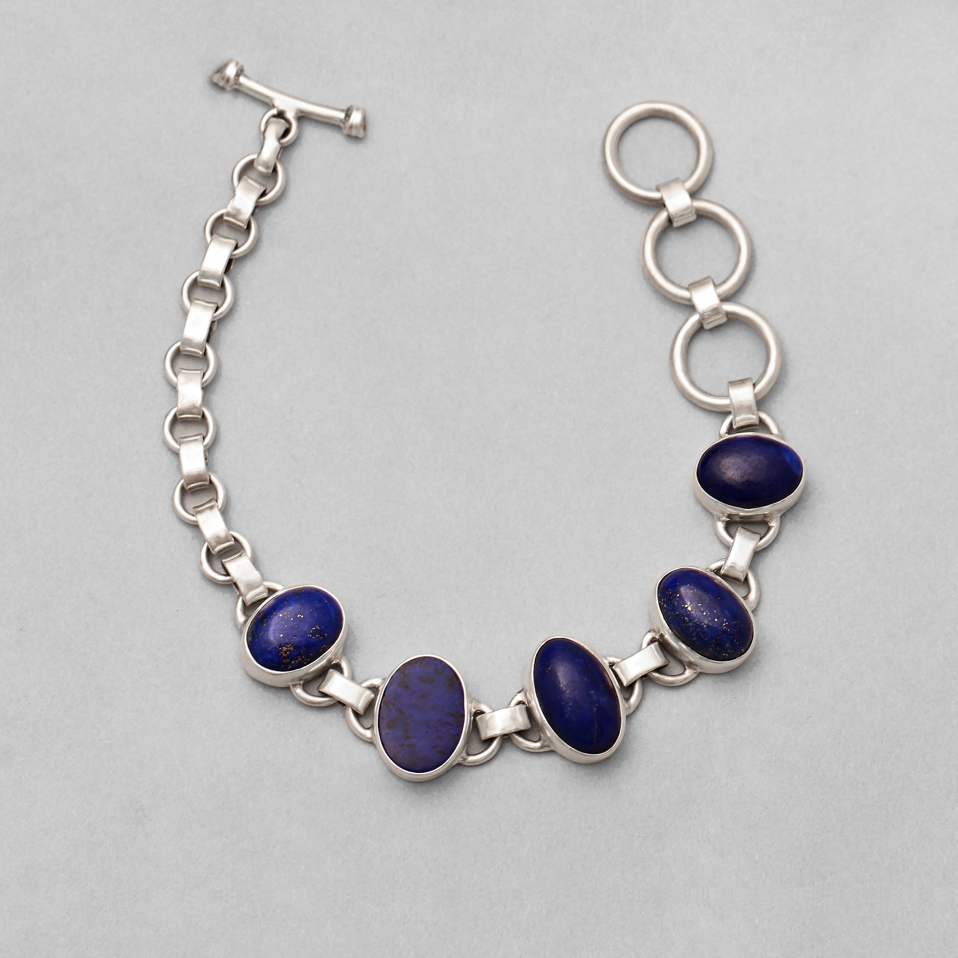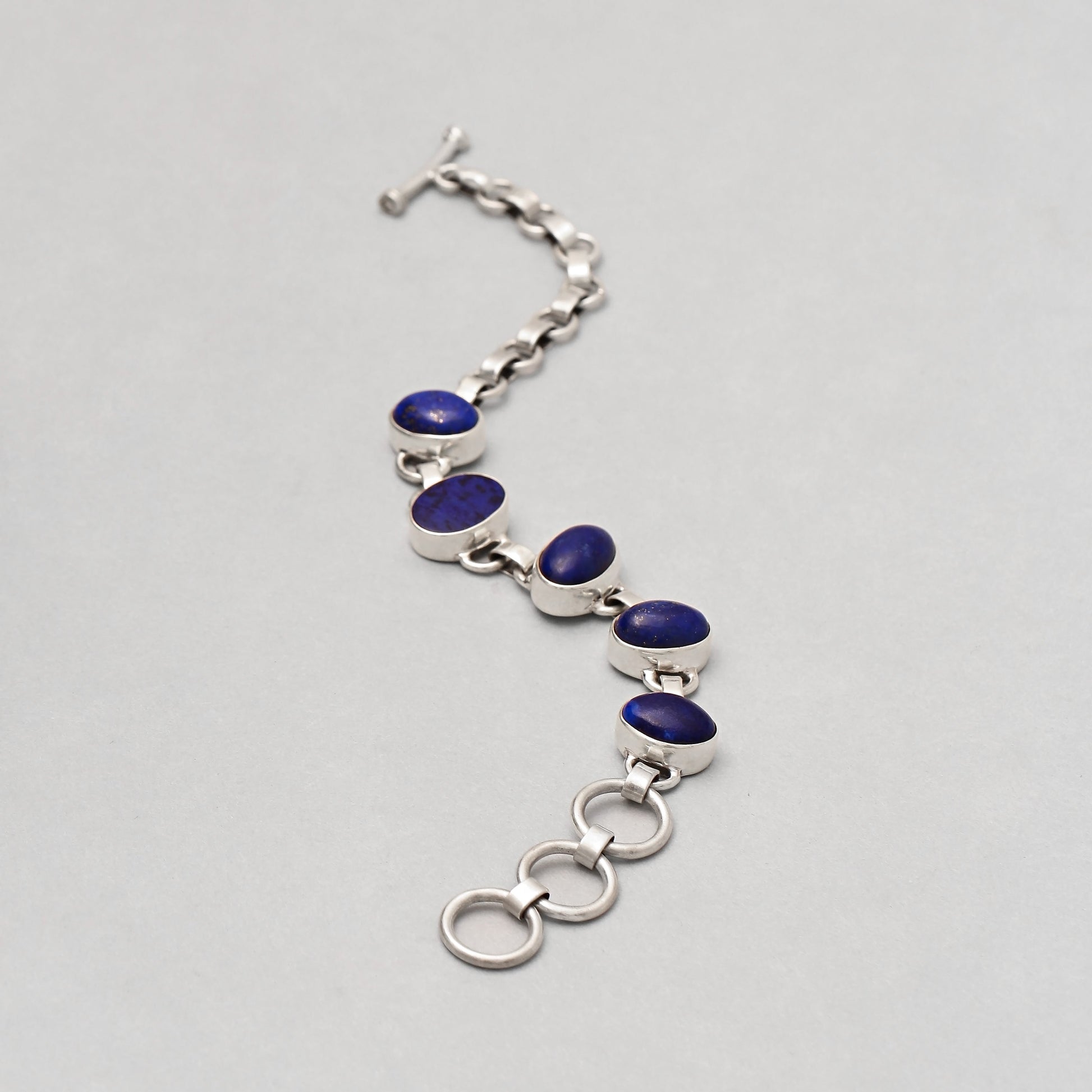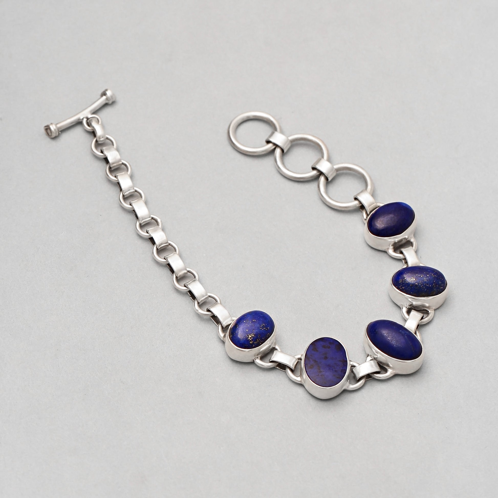 ITEM : Gemsrush 925 Sterling Silver Bracelet with 5 Oval Smooth 9x12mm Blue Lapis Gemstones. This Bracelet has a feature of link chain.