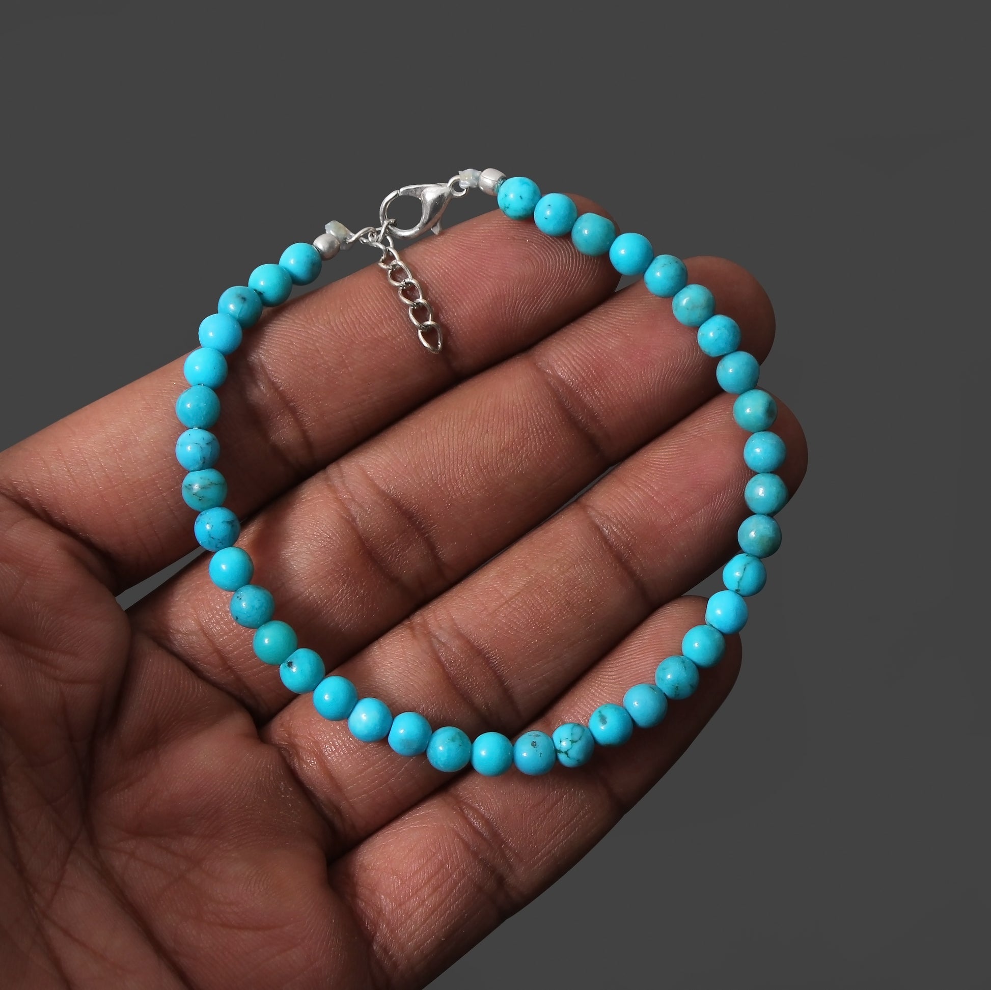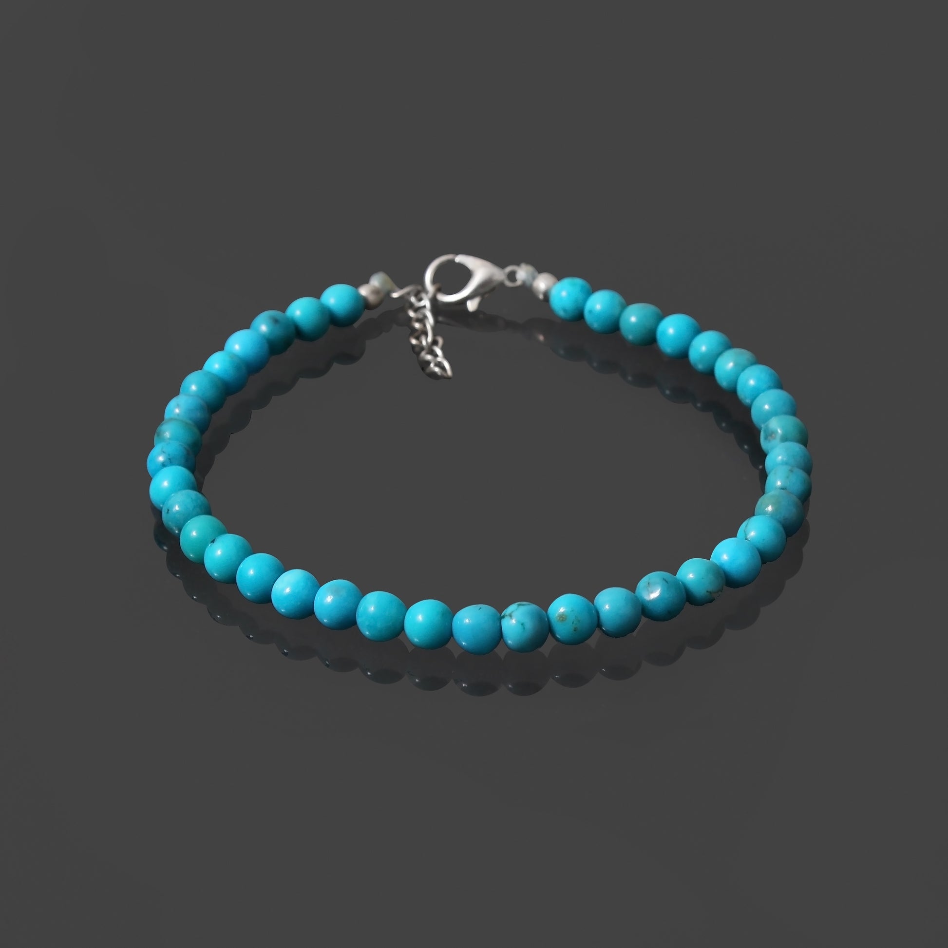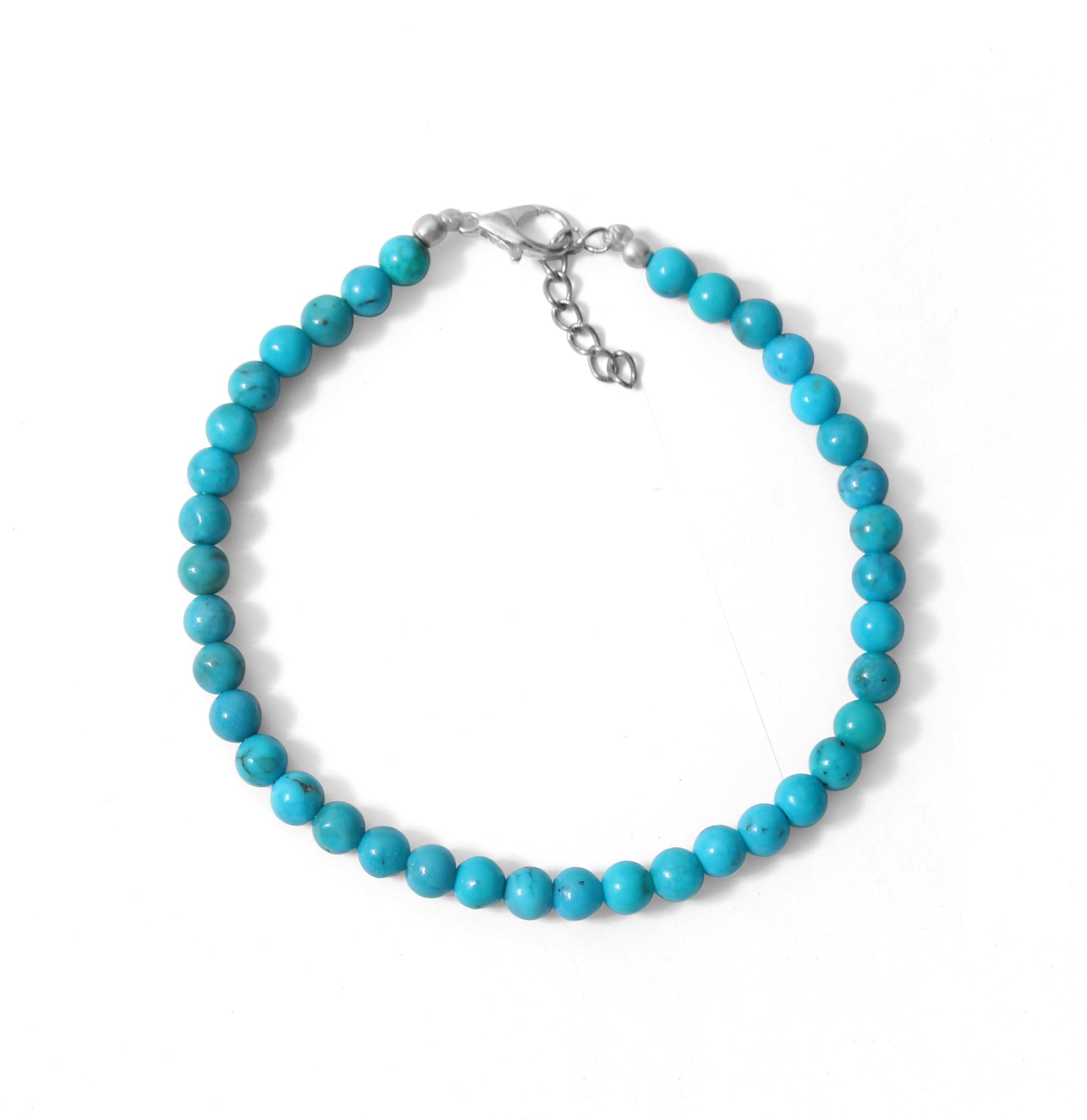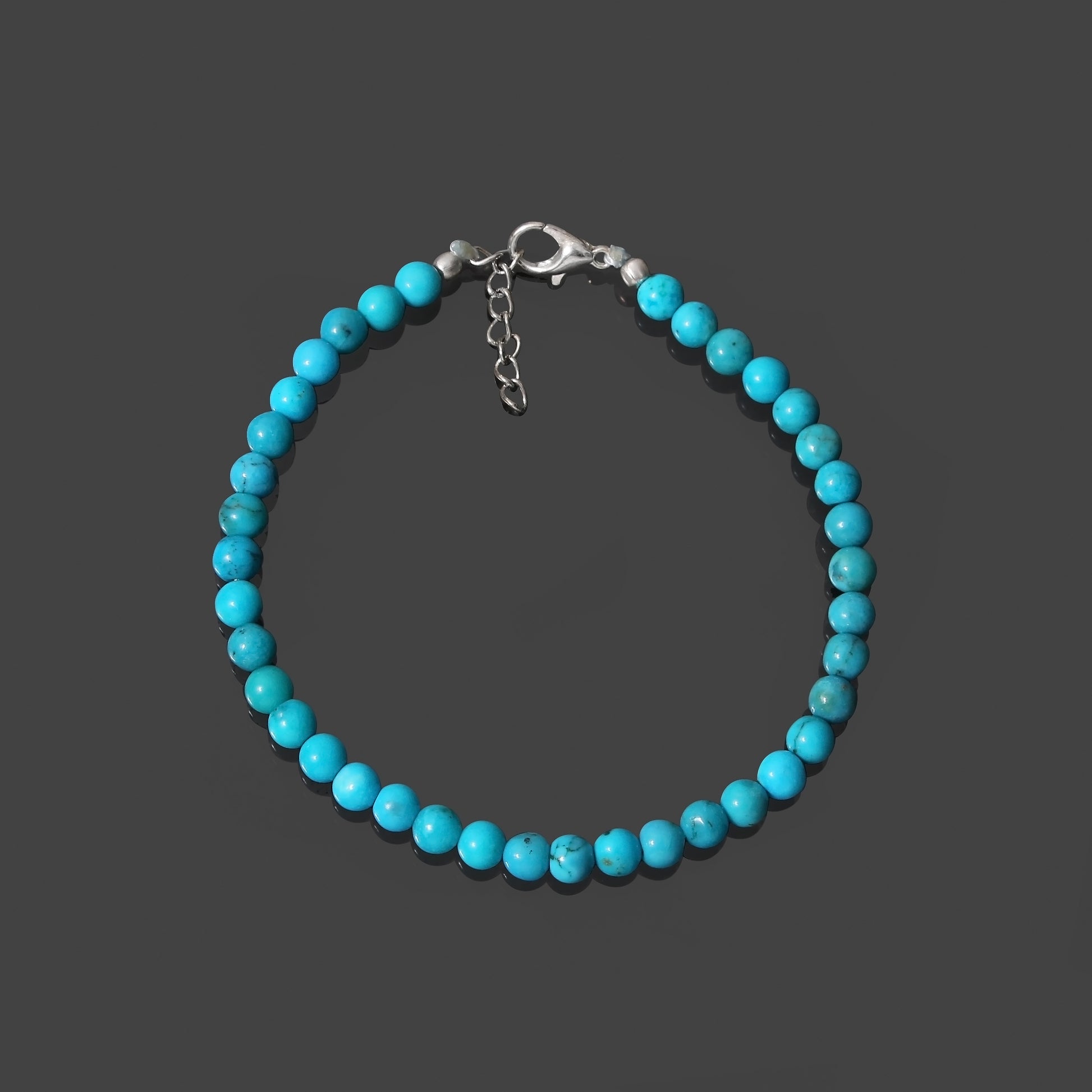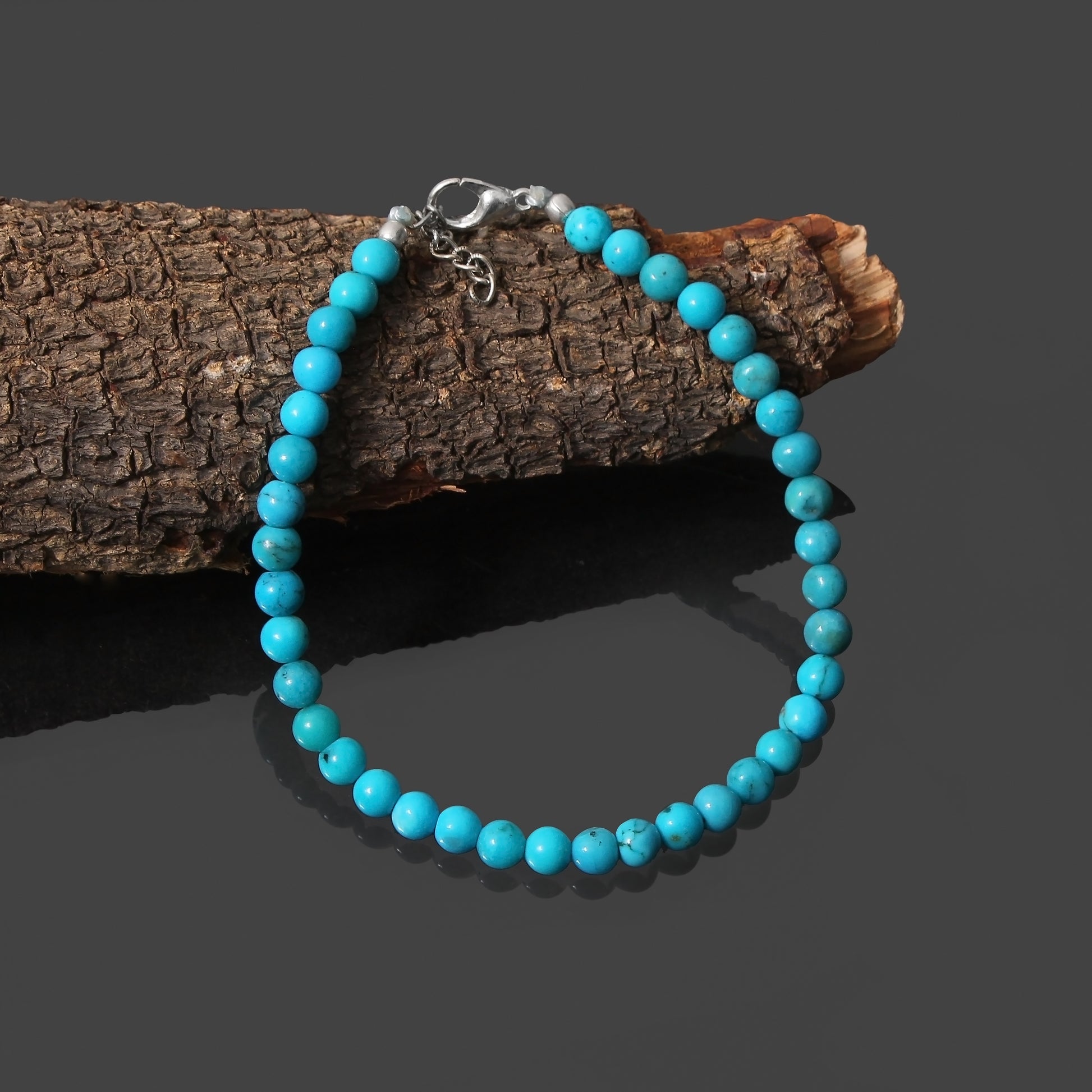 Turquoise is renowned for its calming and protective properties, believed to promote tranquility and inner peace. It is said to enhance communication and bring balance to the mind and body. Adorn your wrist with this exquisite smooth round bracelet to experience the soothing serenity of turquoise.