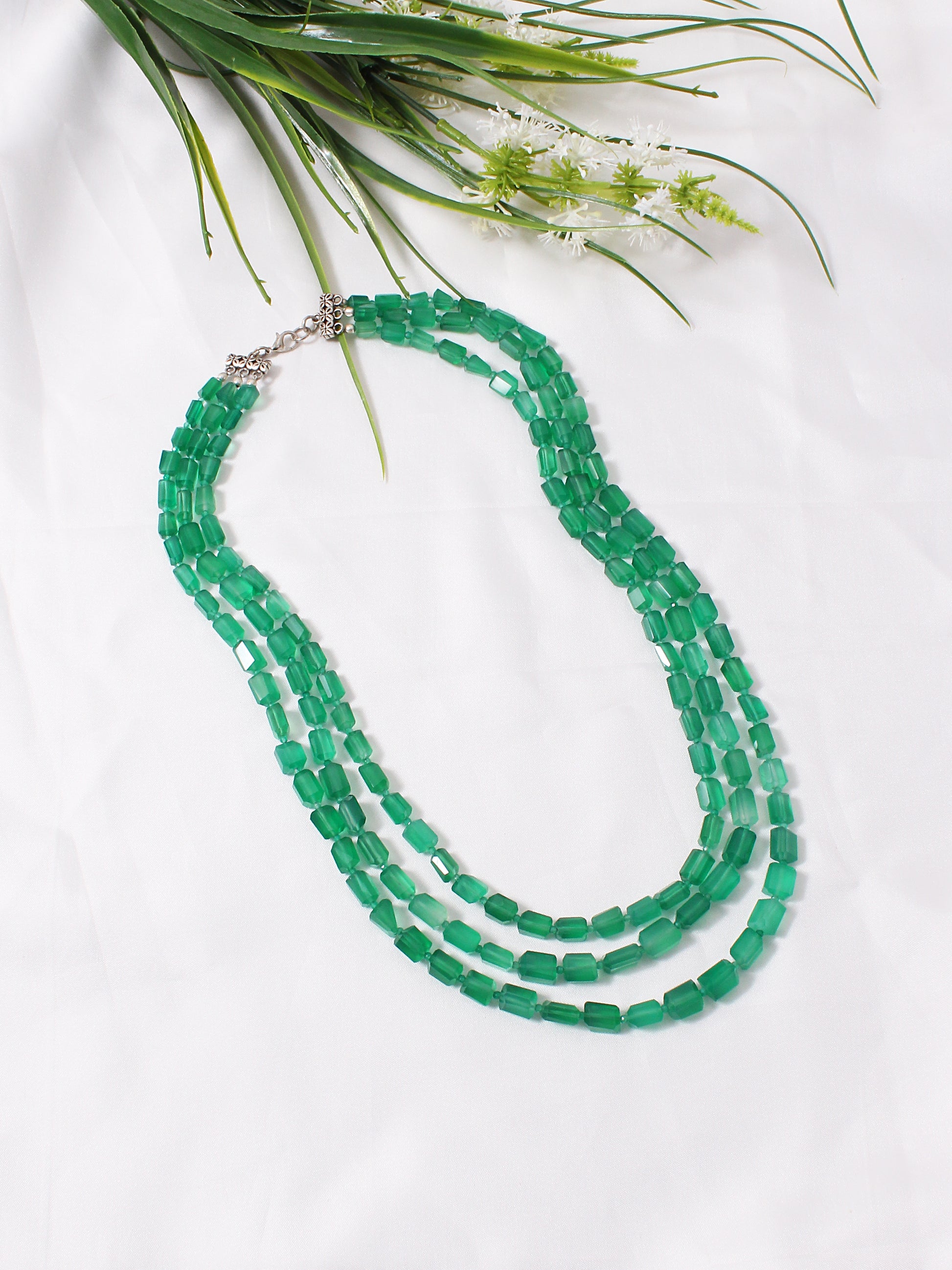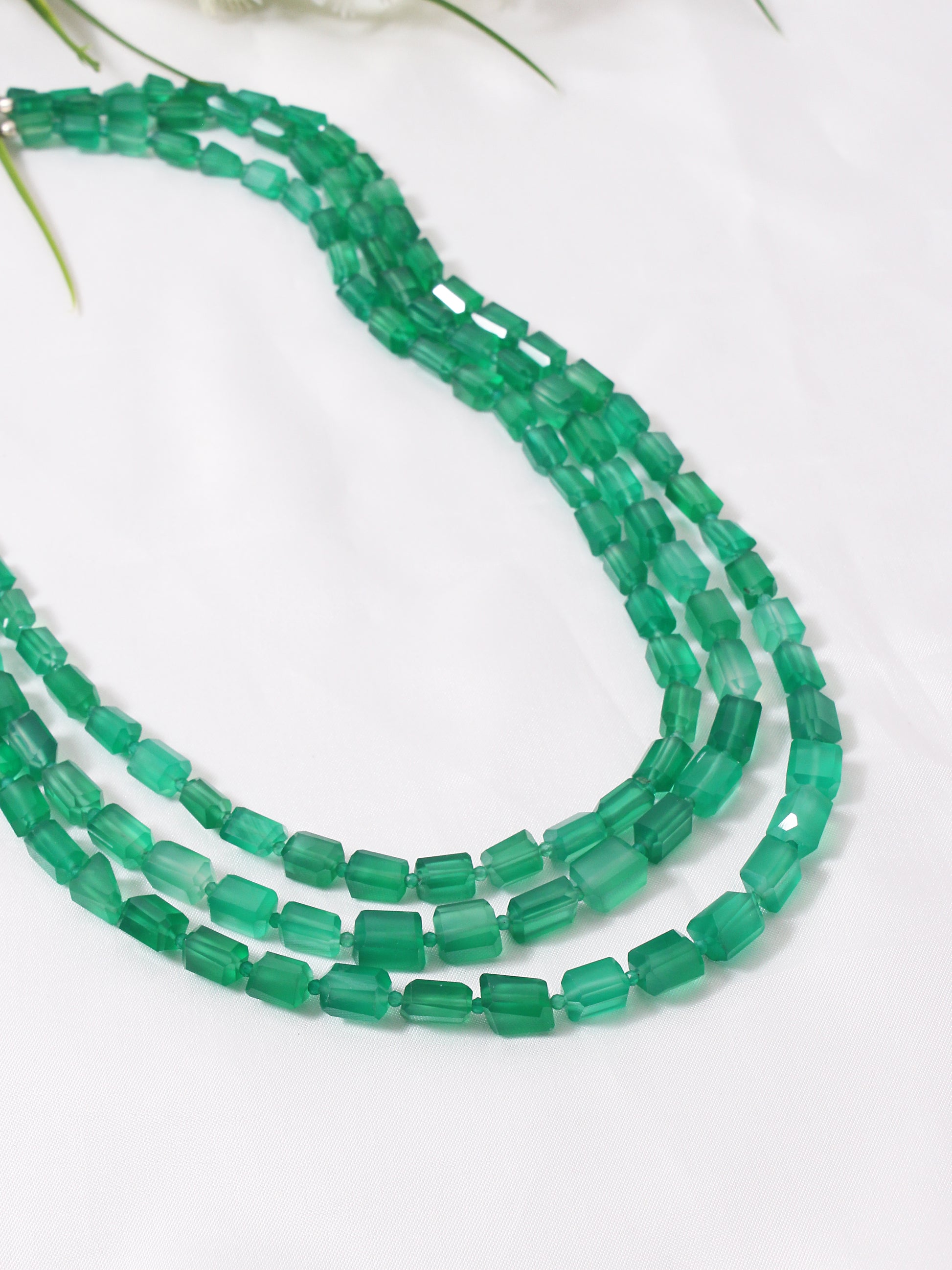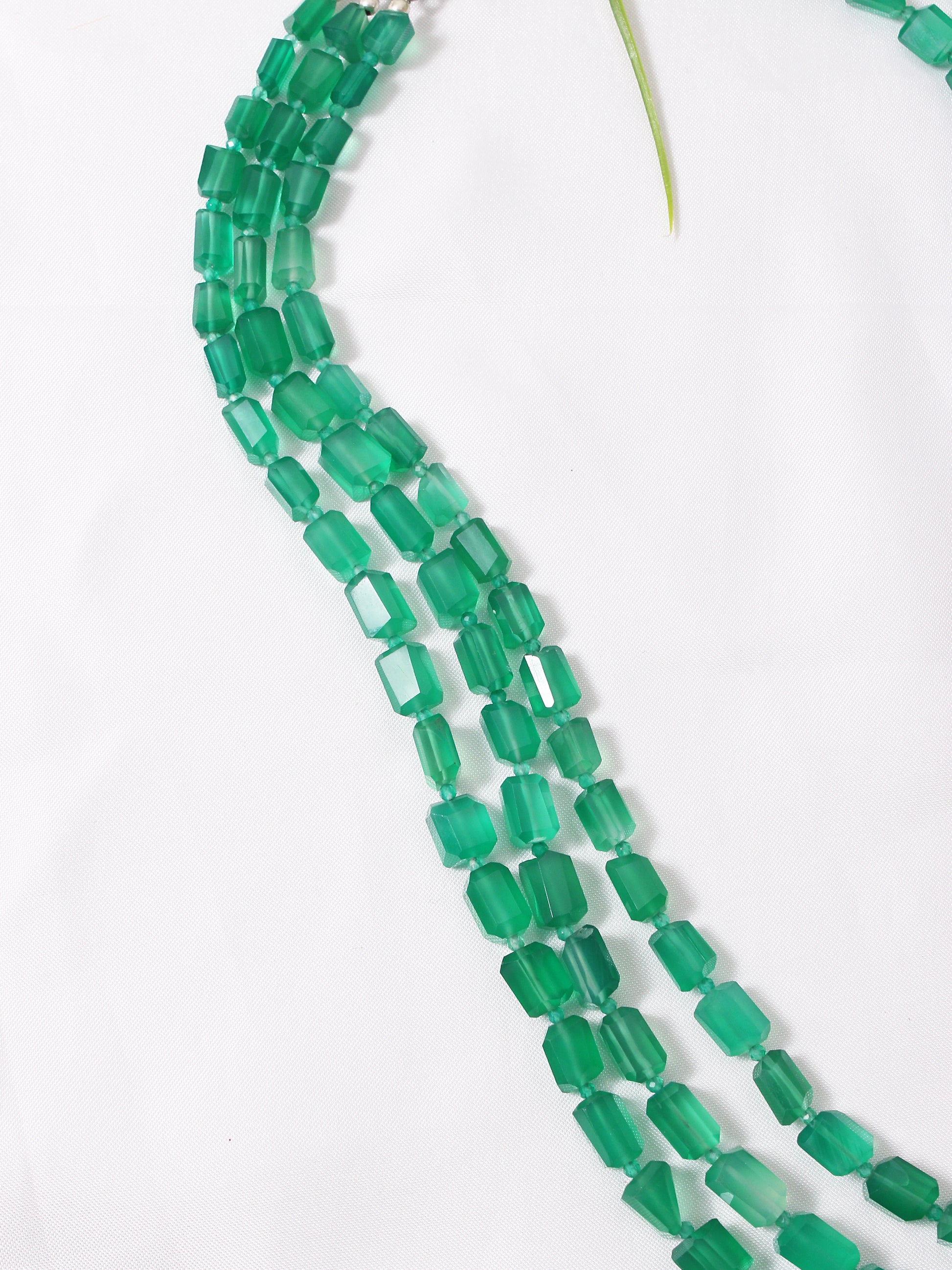 "Verdant Elegance: Green Onyx Triple Layer Necklace"